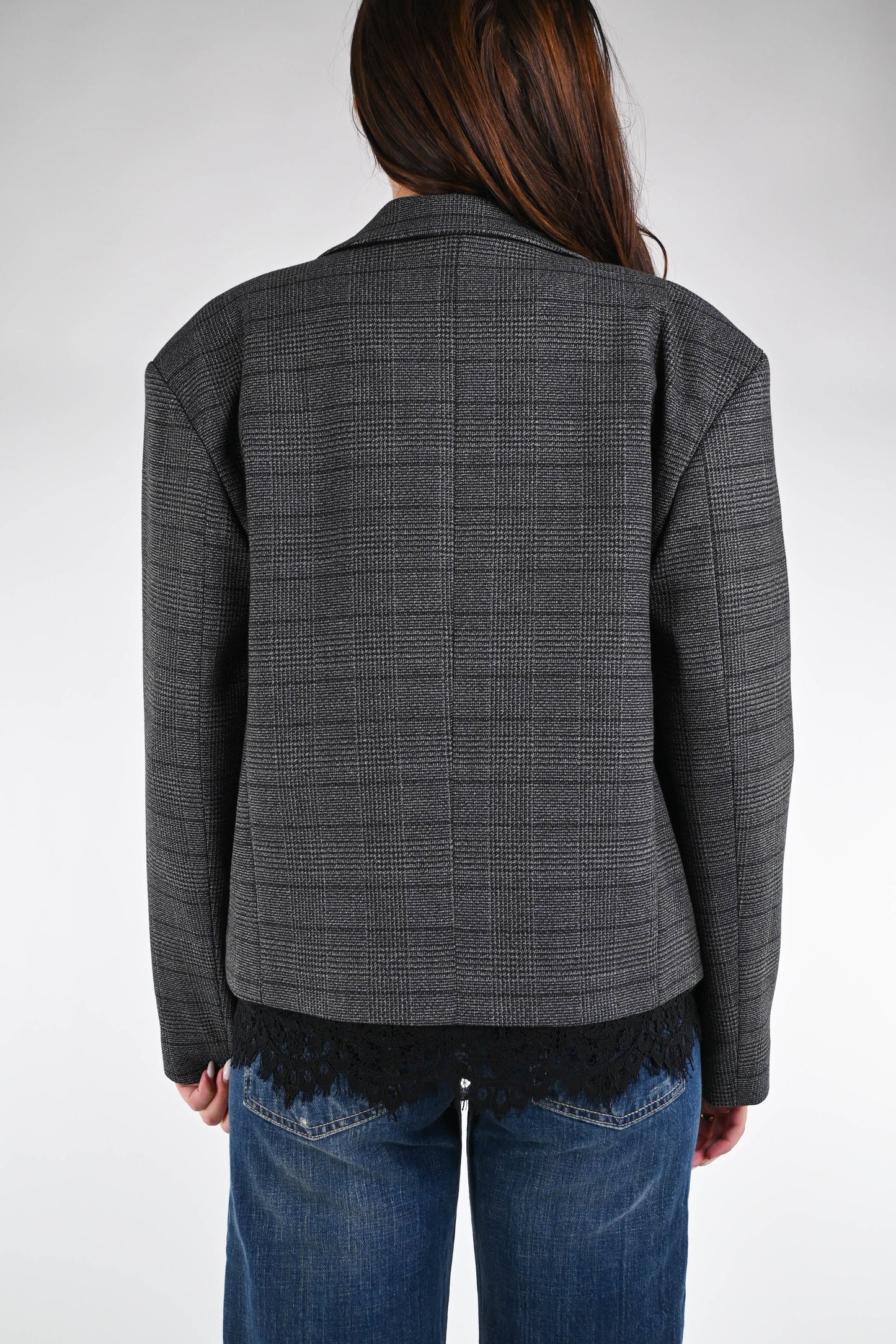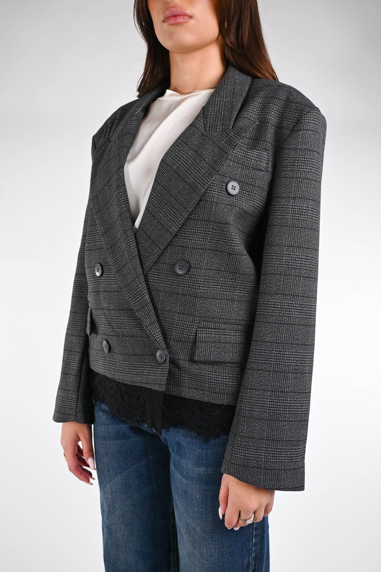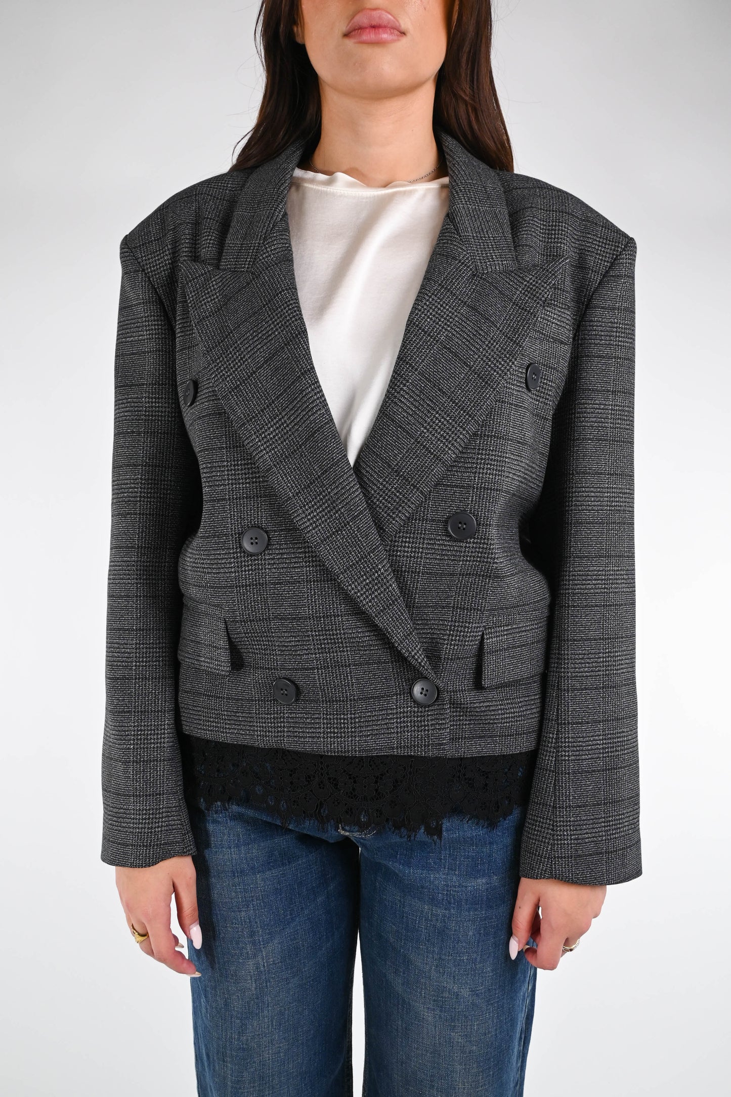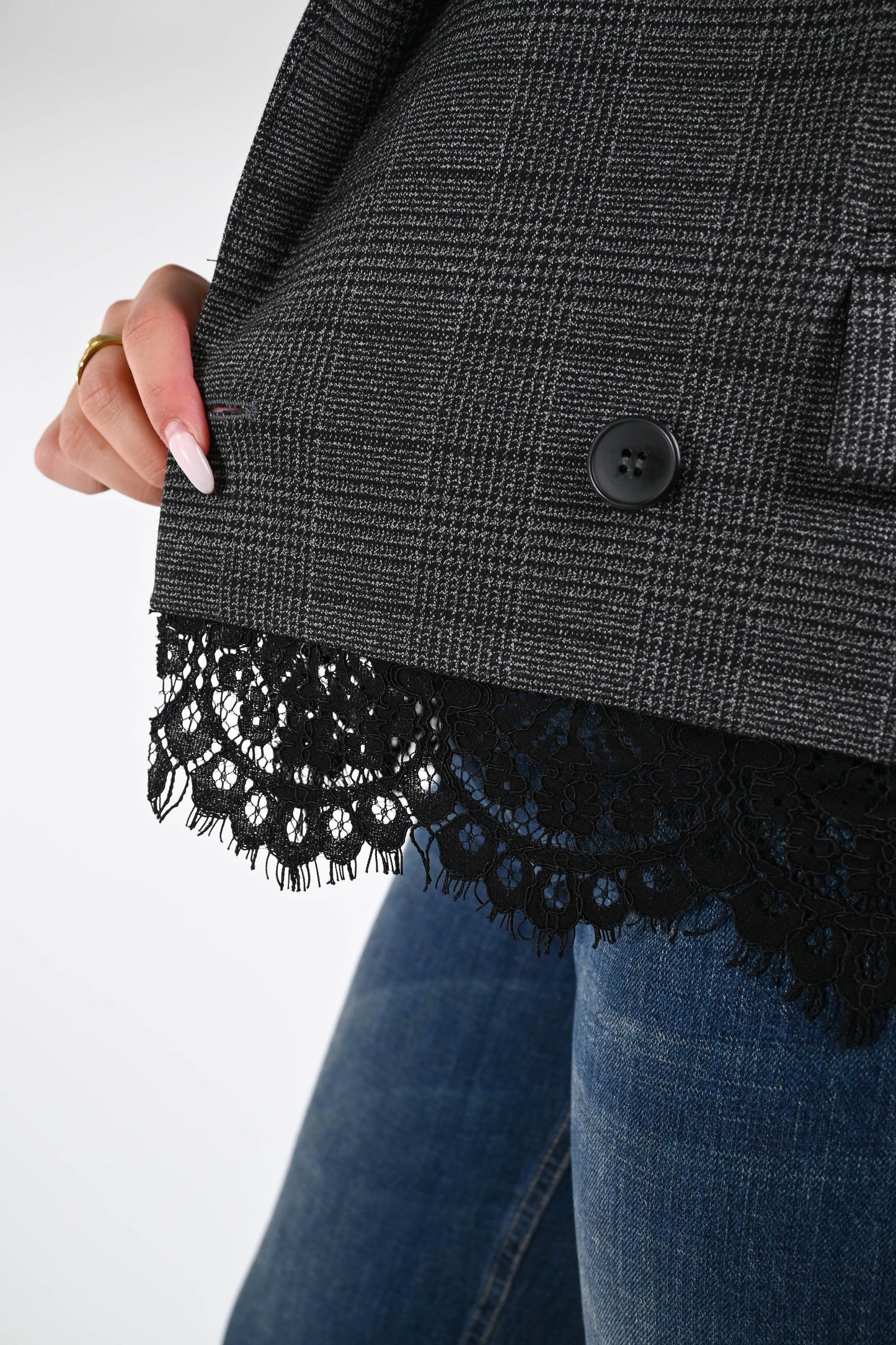 TENSIONE IN - GIACCA DOPPIOPETTO CHECK CON PIZZO ART.37714 - NERO