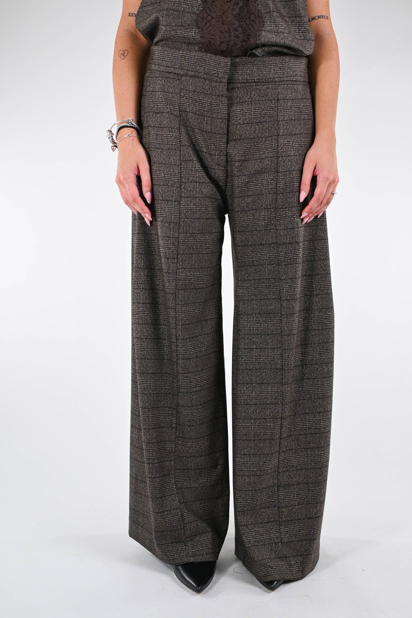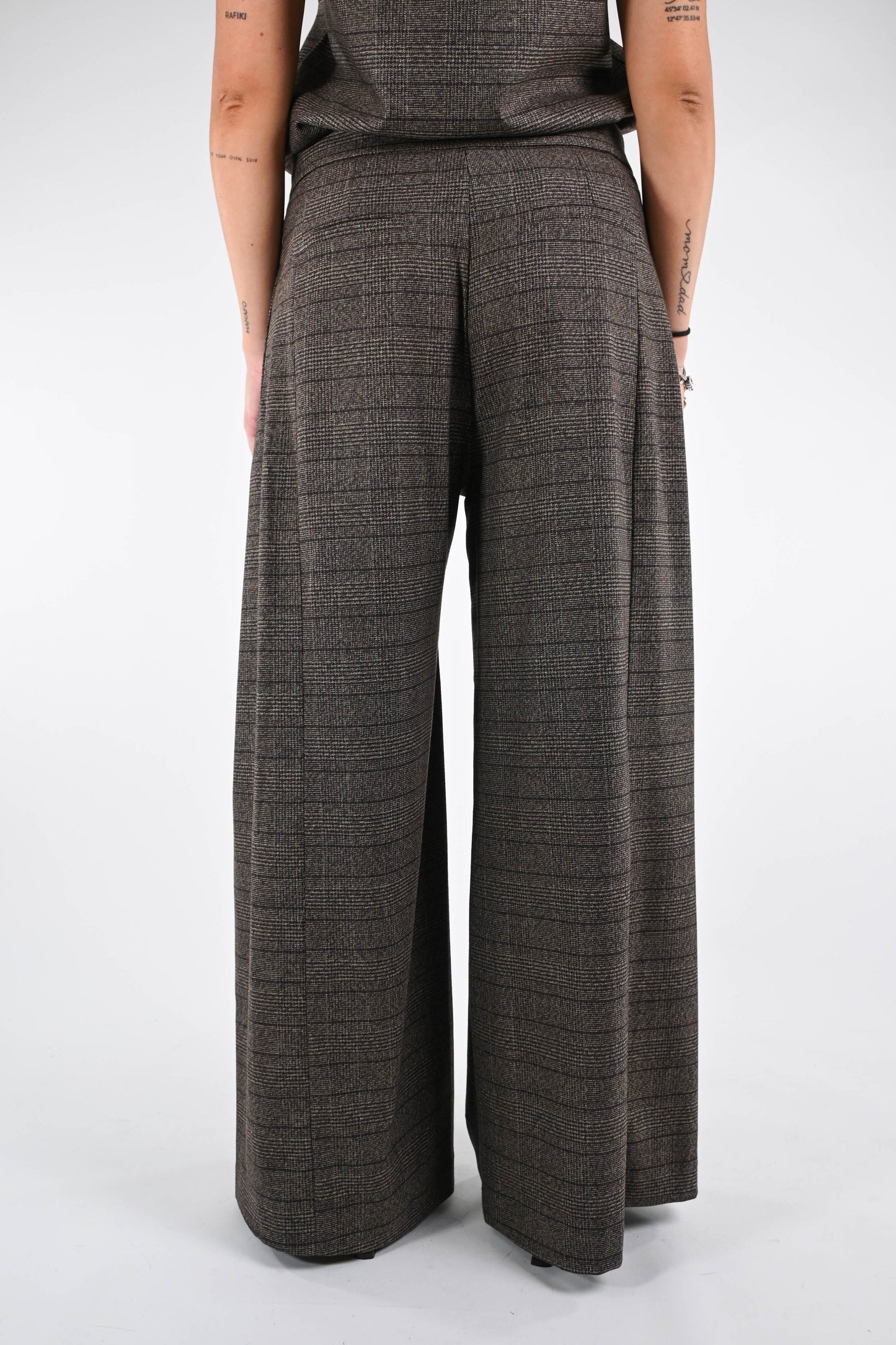 TENSIONE IN - PANTALONE CHECK A PALAZZO ART.37710 - MORO