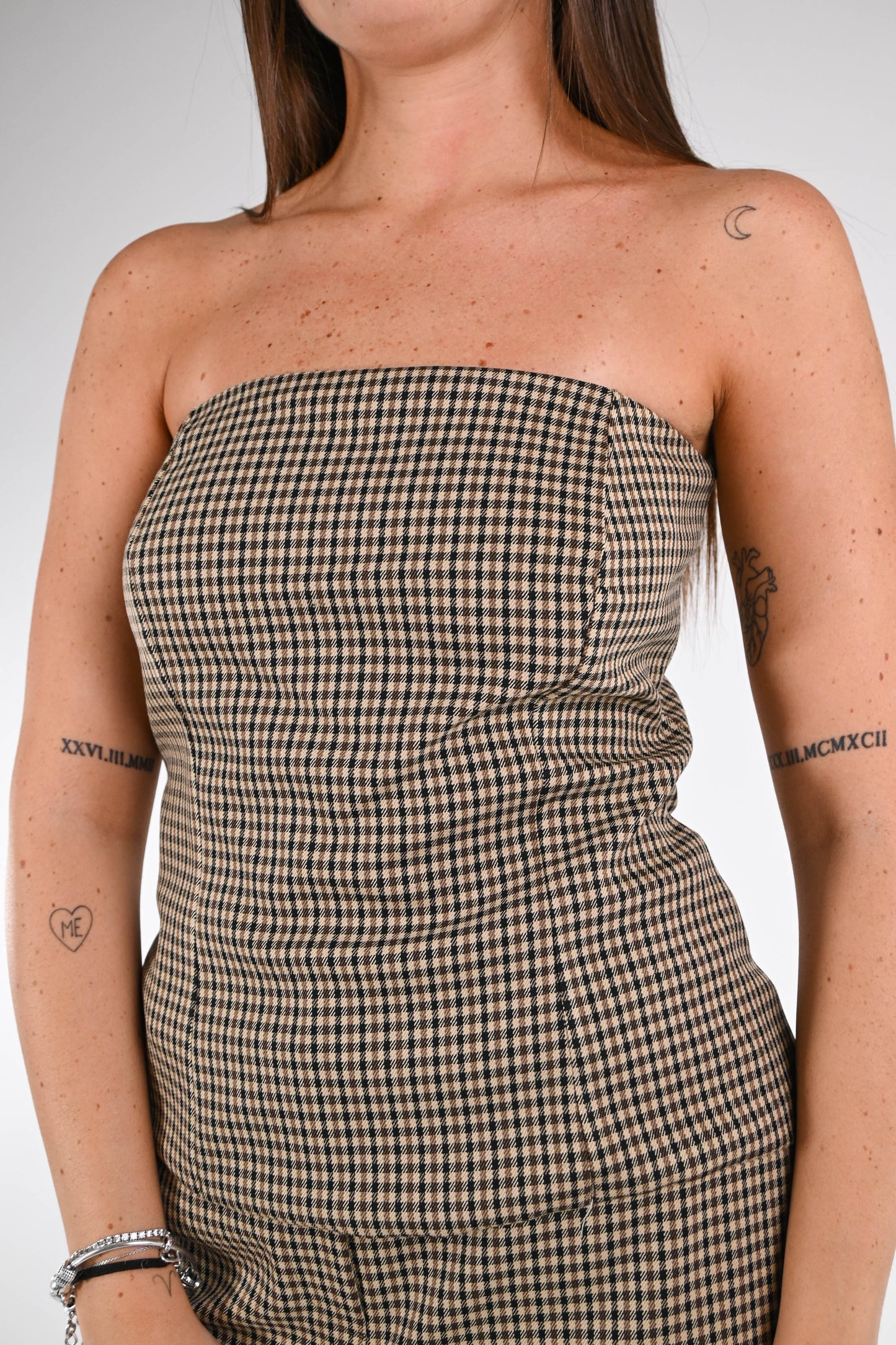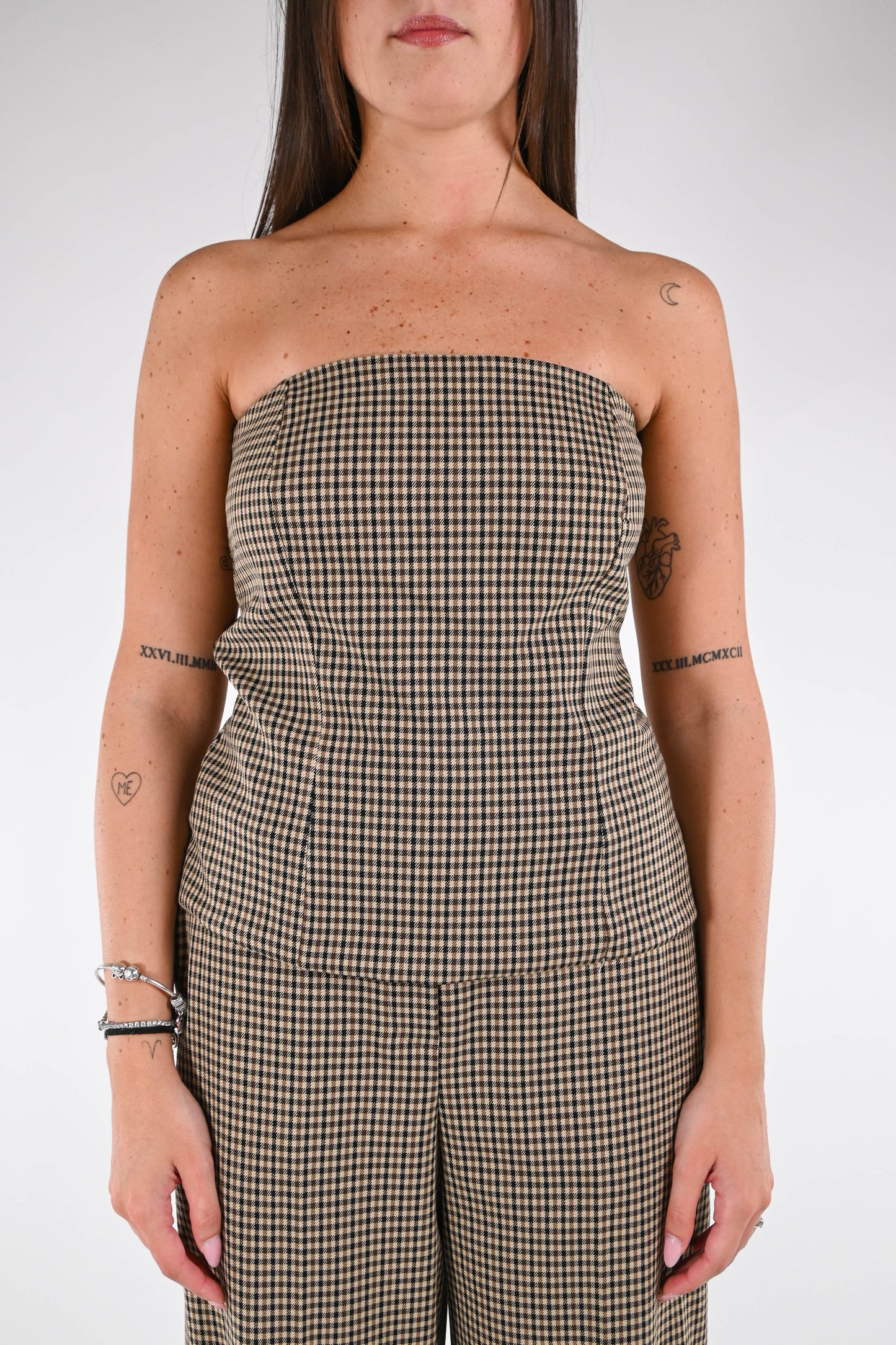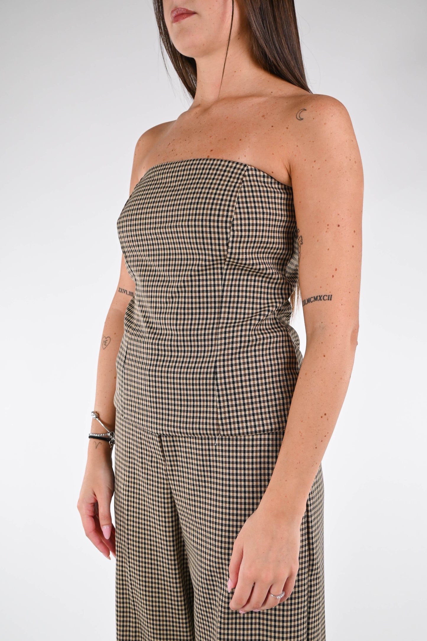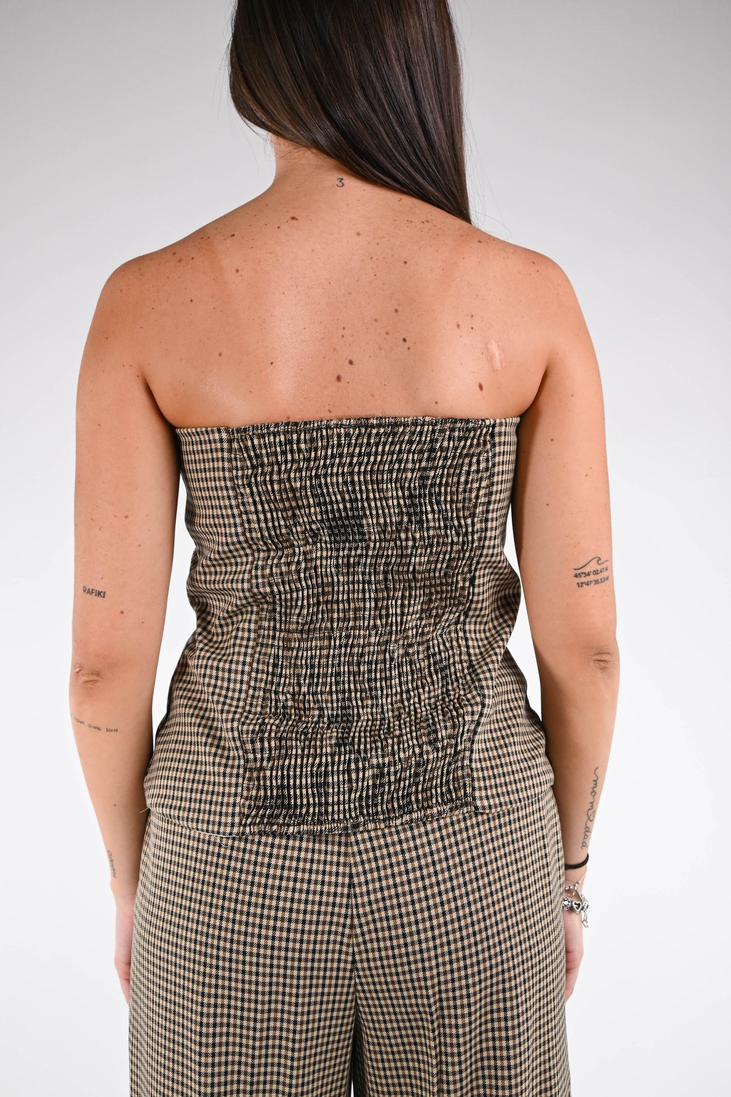 Top fascia quadretti, con elastico arricciato sulla schiena, colore cammello