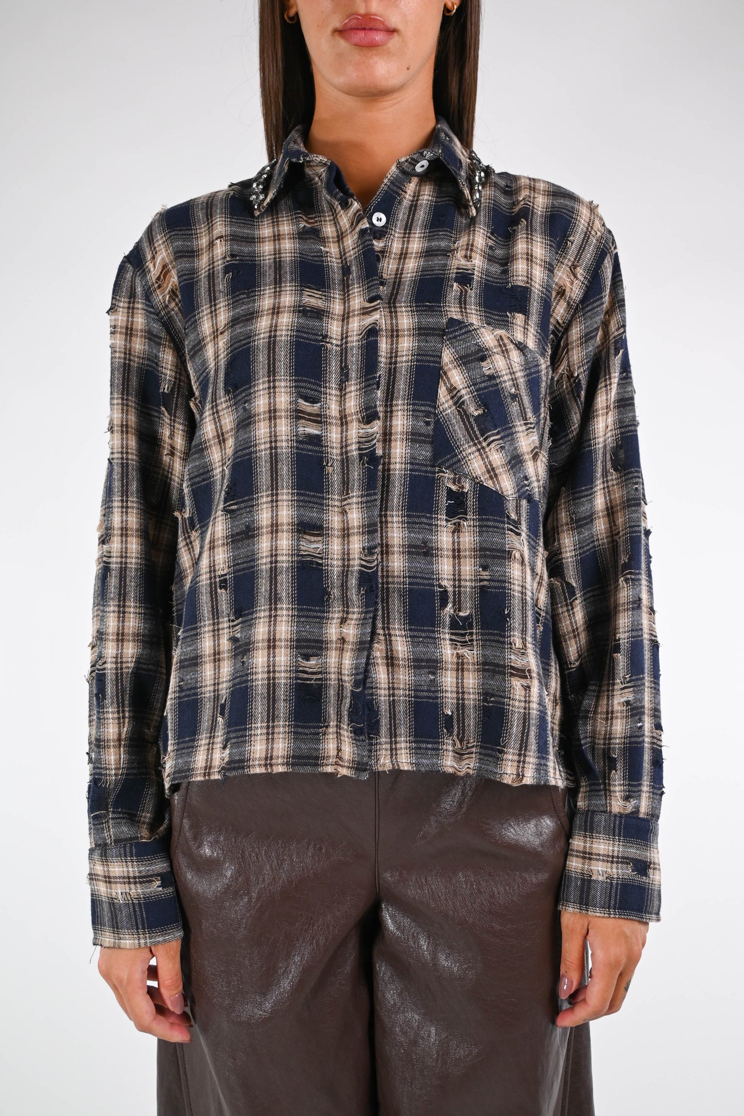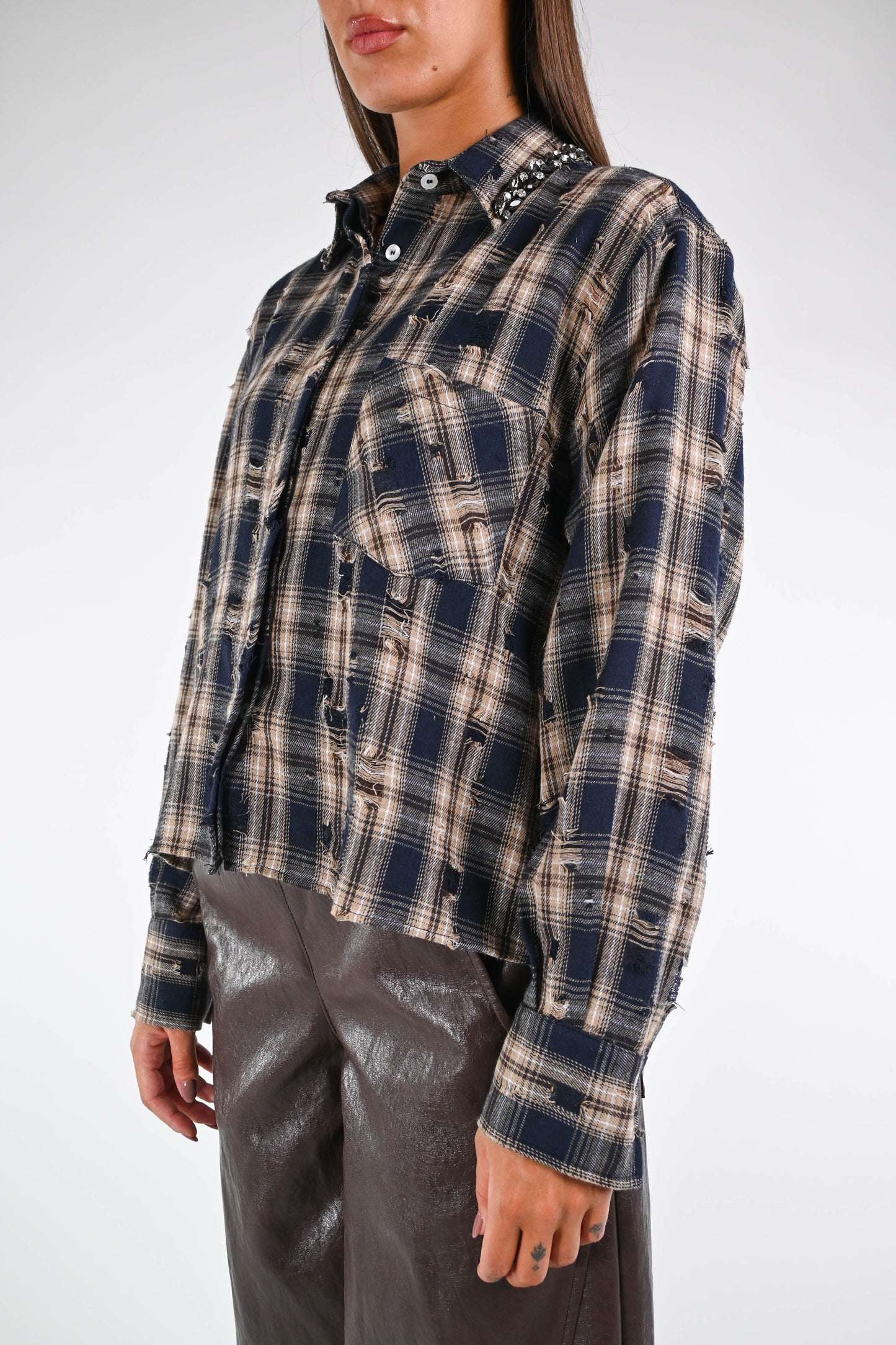 VICOLO - CAMICIA SCOZZESE CON STRASS E ROTTURE ART.RF0079 - BLU/BEIGE
