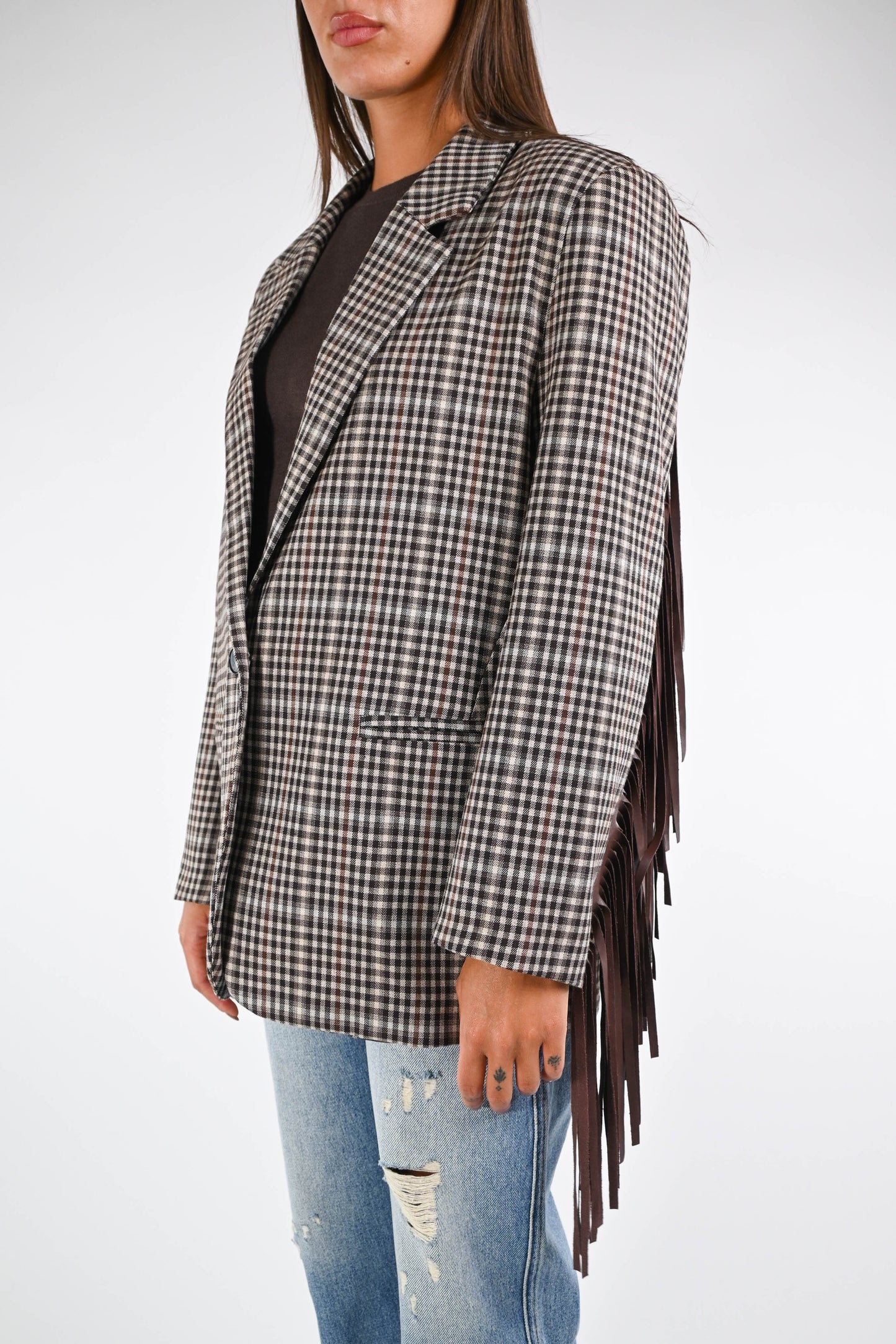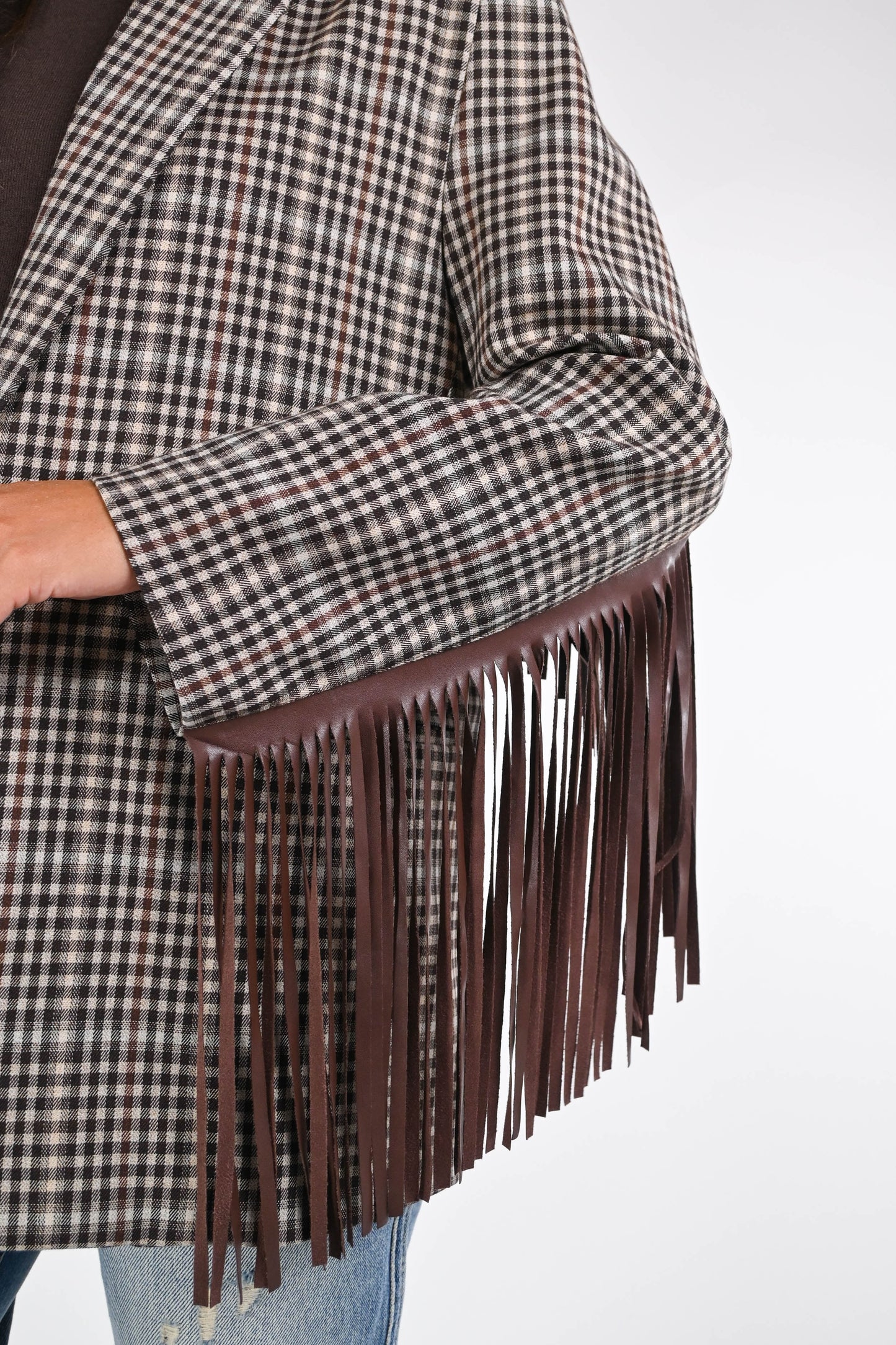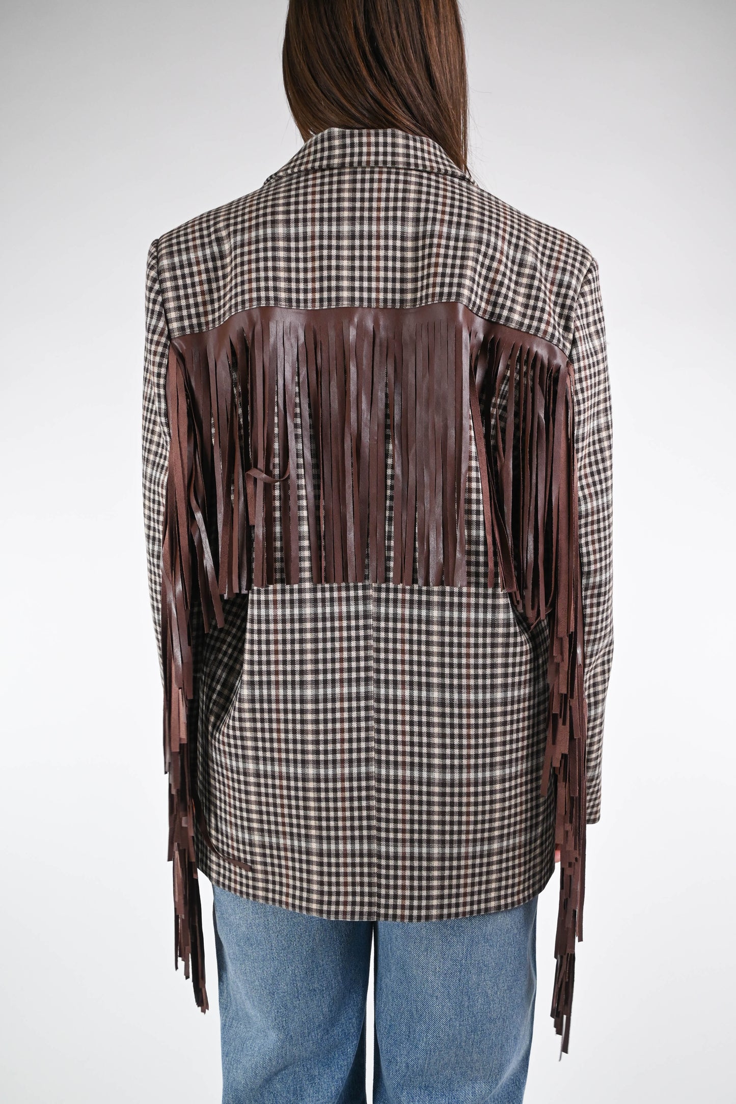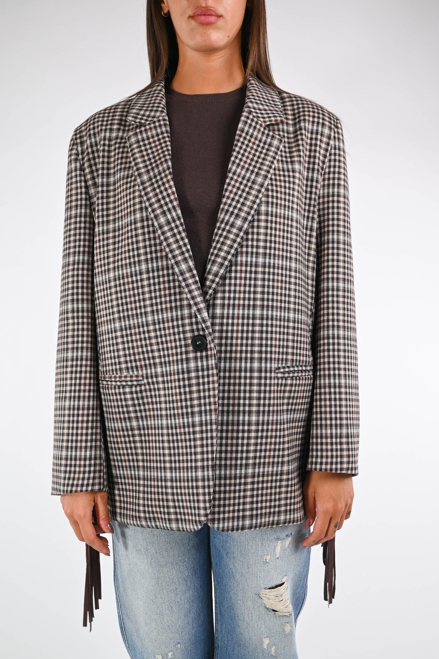 VICOLO - GIACCA OVER A QUADRETTI CON FRANGE ART.TF1125 - BEIGE/MORO