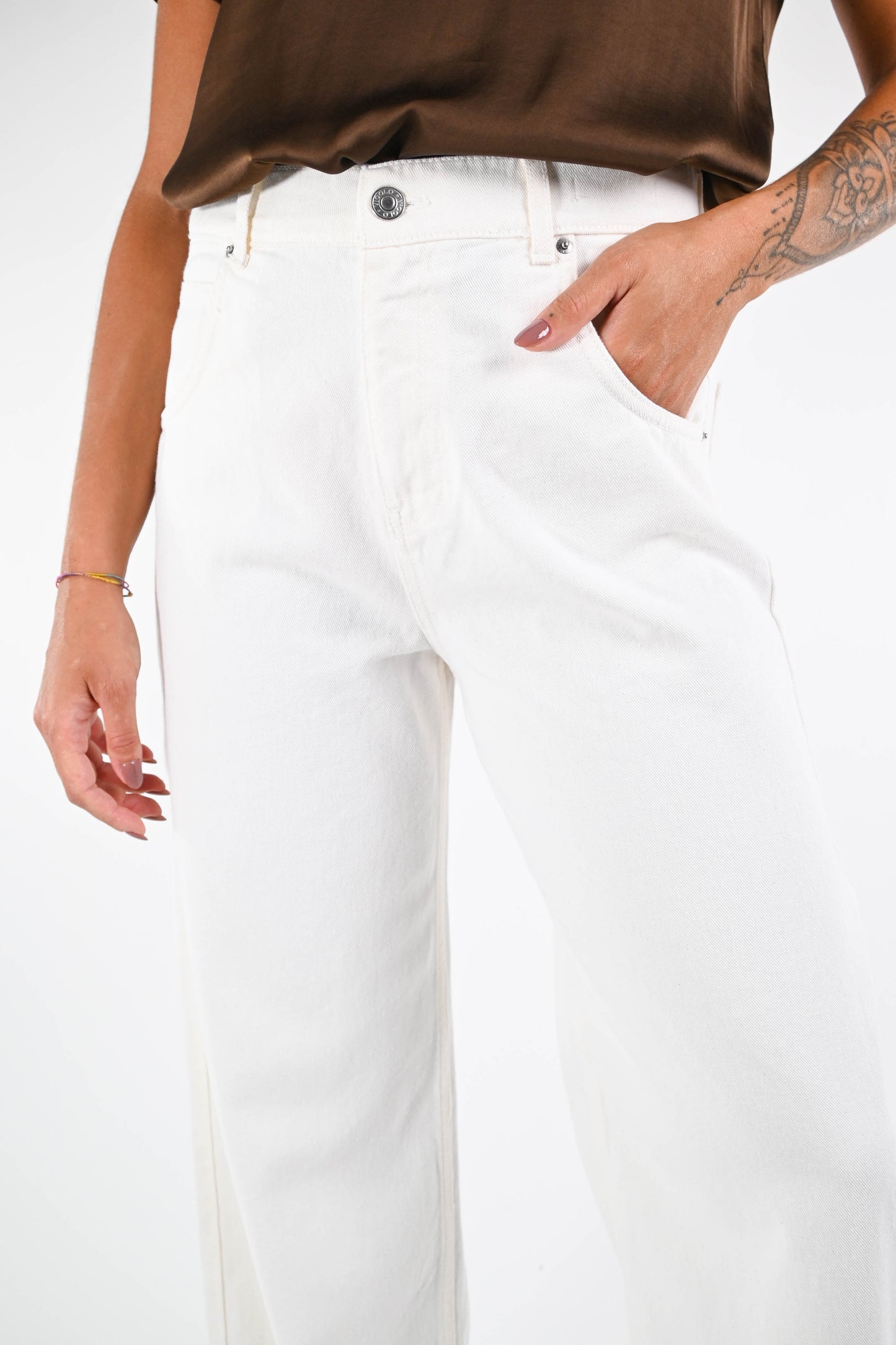 VICOLO - JEANS MIA PALAZZO ART.DF5109 - BULL DENIM PANNA