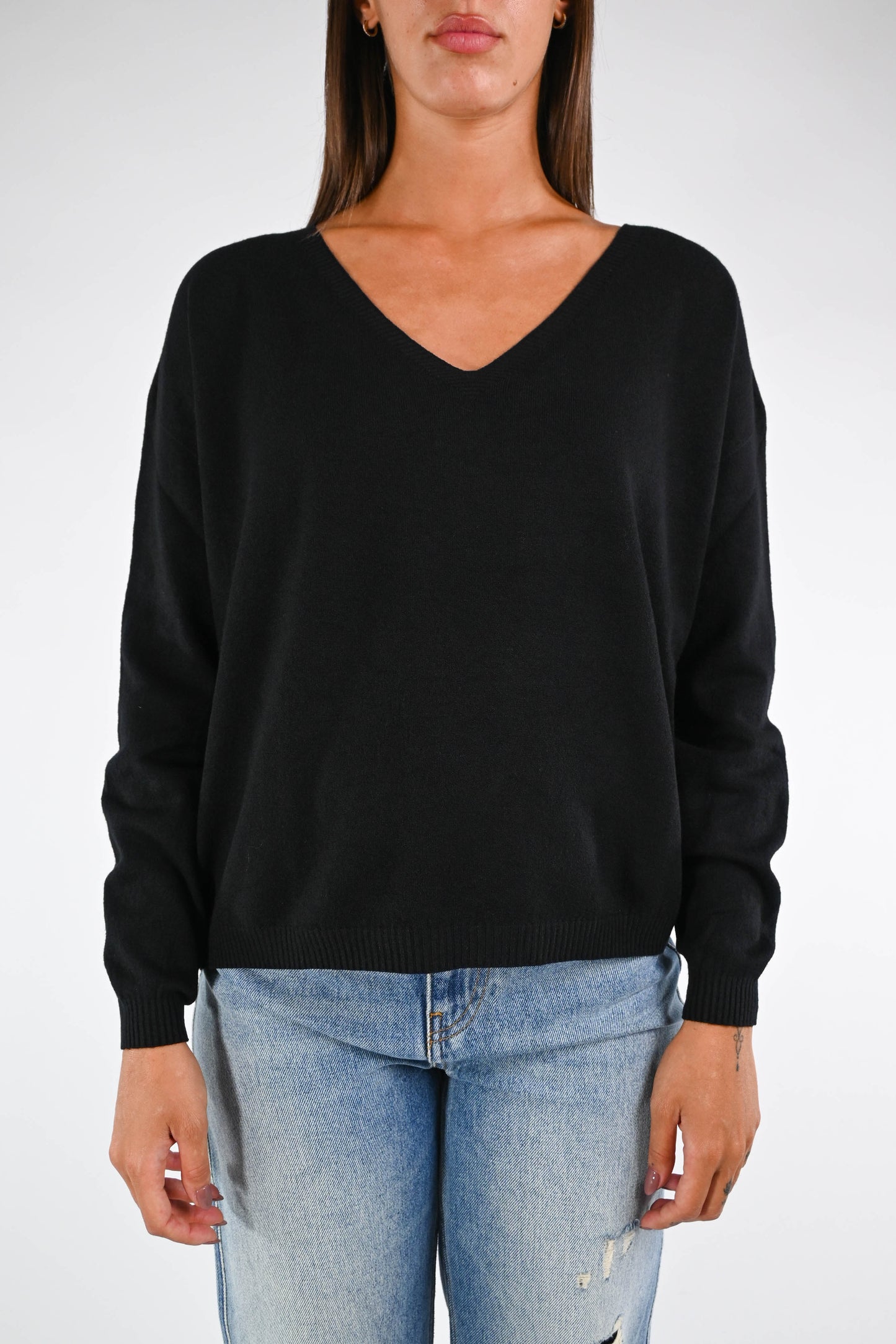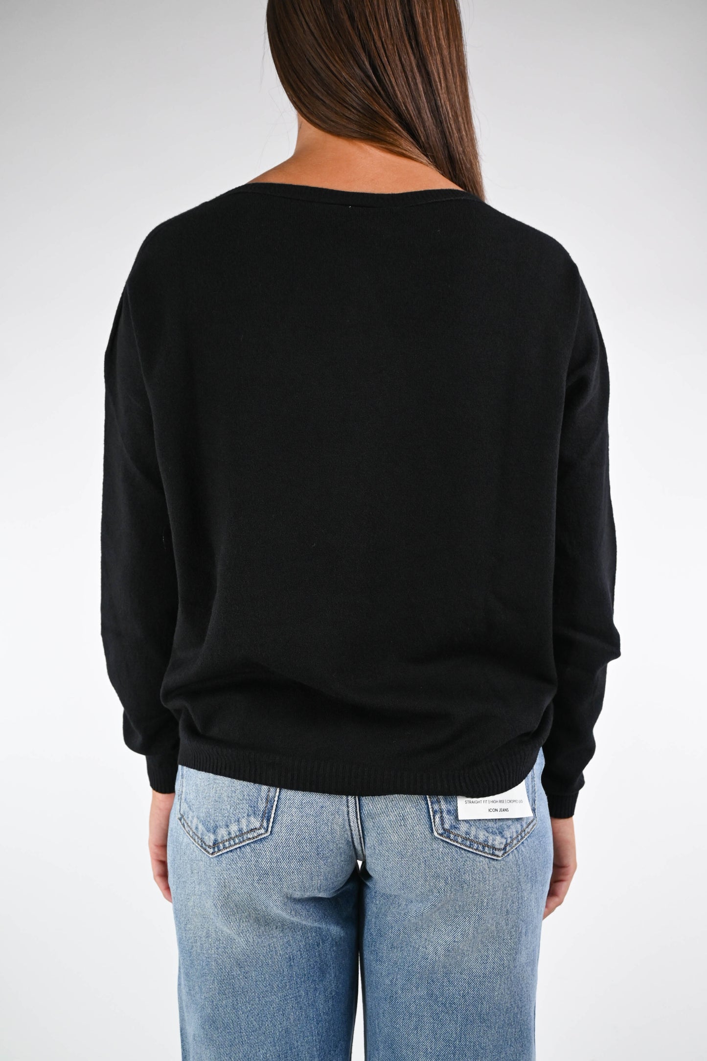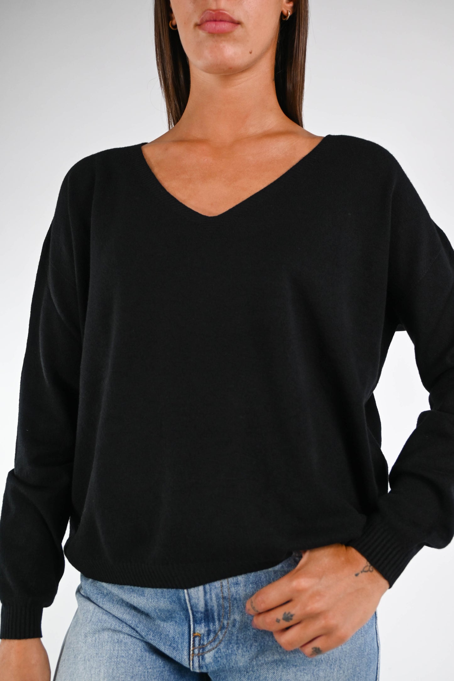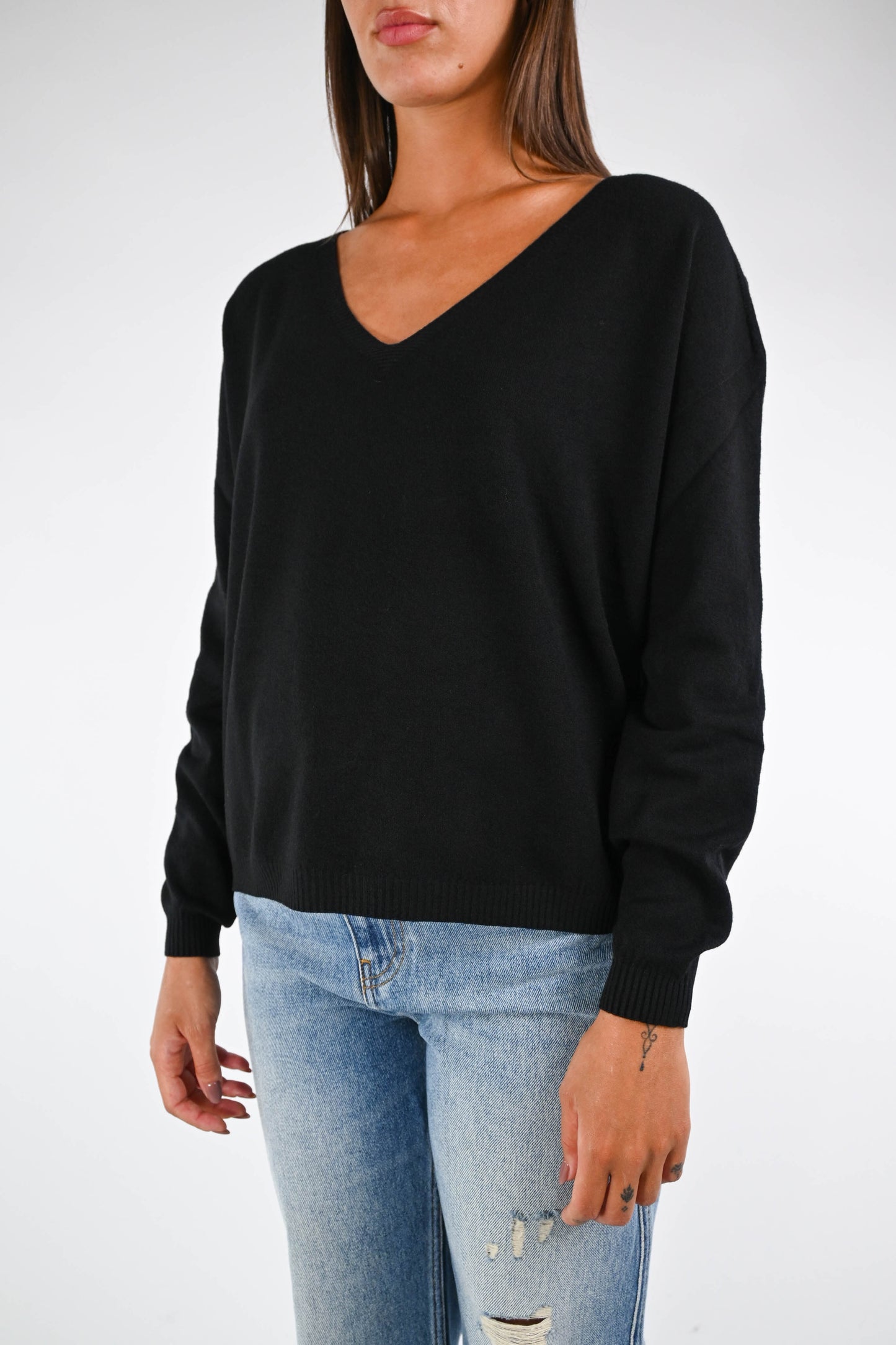 VICOLO - MAGLIA A SCATOLA SCOLLO V ART.44003F - NERO