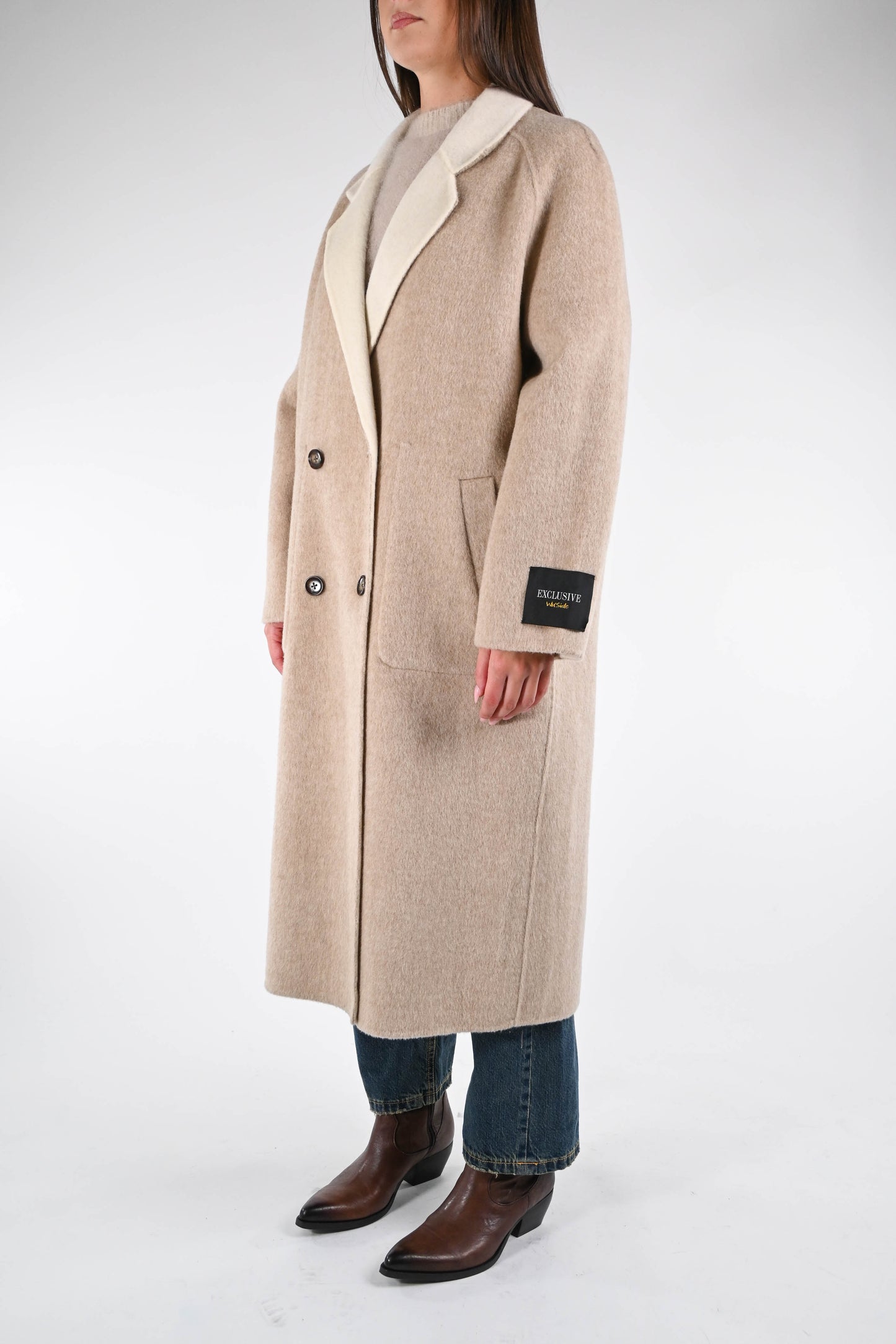 Cappotto hand made double face, con tasca diagonale esterna e tasca a toppa interna, colore beige/panna