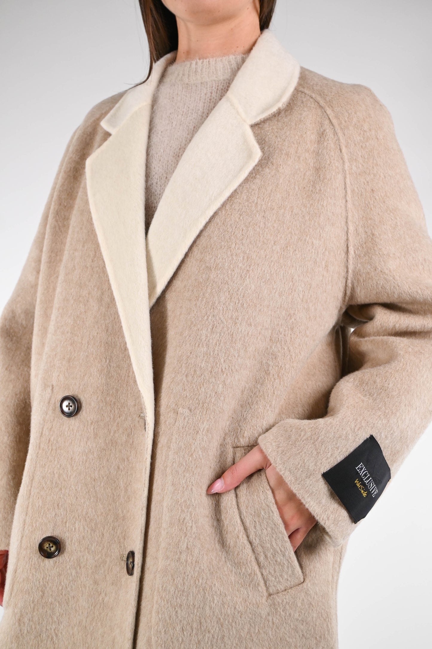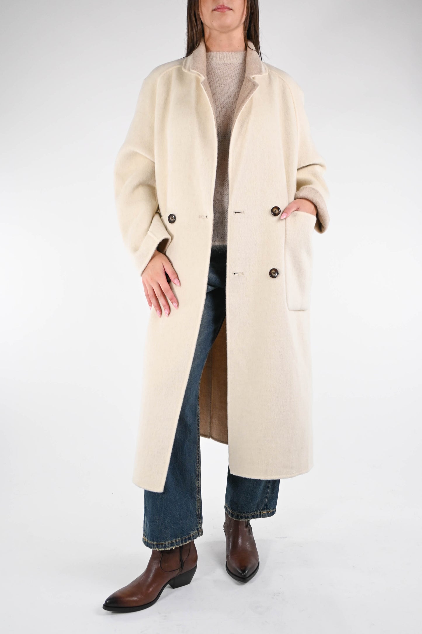 WU'SIDE - CAPPOTTO DOUBLE FACE PURA LANA ART.25632 - BEIGE/PANNA