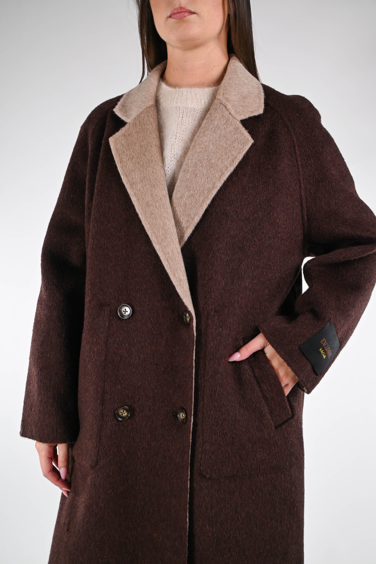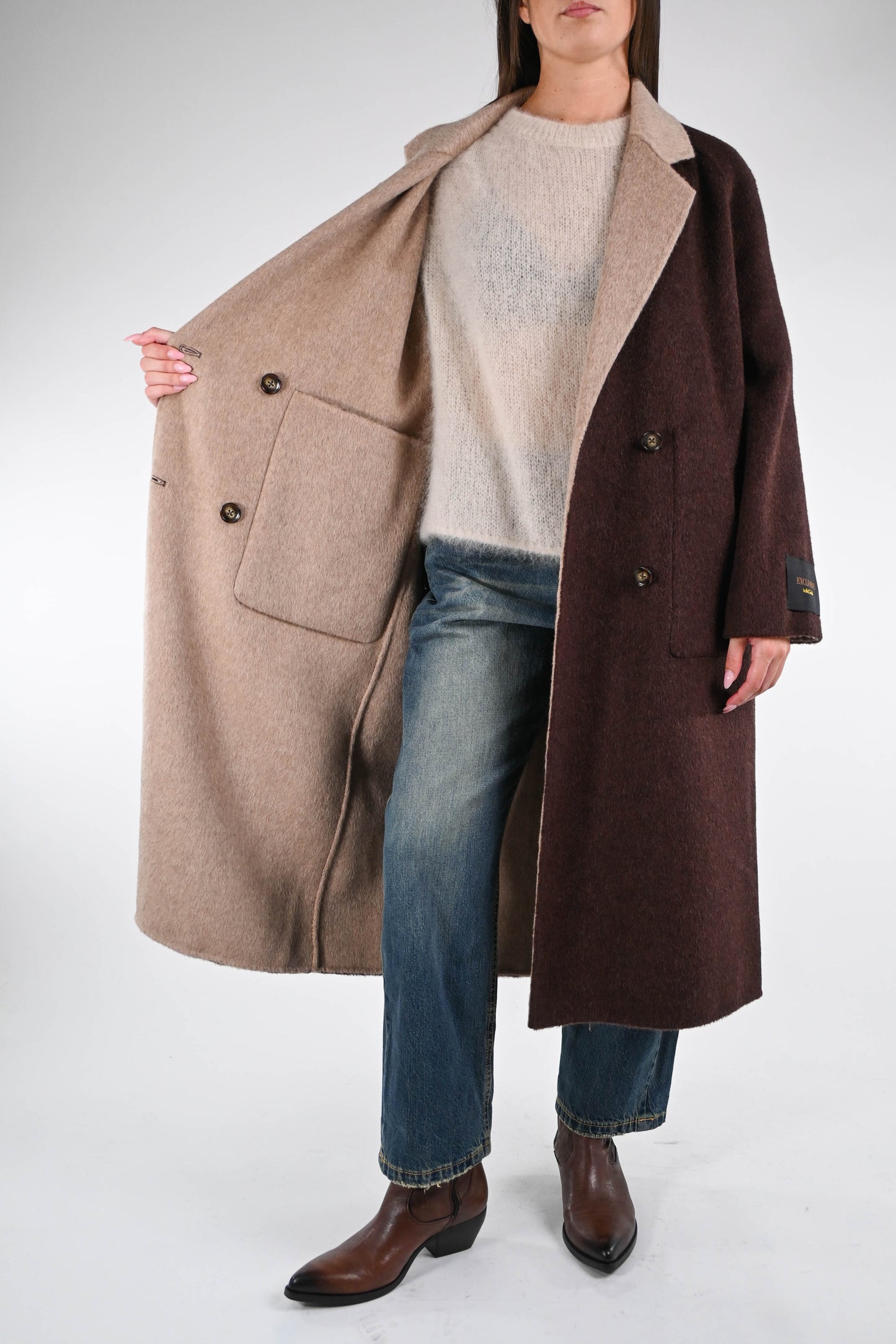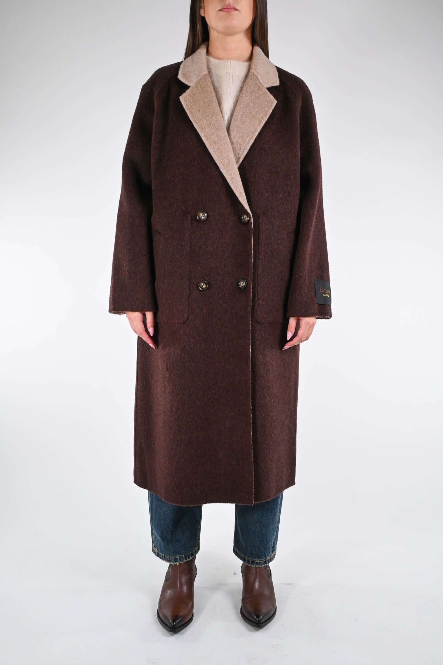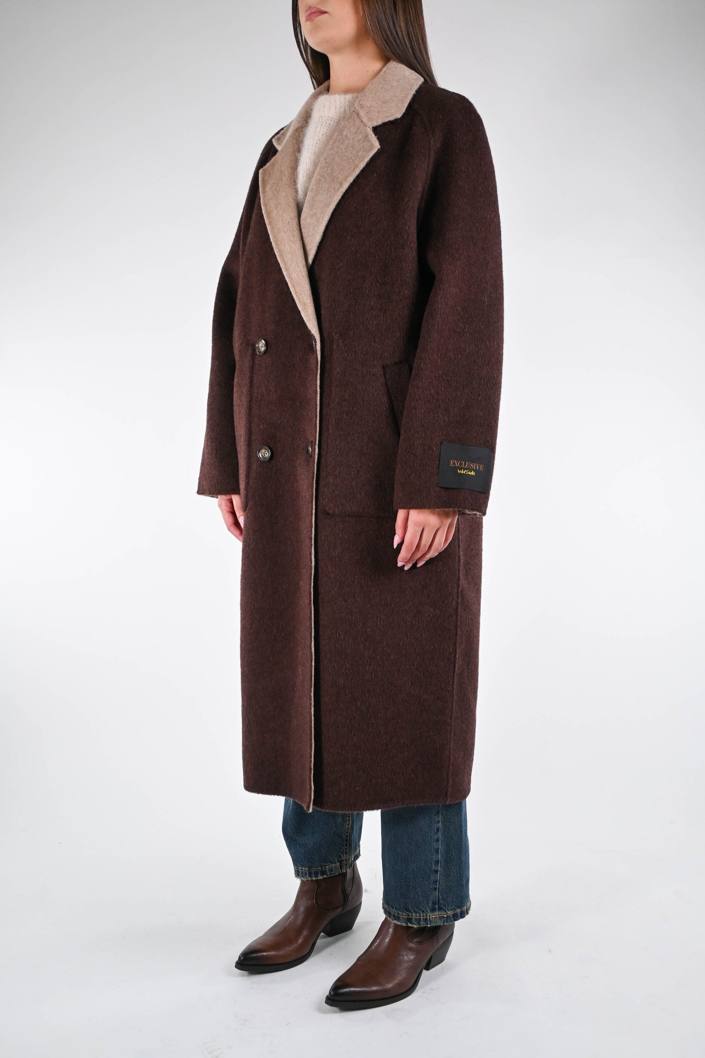 WU'SIDE - CAPPOTTO DOUBLE FACE PURA LANA ART.25632 - MARRONE/BEIGE