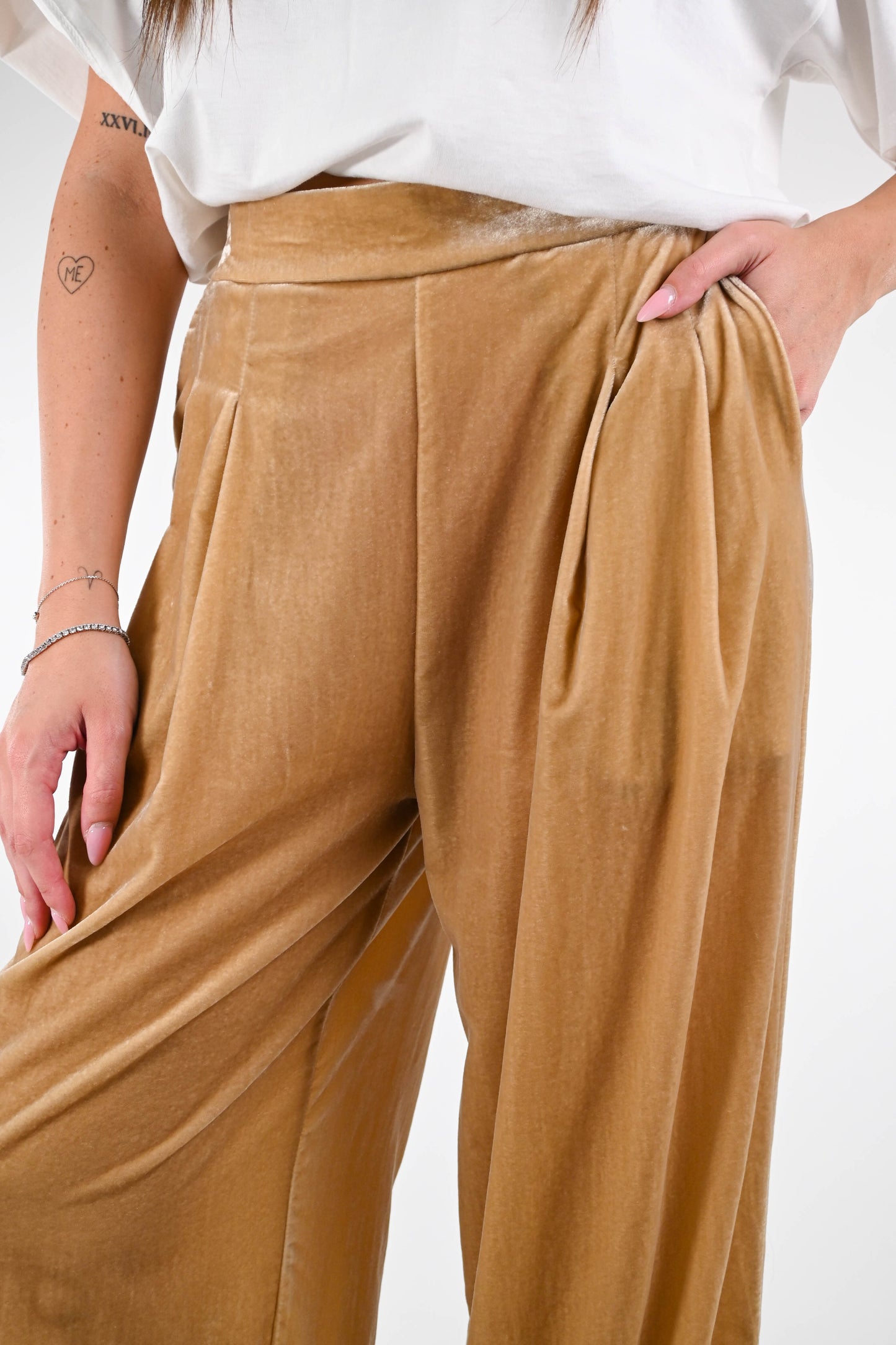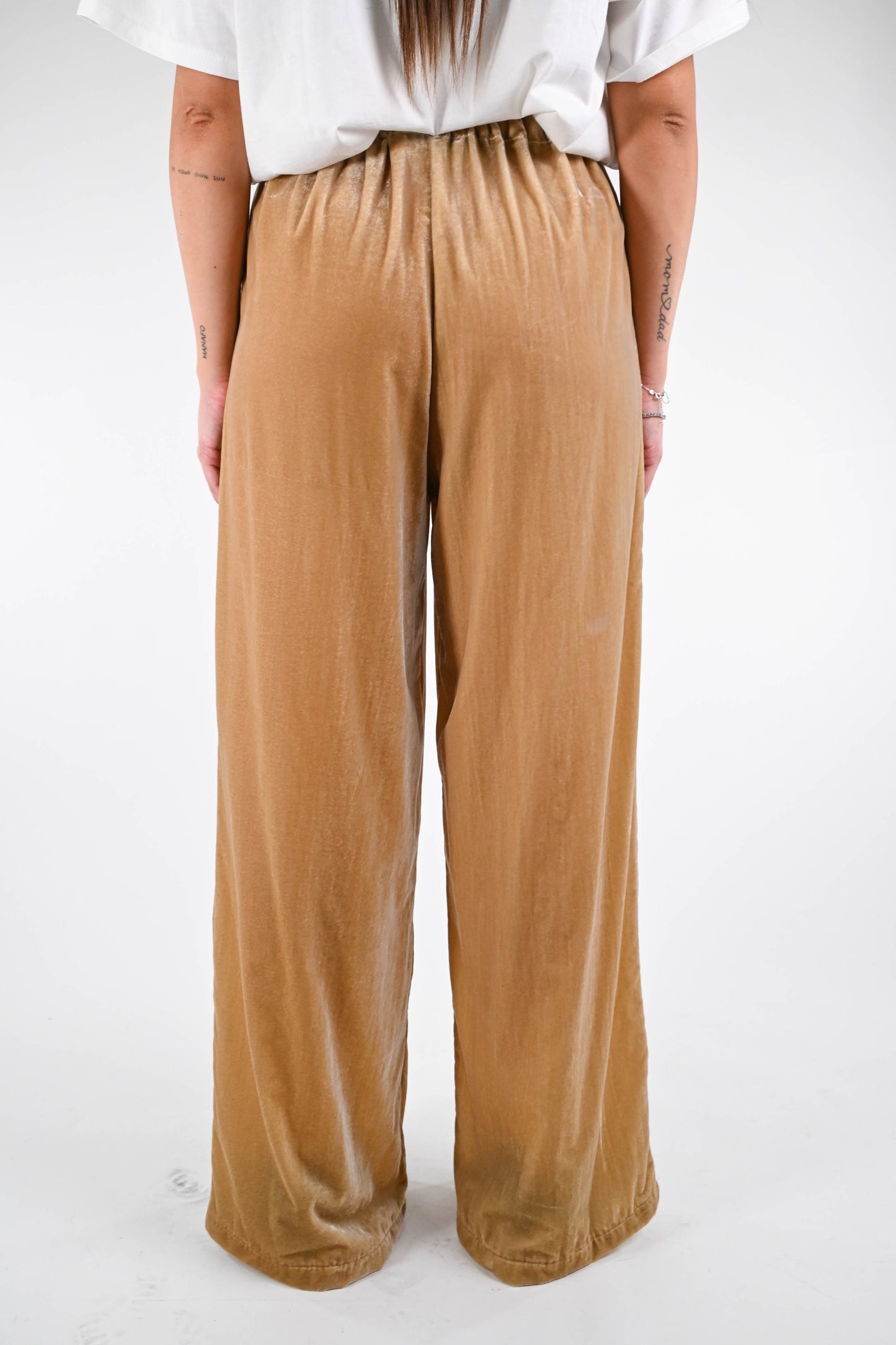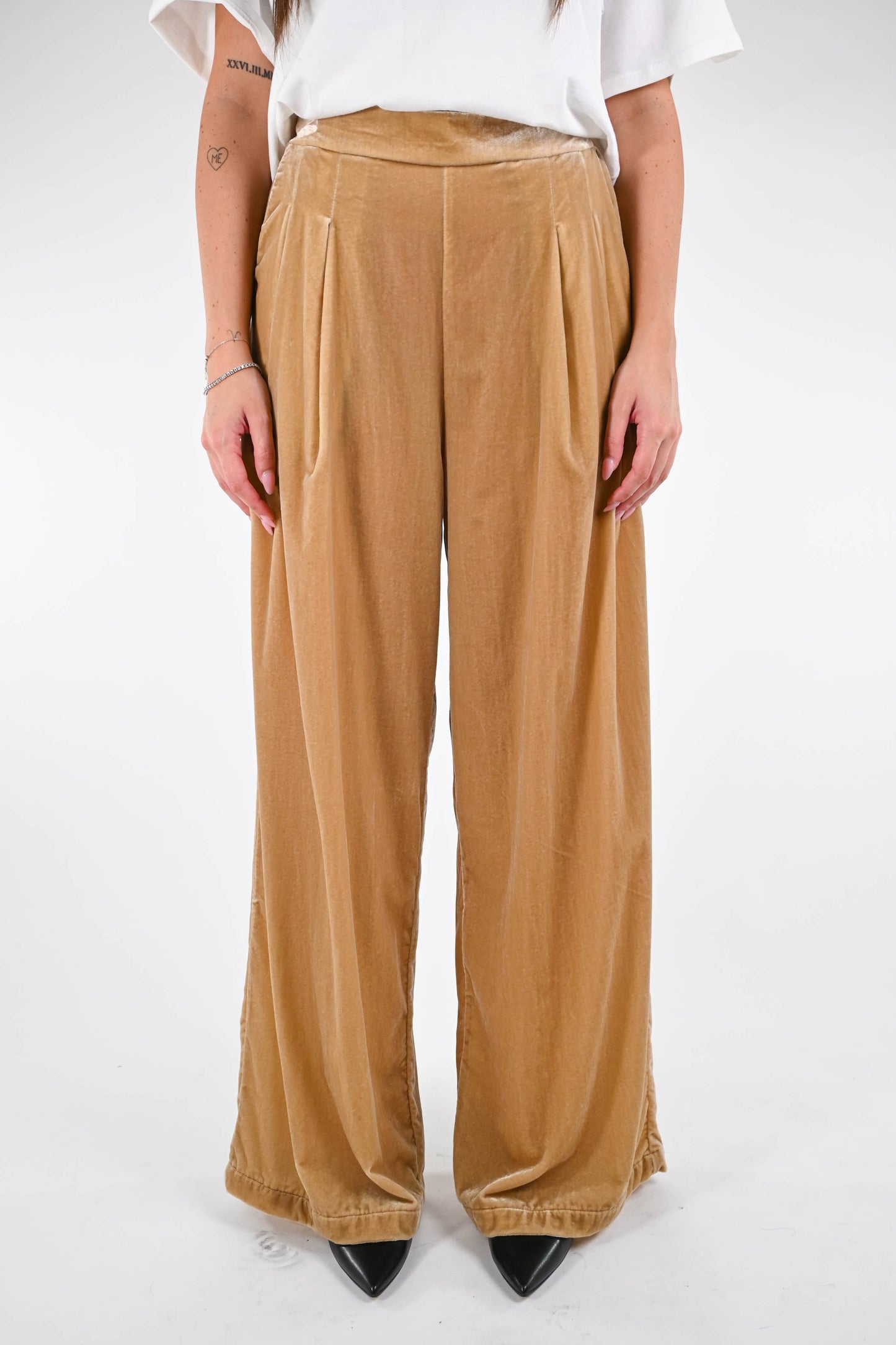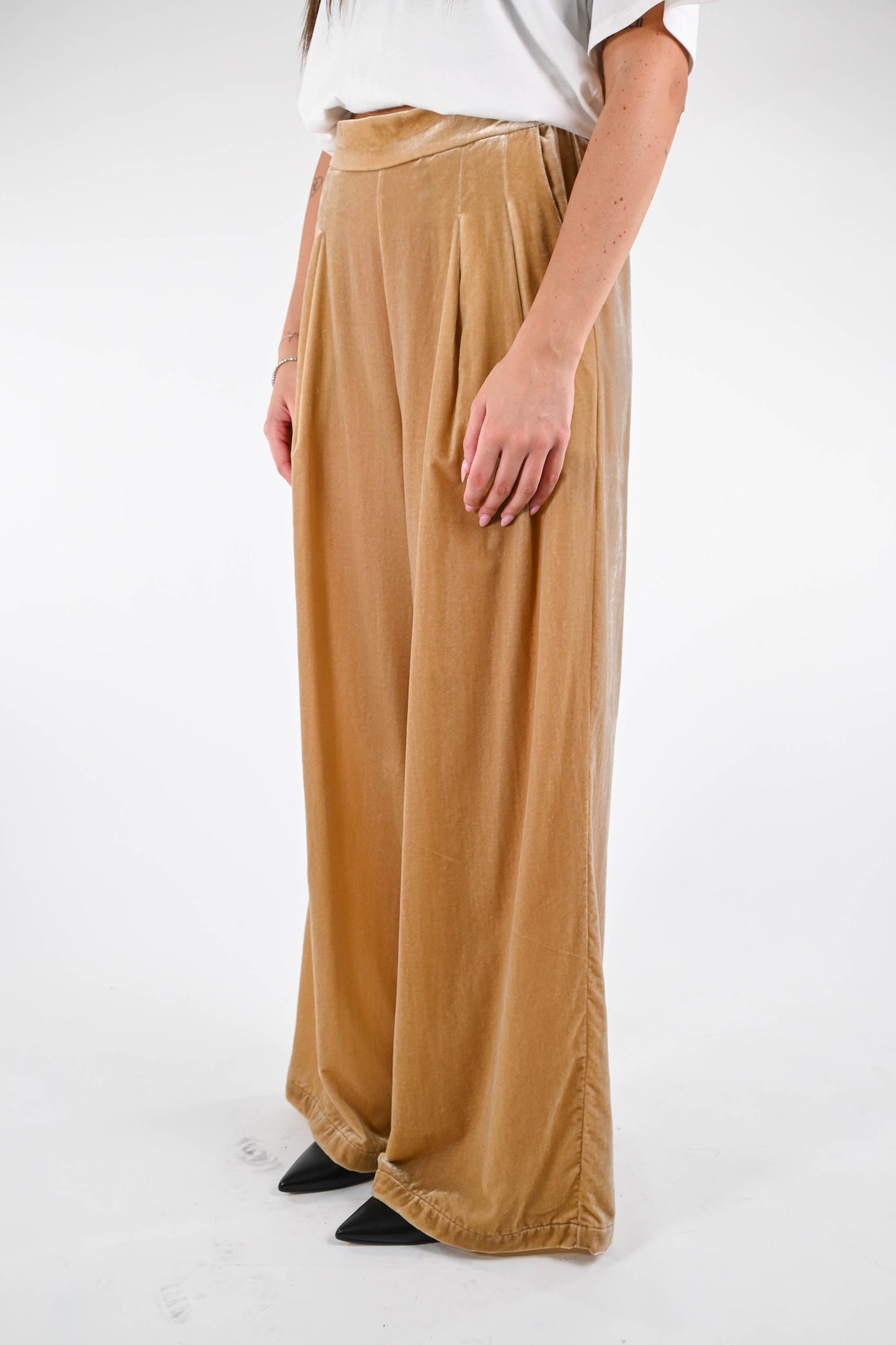 WU'SIDE - PANATALONE PALAZZO VELLUTO LISCIO ART.25606 - CAMEL