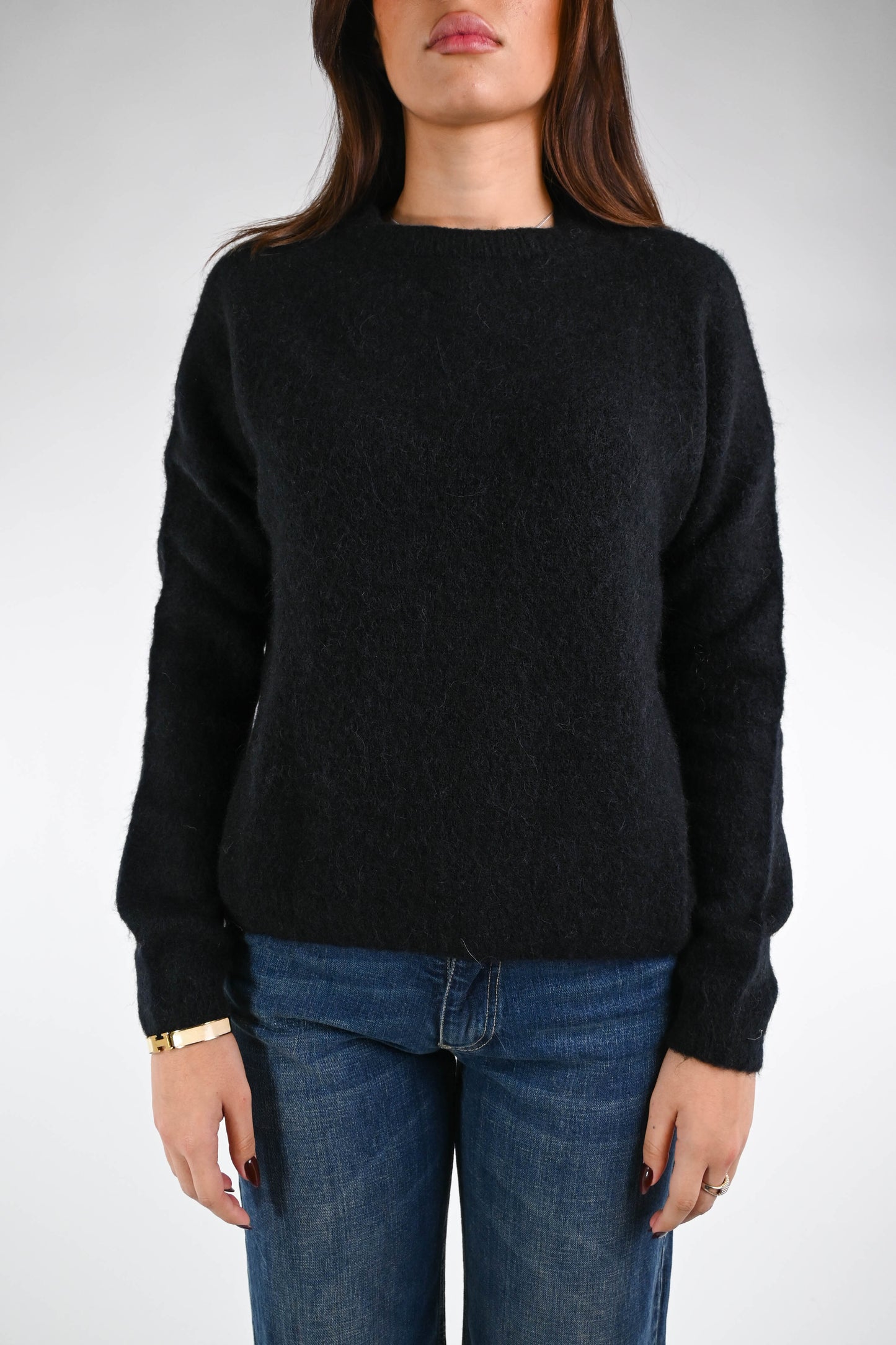 Maglia girocollo baby alpaca, manica lunga, colore Nero.