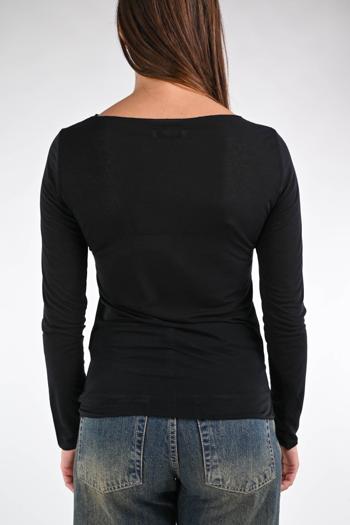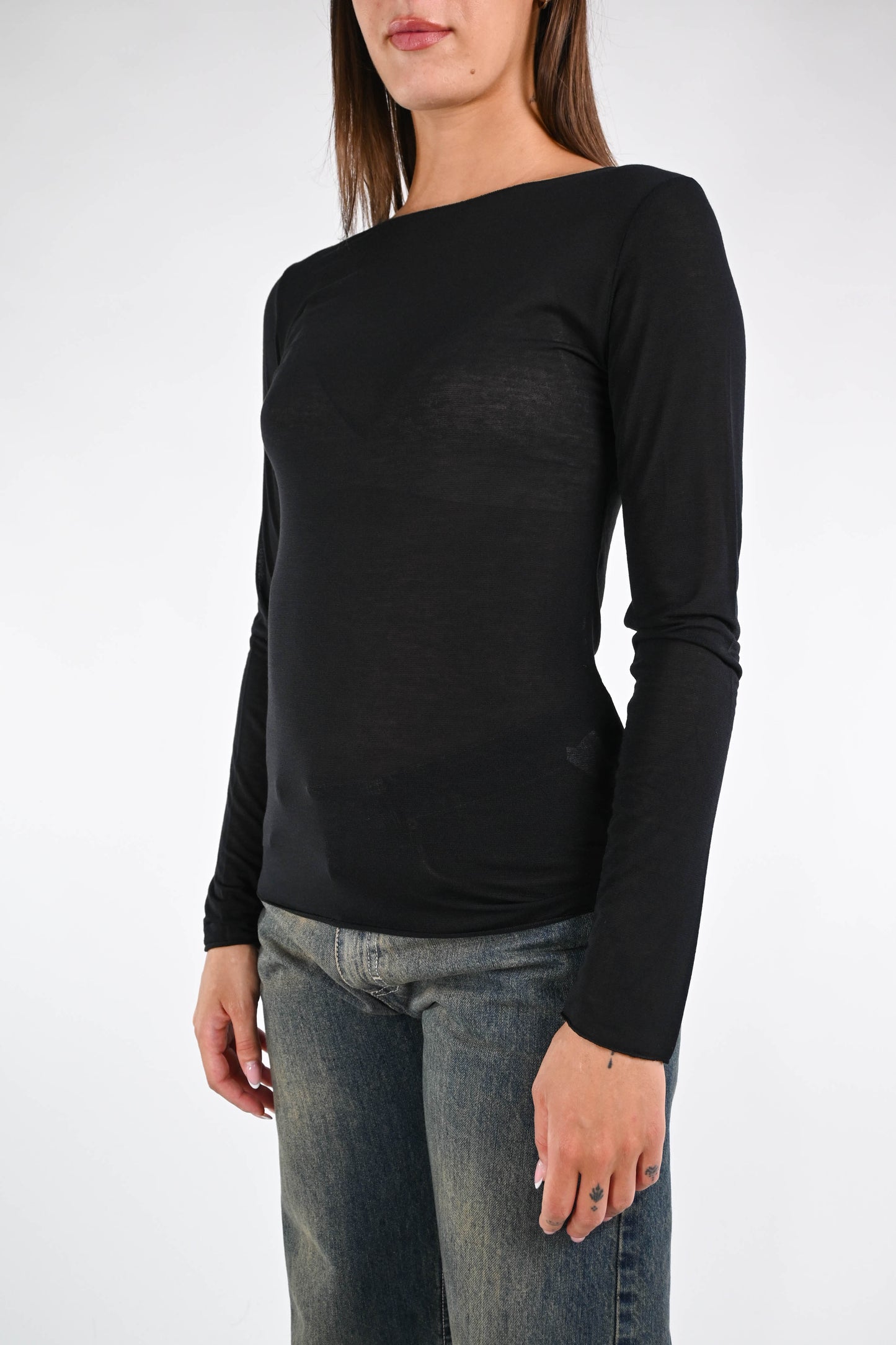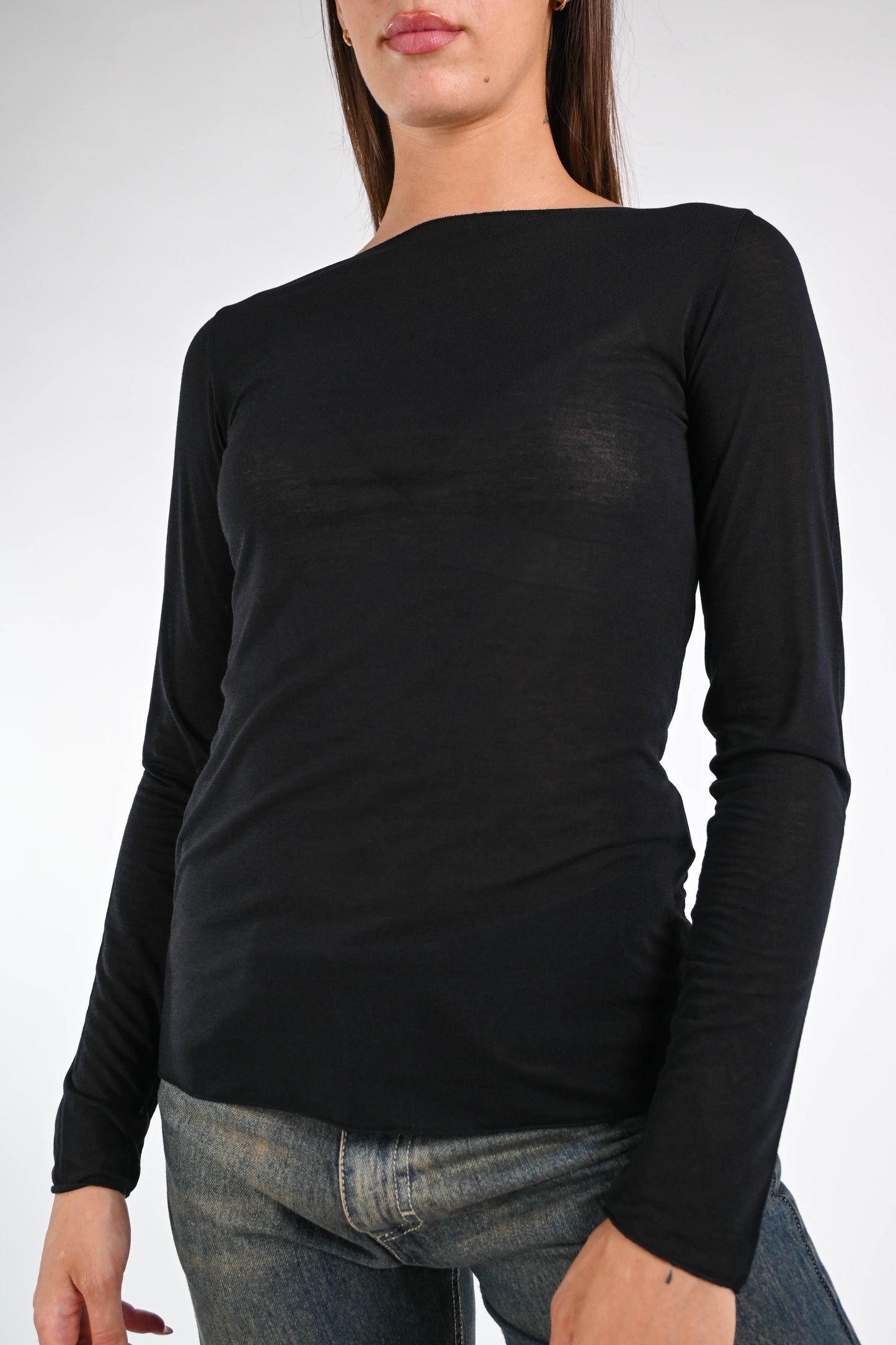 T-shirt misto cachemire scollo barchetta, manica lunga, colore nero
