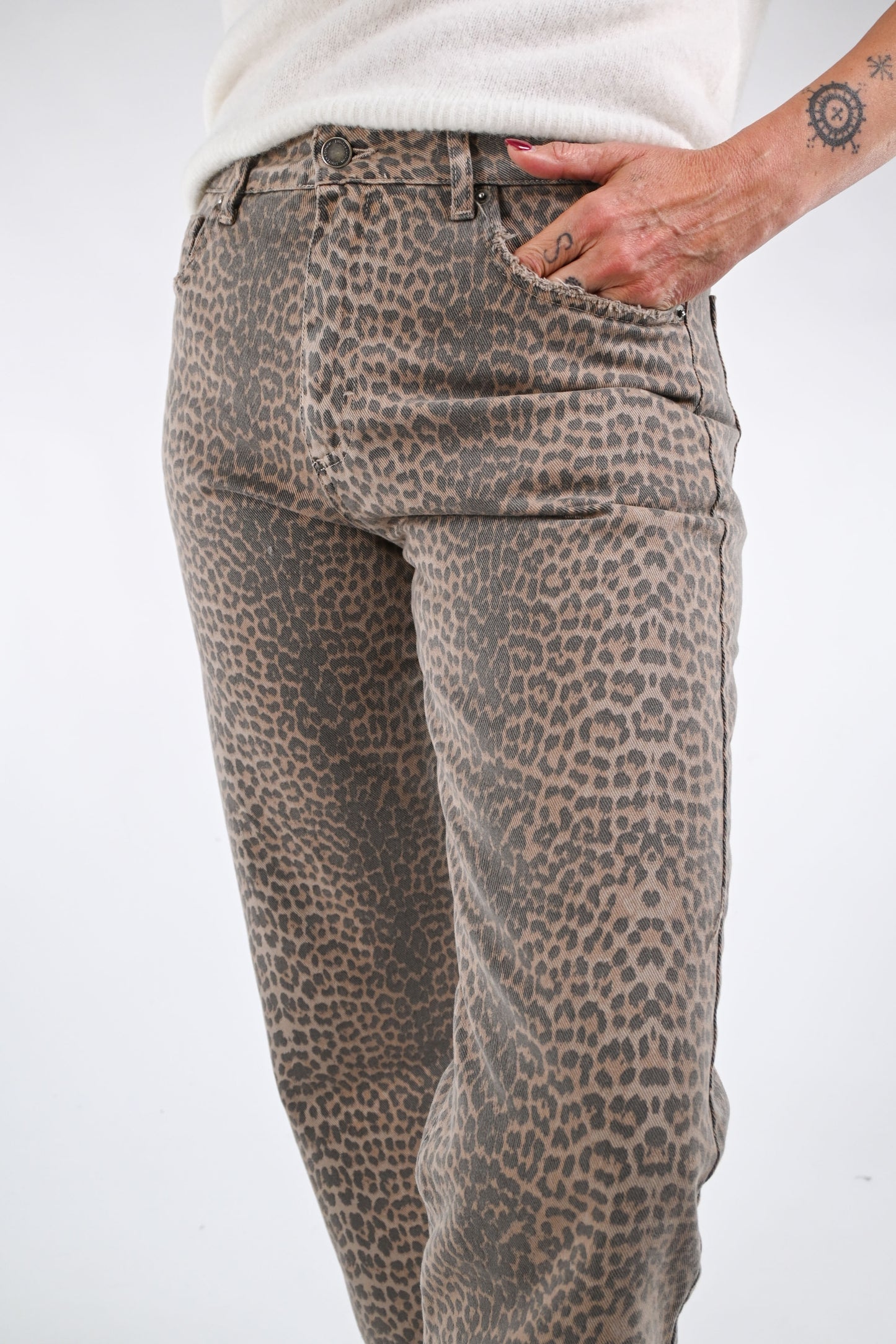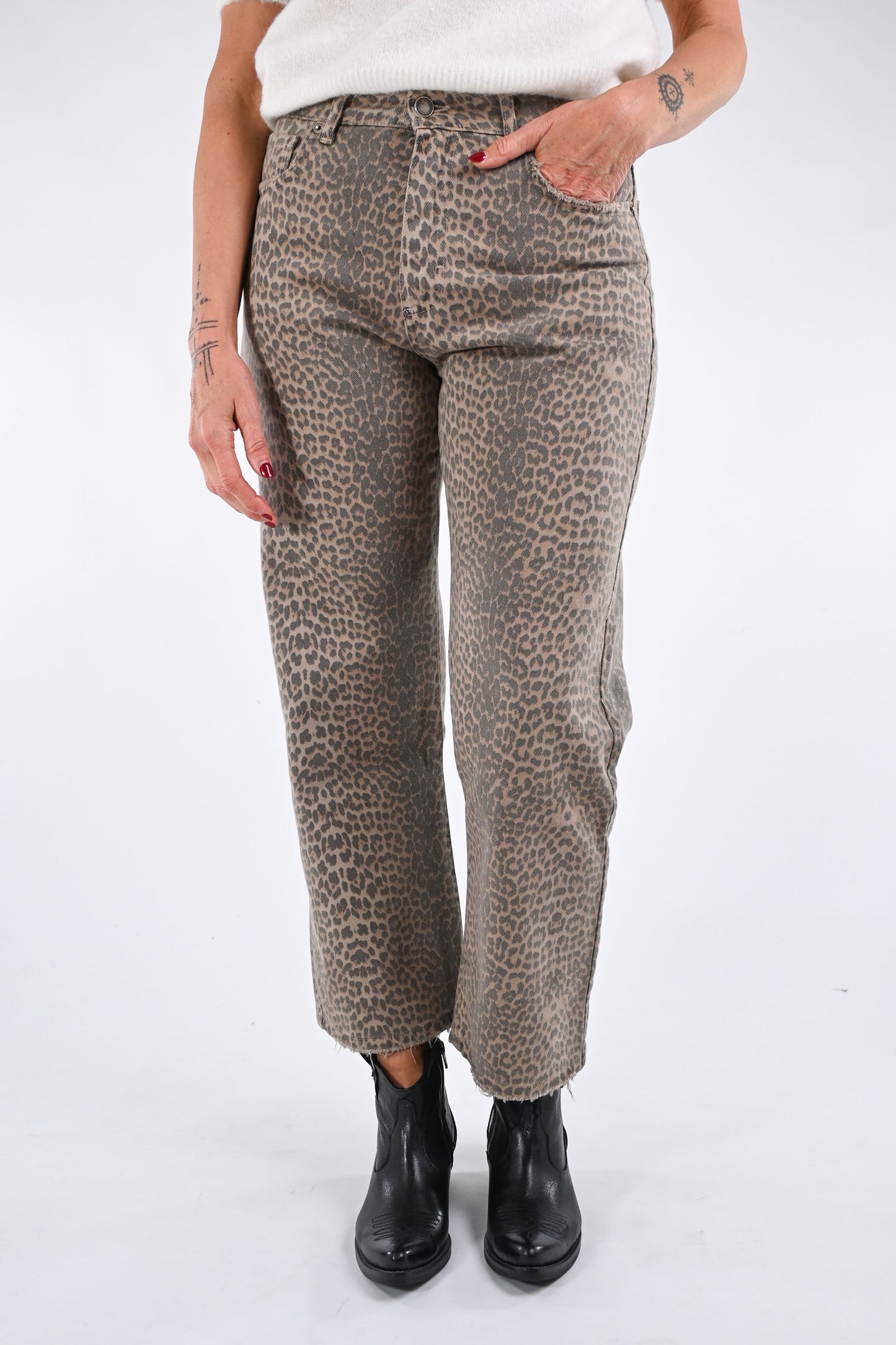 RECUPERO - JEANS DRITTO ANIMALIER ART.LION - BEIGE/MORO