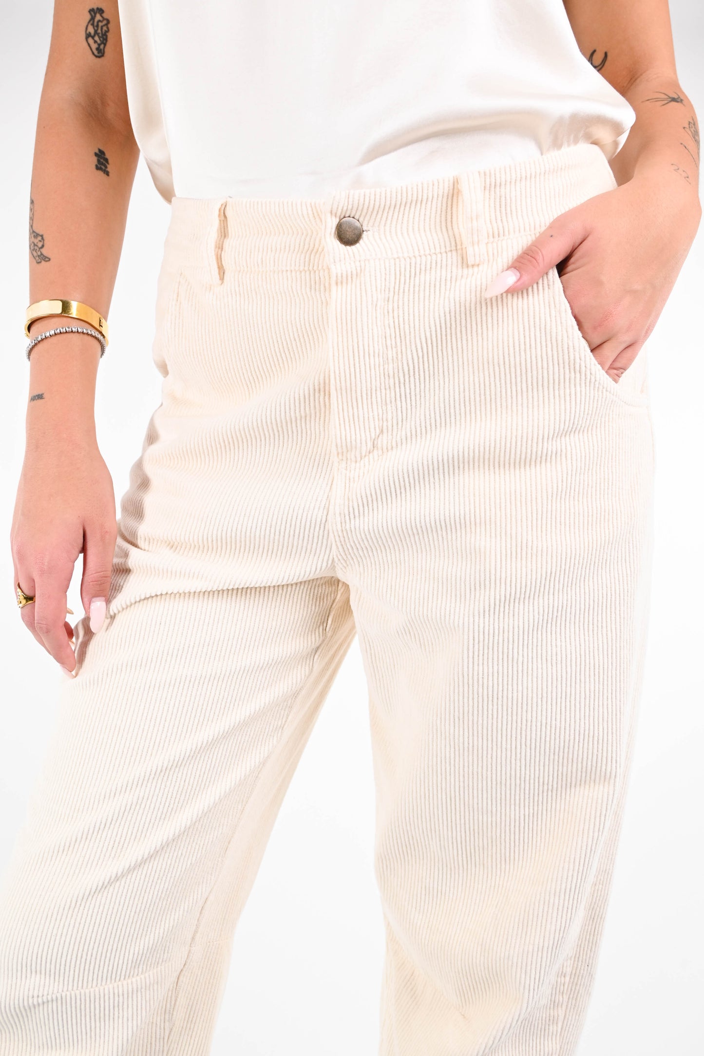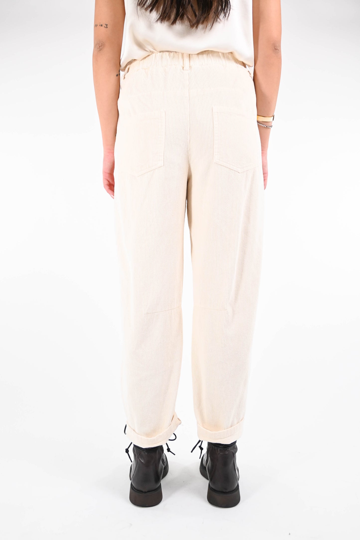 Pantalone baggy in velluto lavato, con mezzo elastico in vita, colore Burro