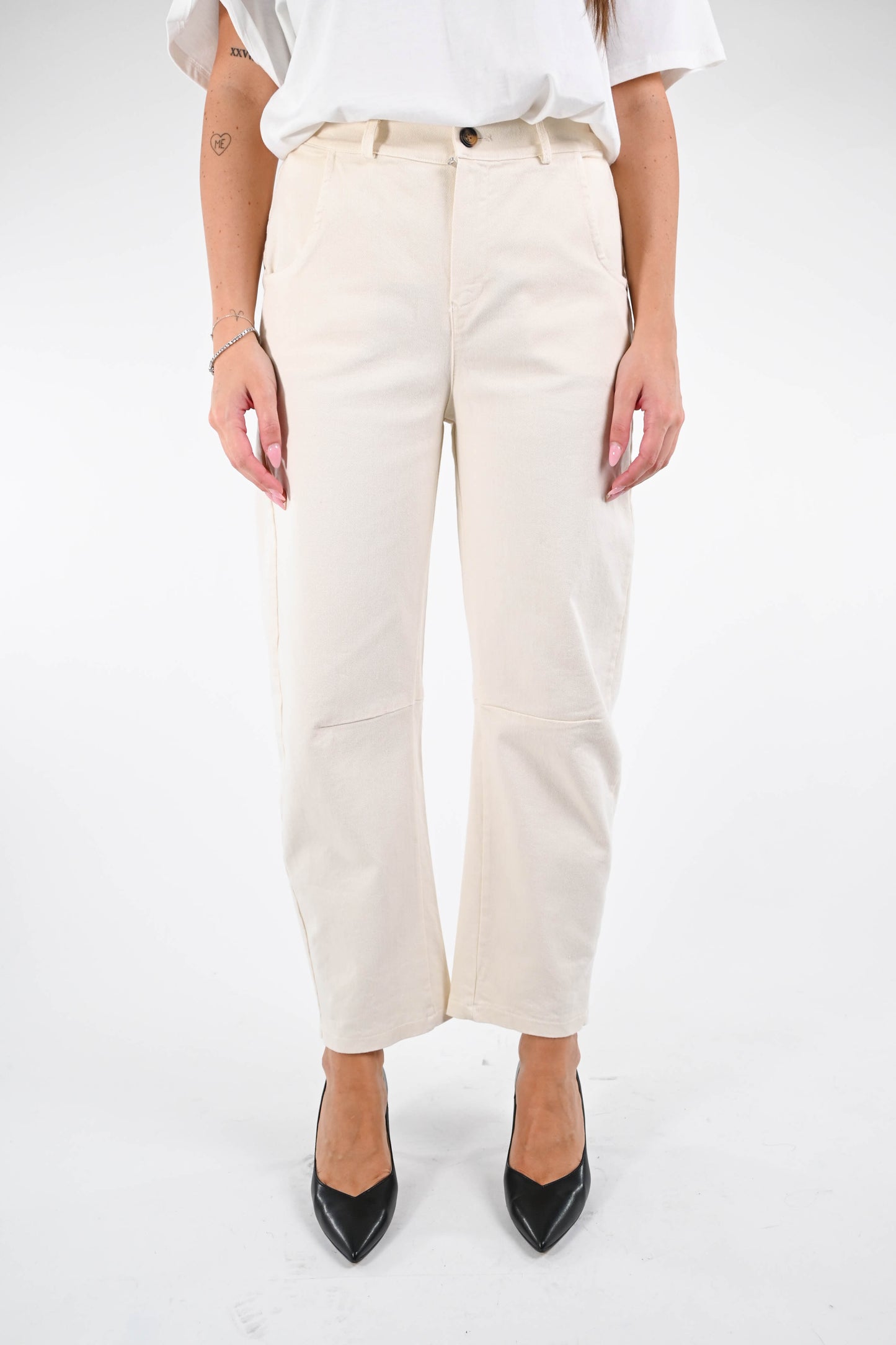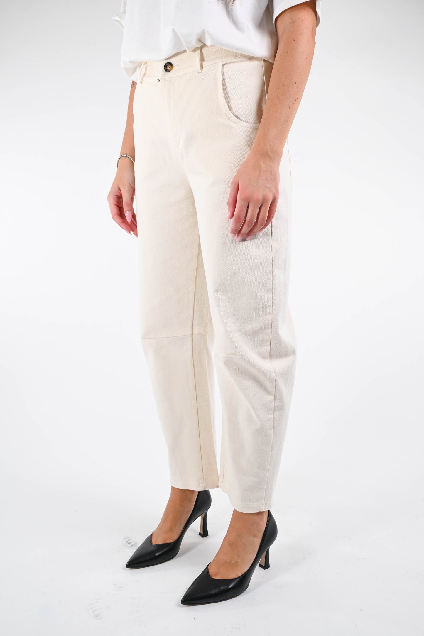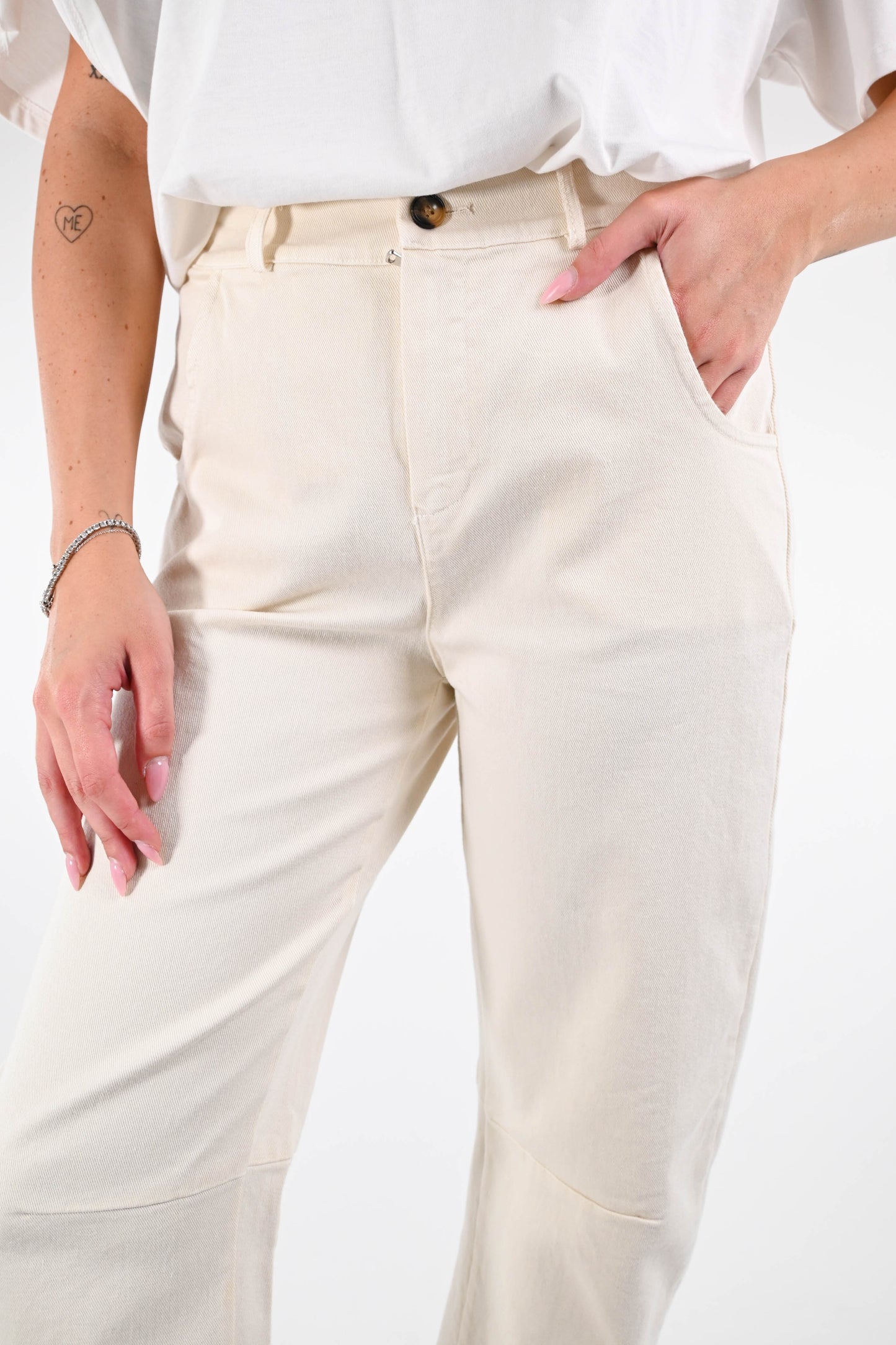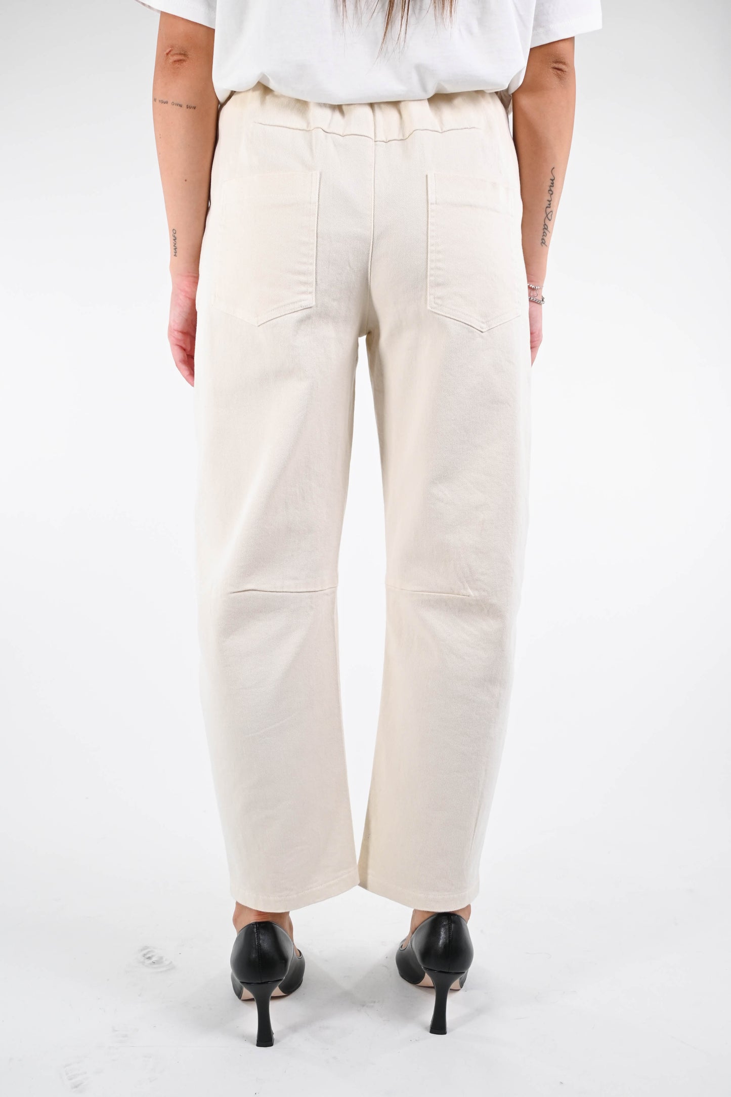 Pantalone baggy in bull denim, con mezzo elastico in vita, colore panna