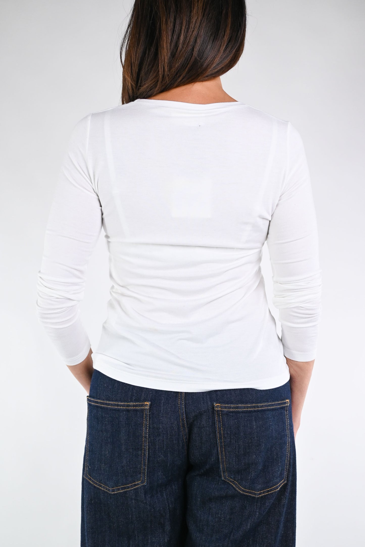 T-shirt manica lunga scollo madonna, elasticizzata, in viscosa, colore panna