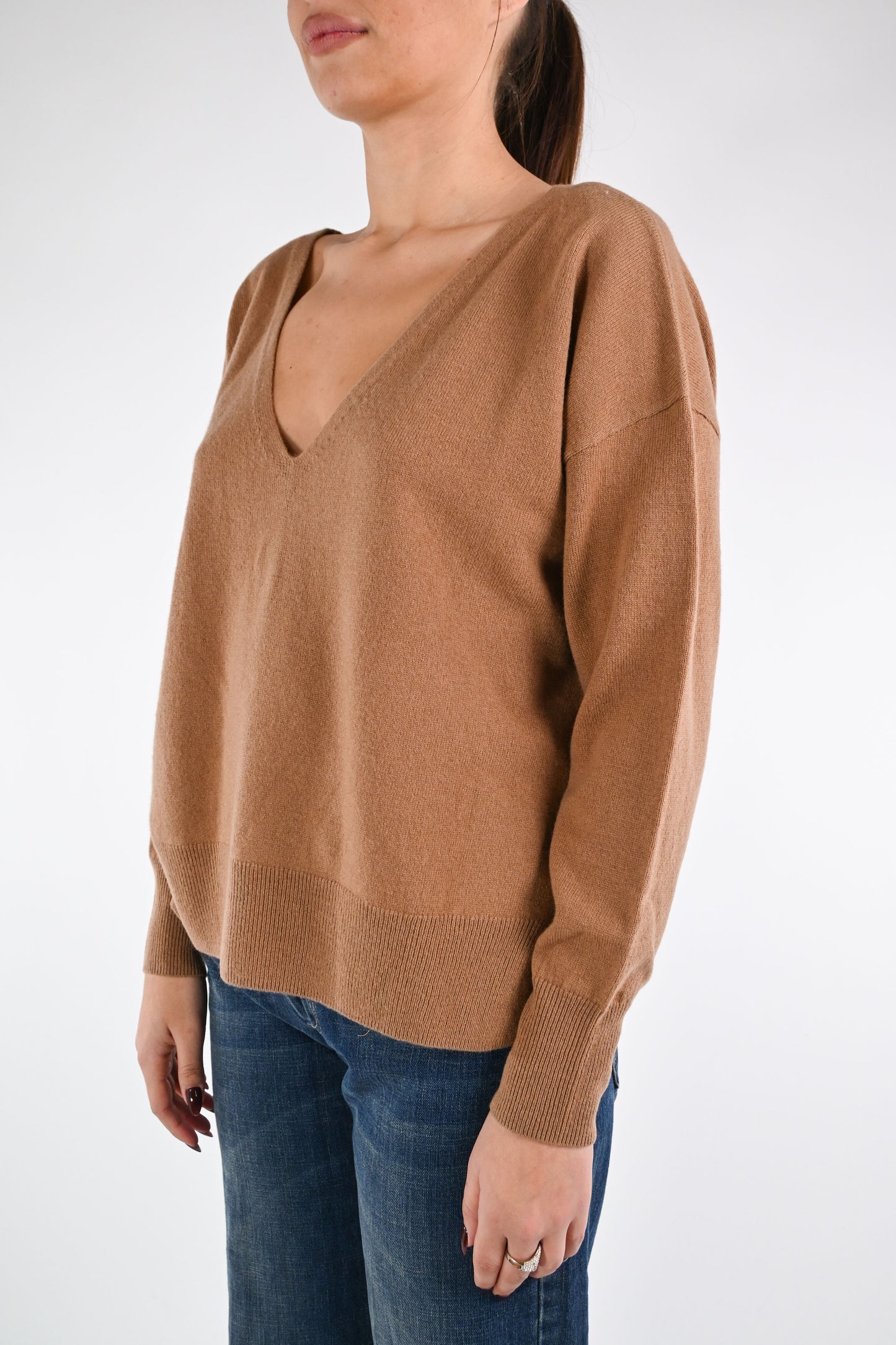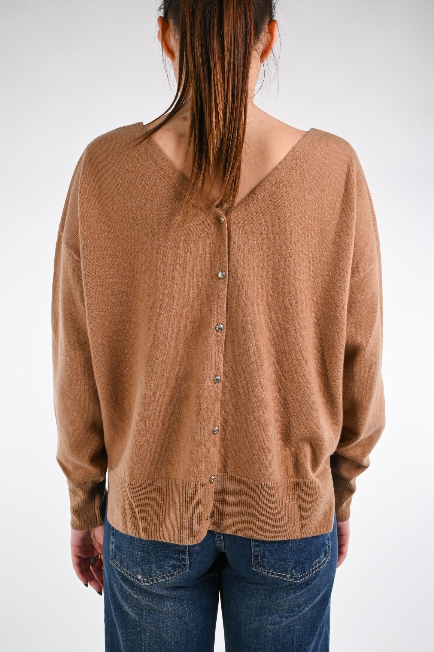 TENSIONE IN - MAGLIA PURA LANA BOTTONI DIETRO ART.WL544A - CAMMELLO