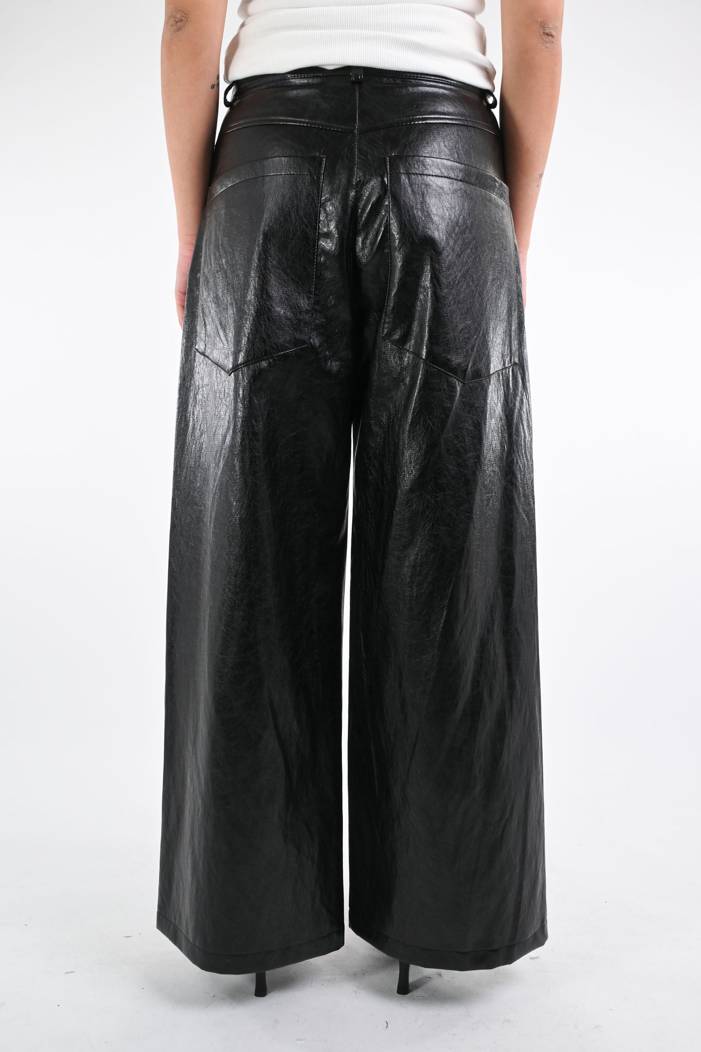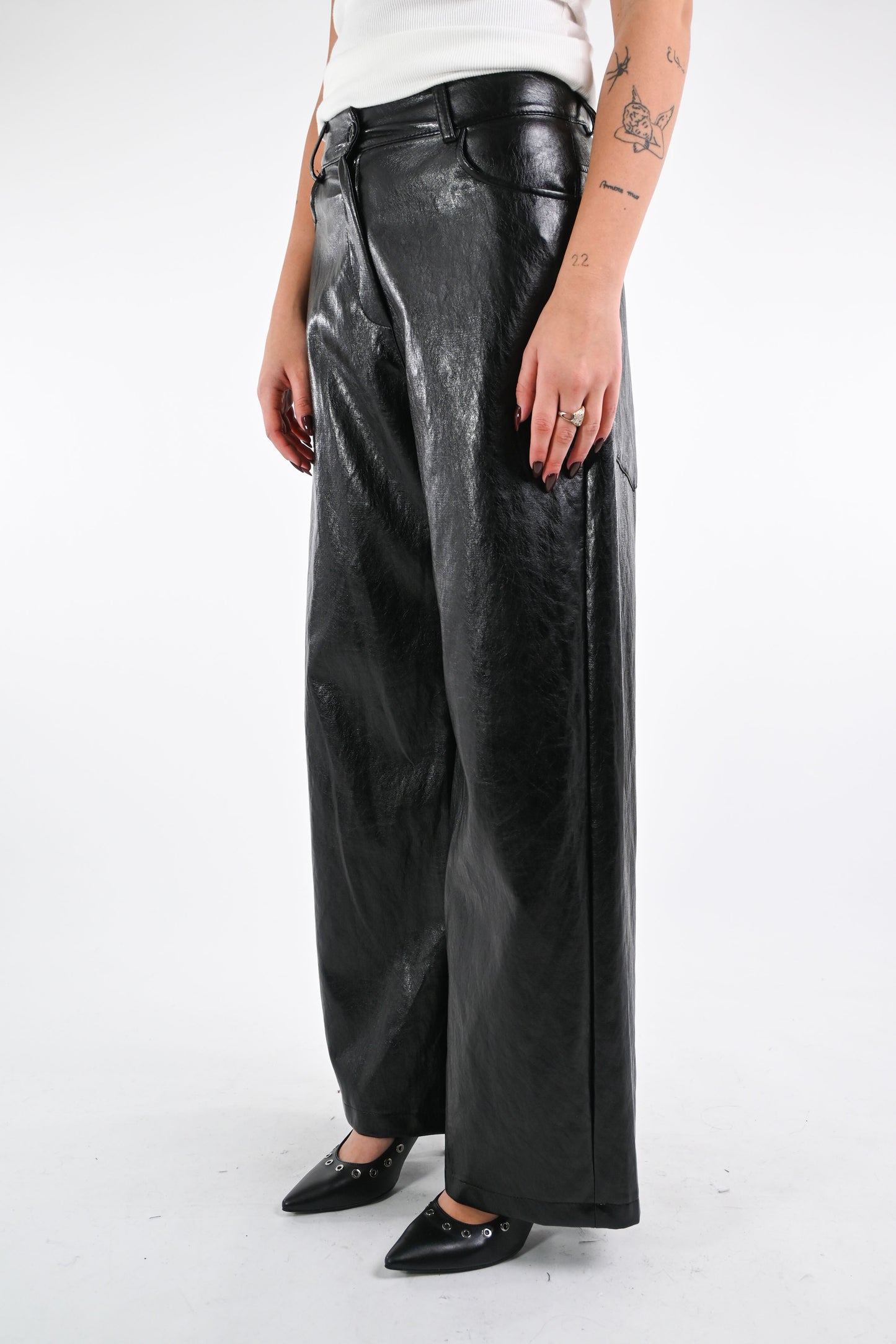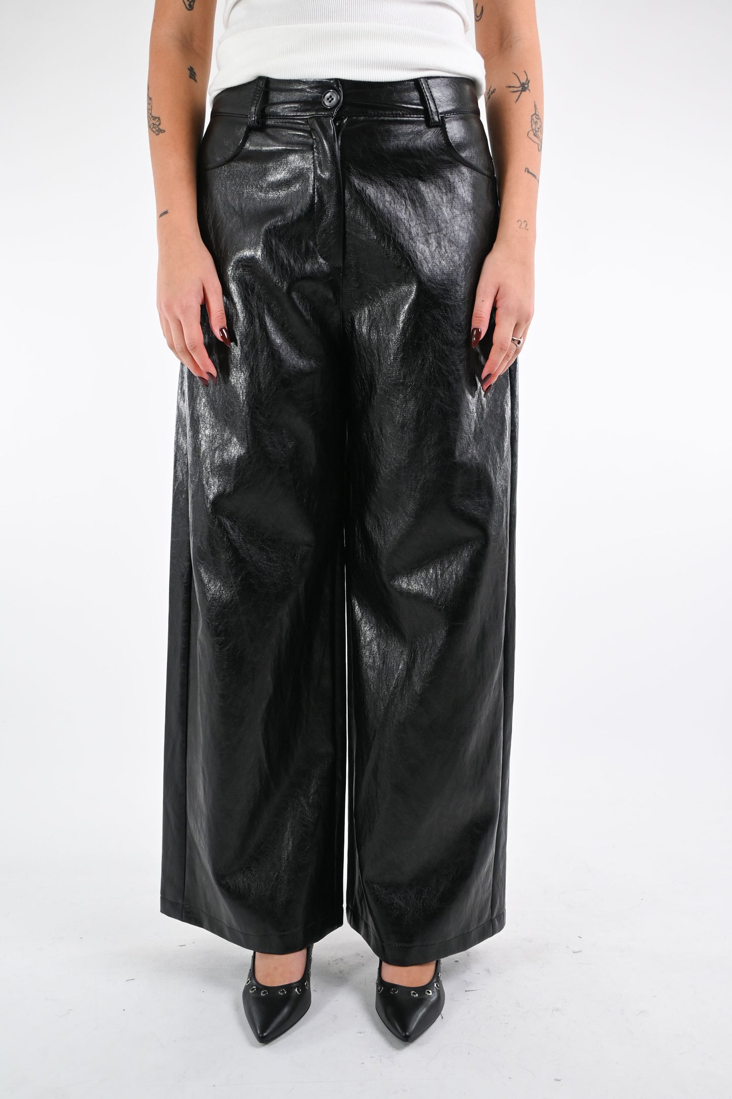 TENSIONE IN - PANTALONE PALAZZO ECOPELLE MARTELLATA ART.224155N - NERO