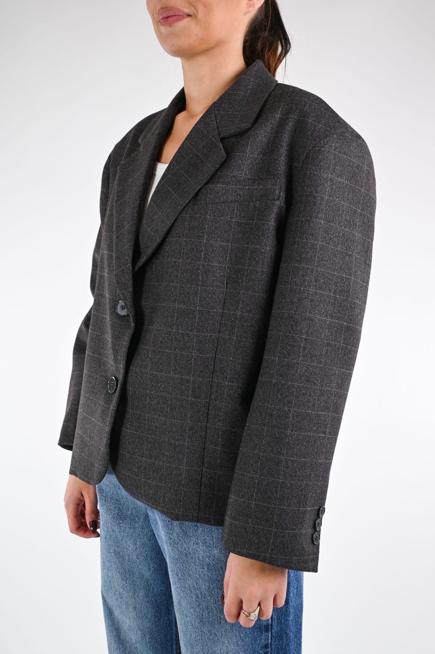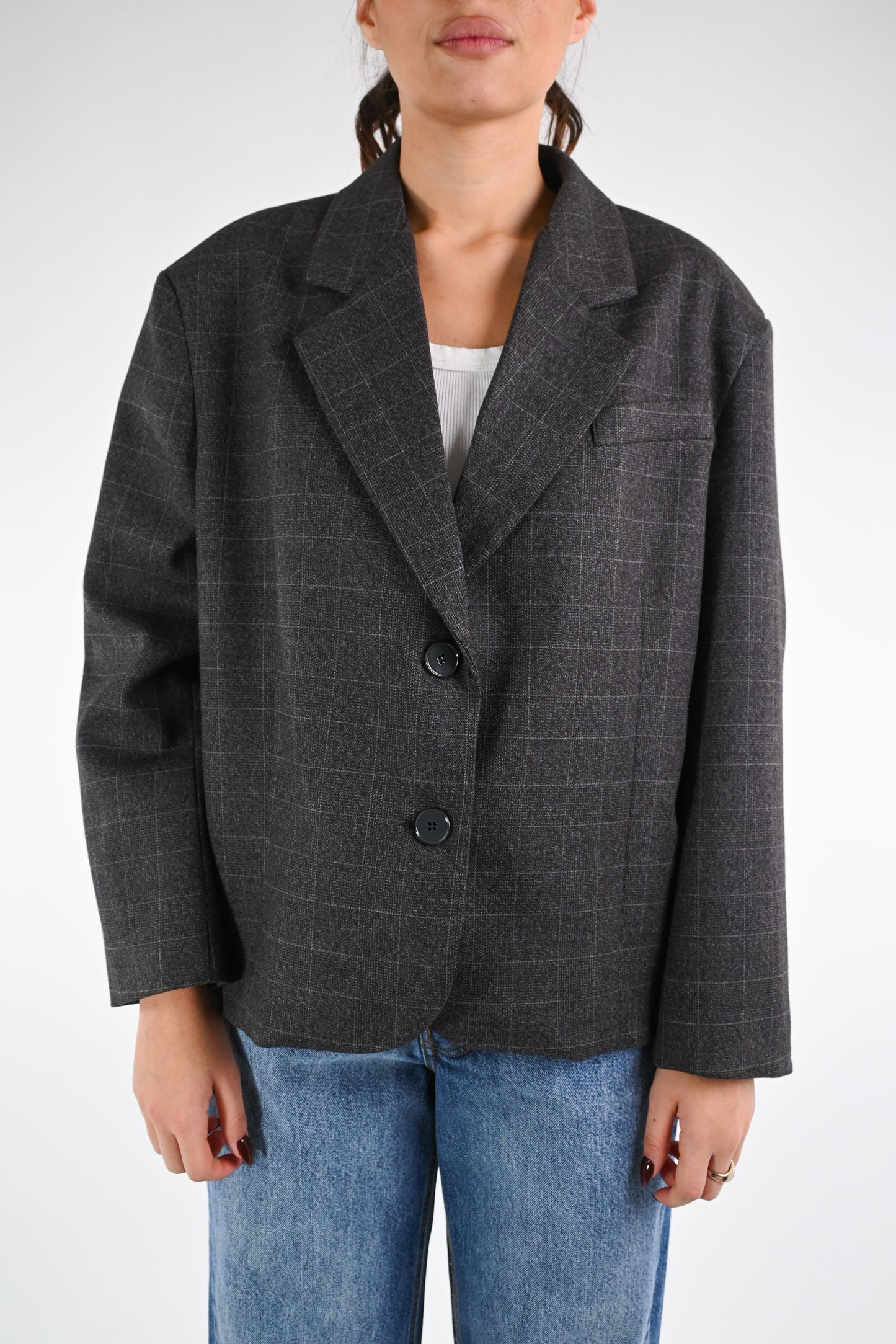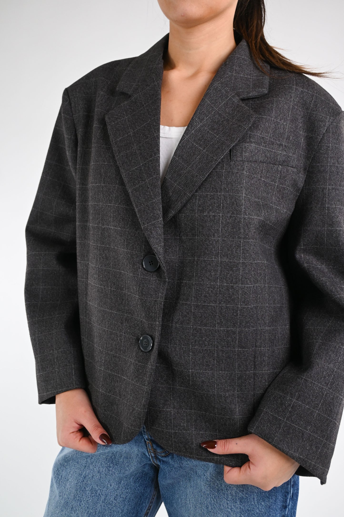 VICOLO - GIACCA OVER FANTASIA CHECK ART.TF1687 - GRIGIO