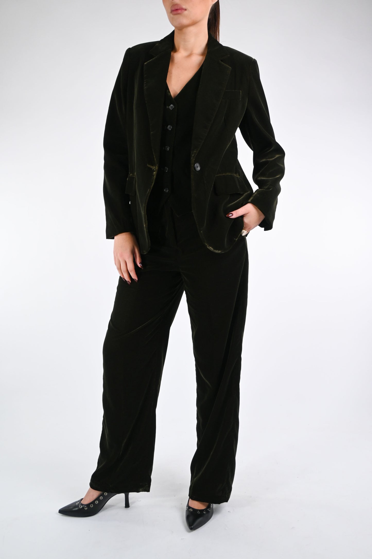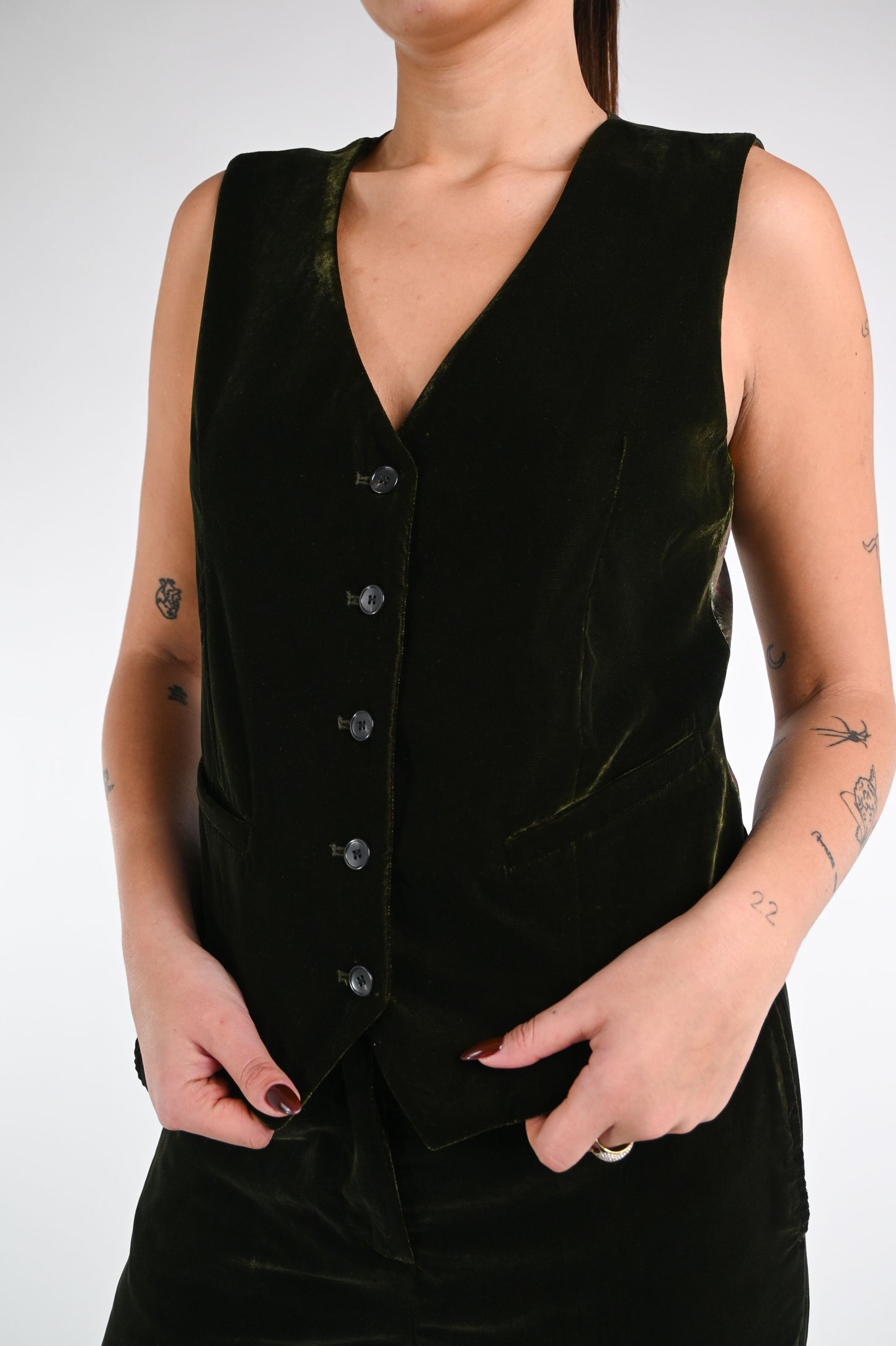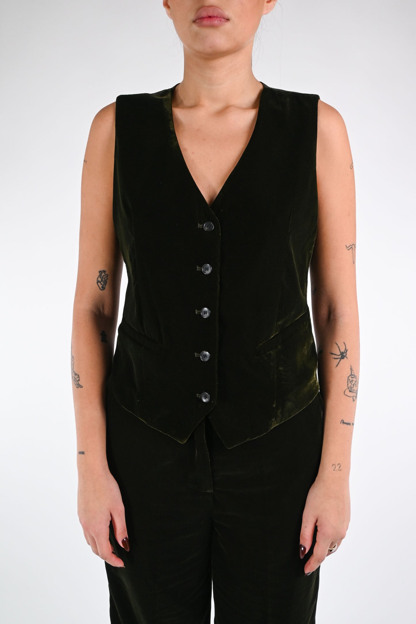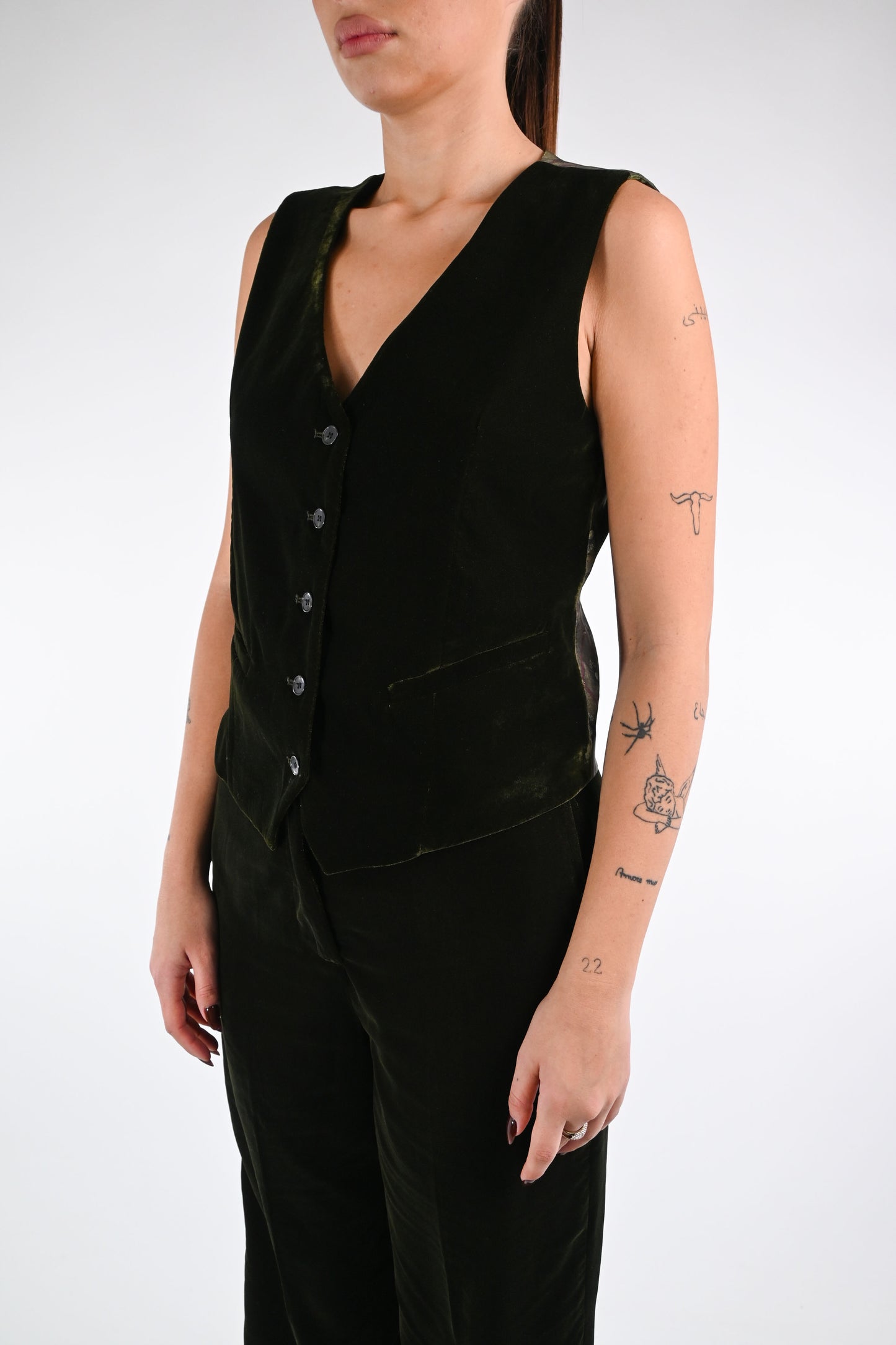 WU'SIDE - GILET VELLUTO LISCIO ART.25662 - VERDE