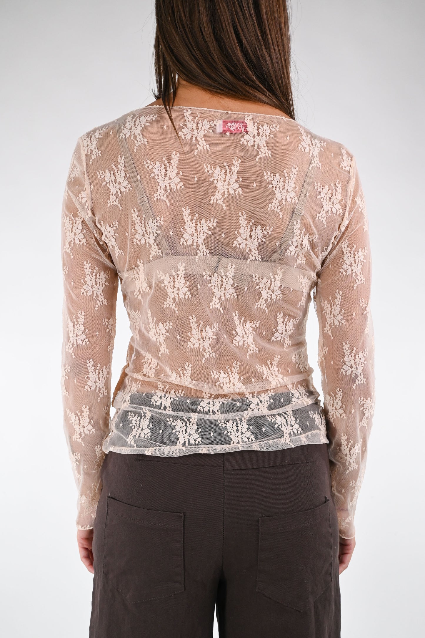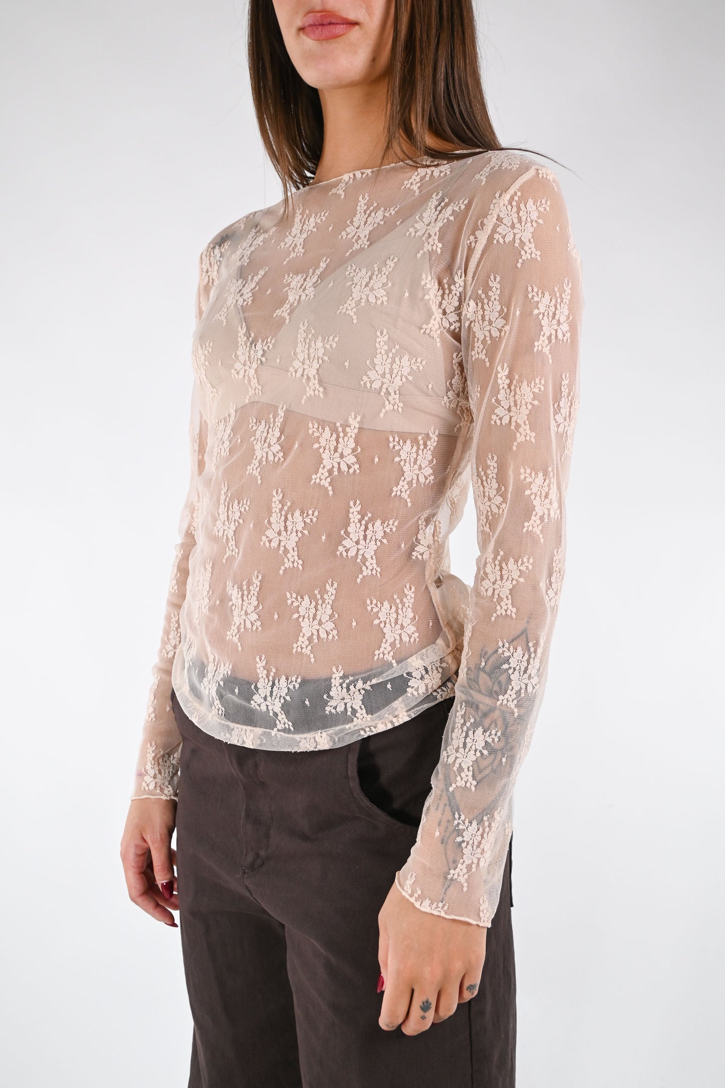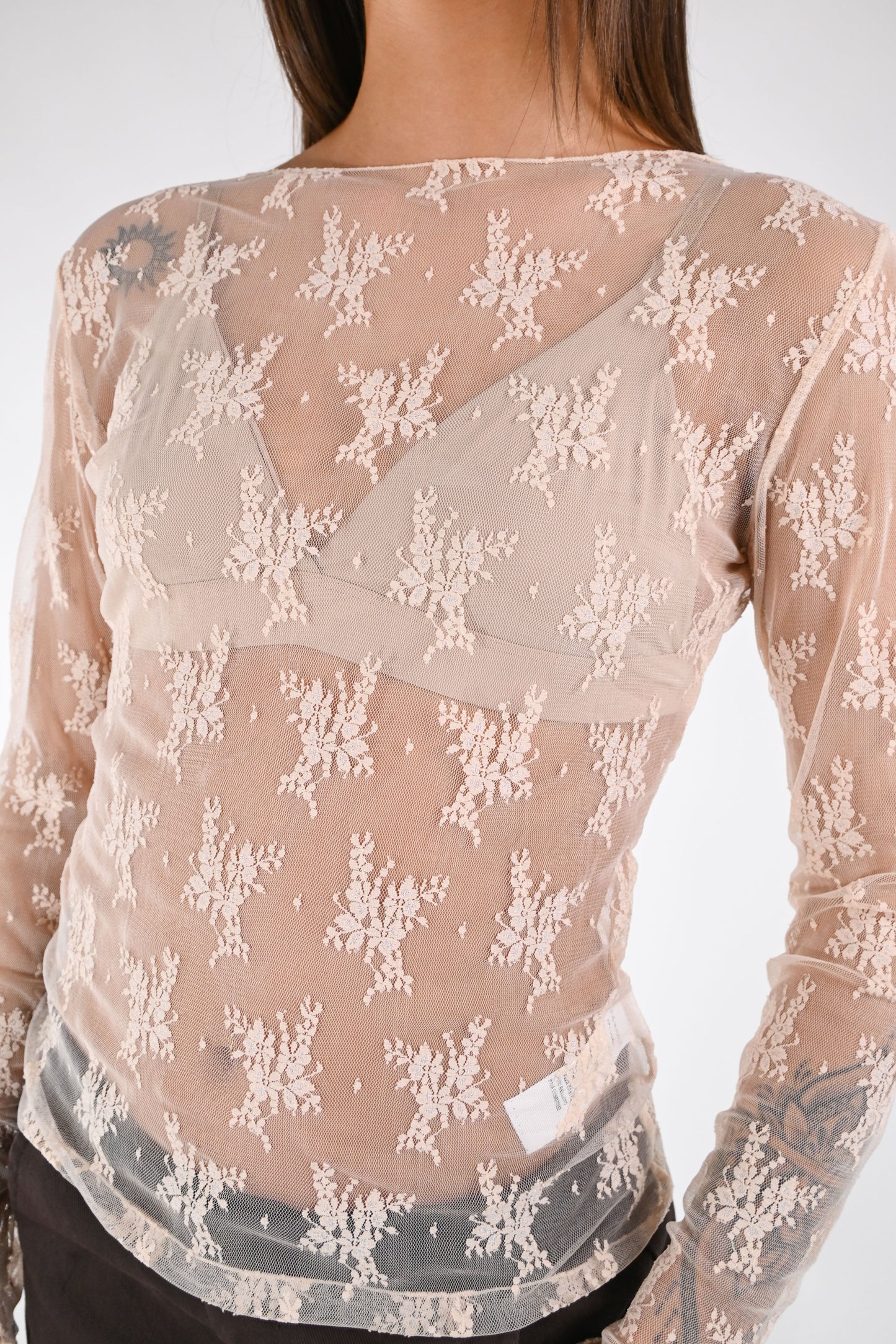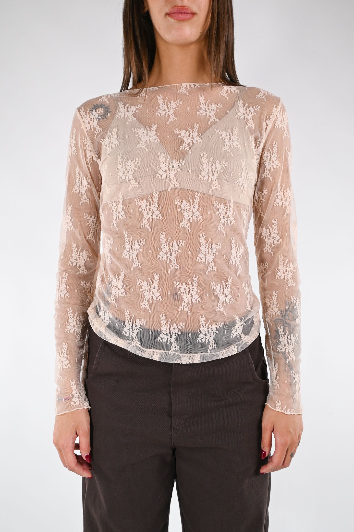 B LOVE - BLUSA SCOLLO BARCHETTA IN PIZZO ART.11645 - ROSA