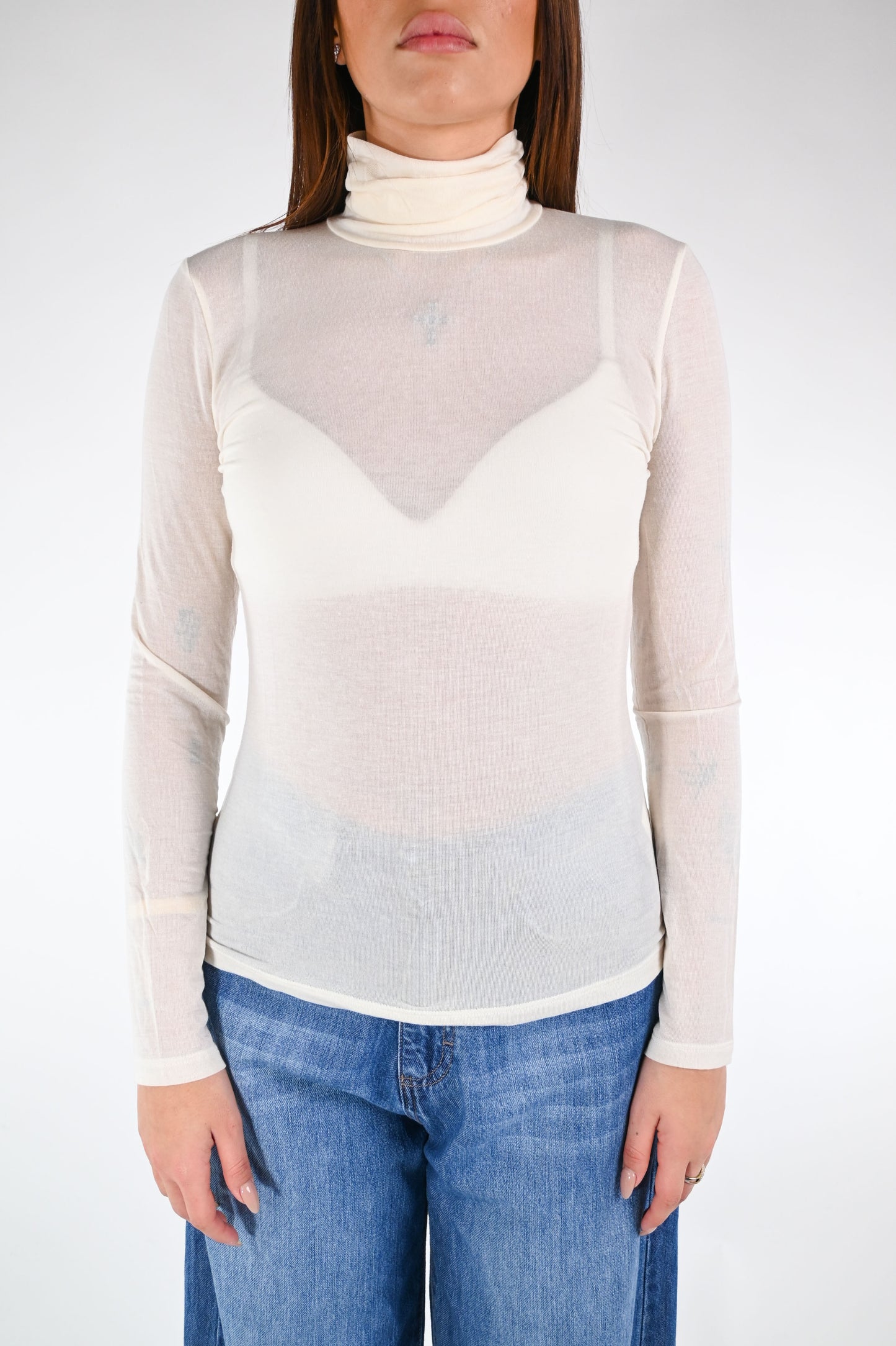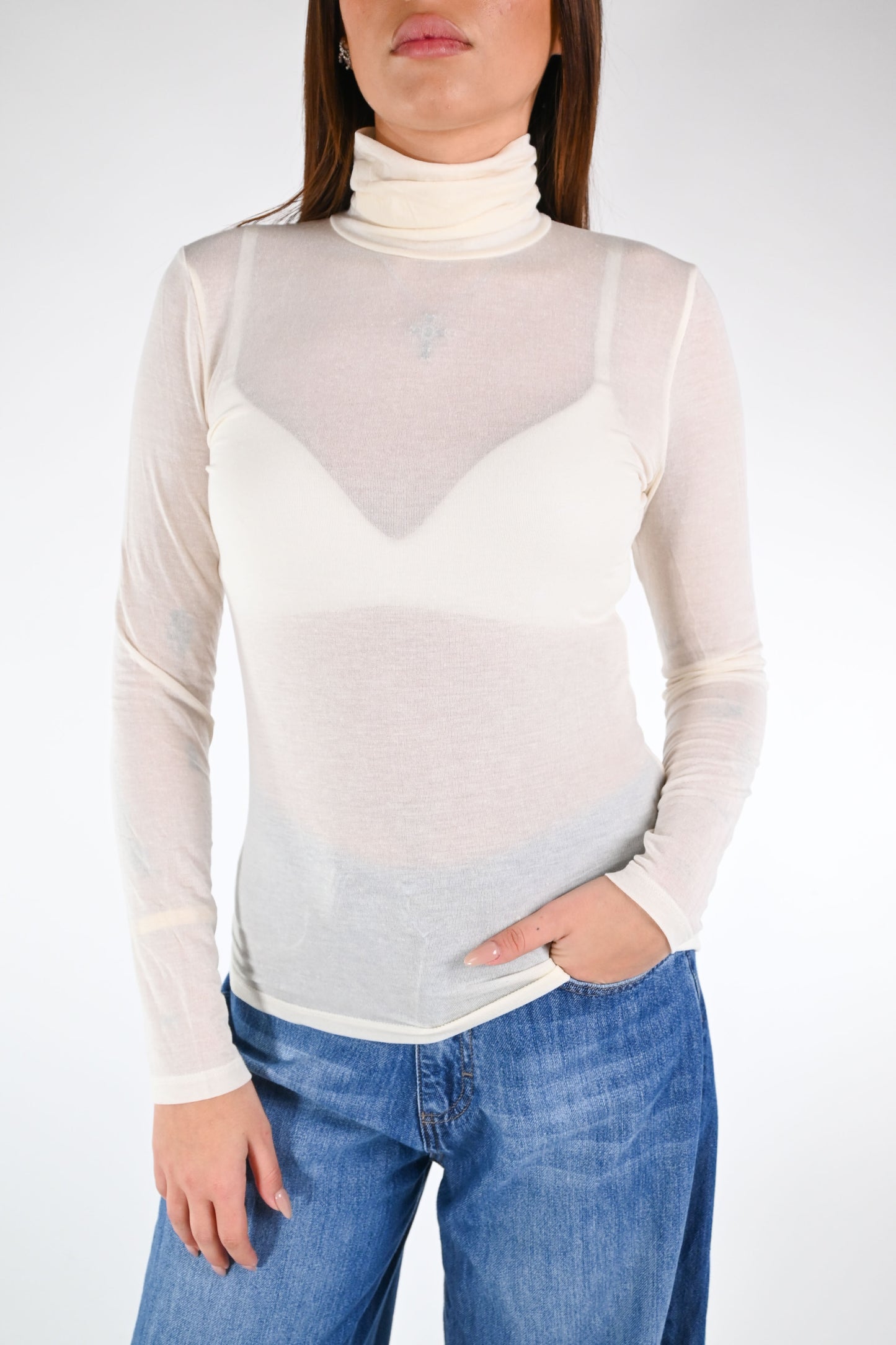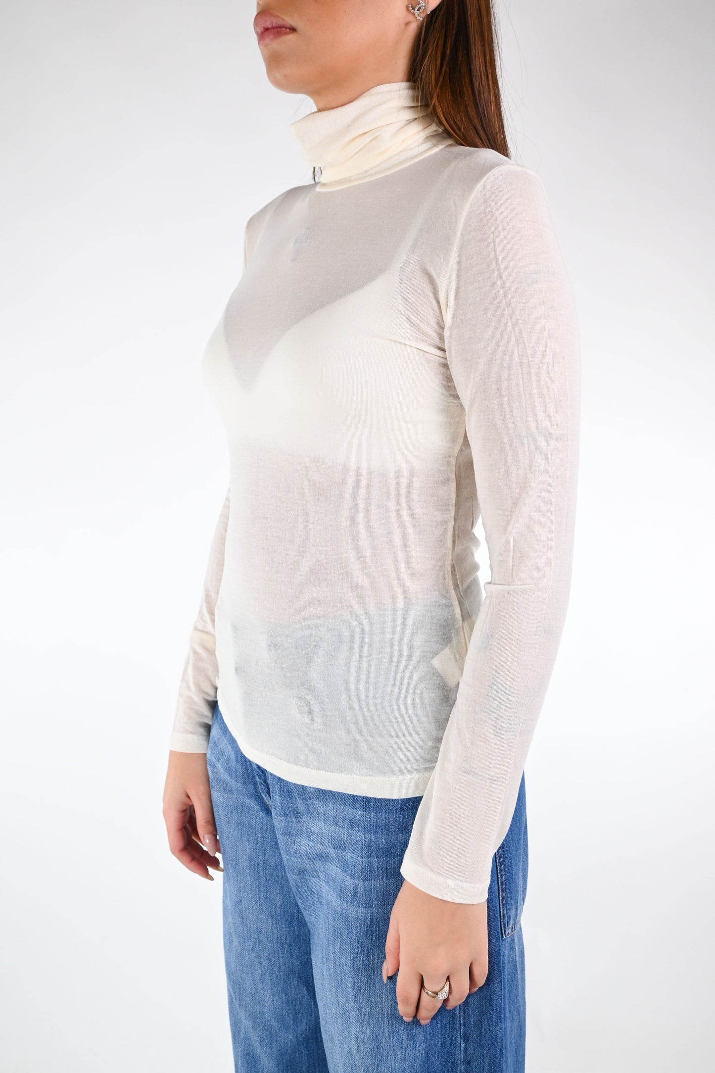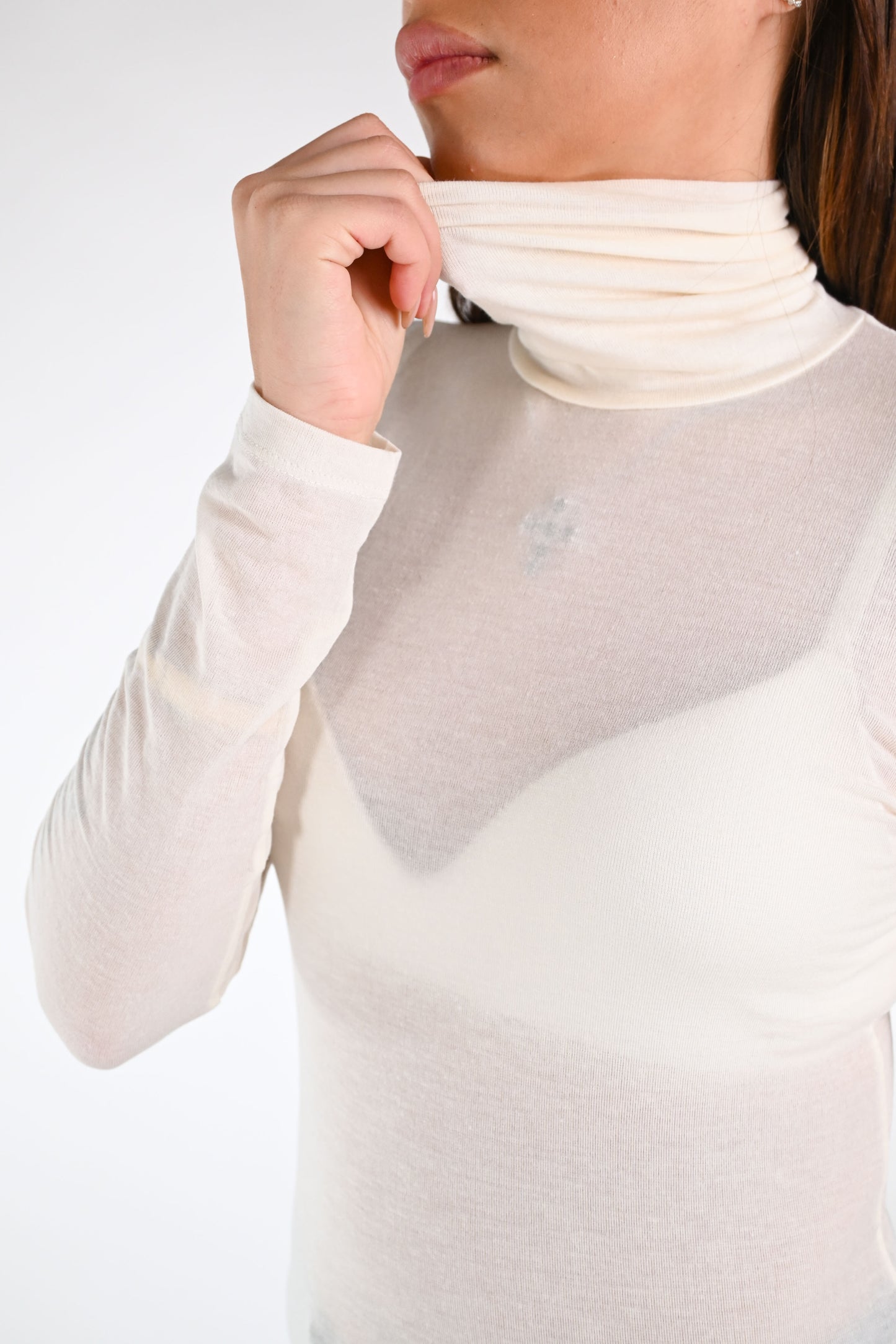 Dolcevita misto cachemire scollo barchetta, manica lunga, colore panna
