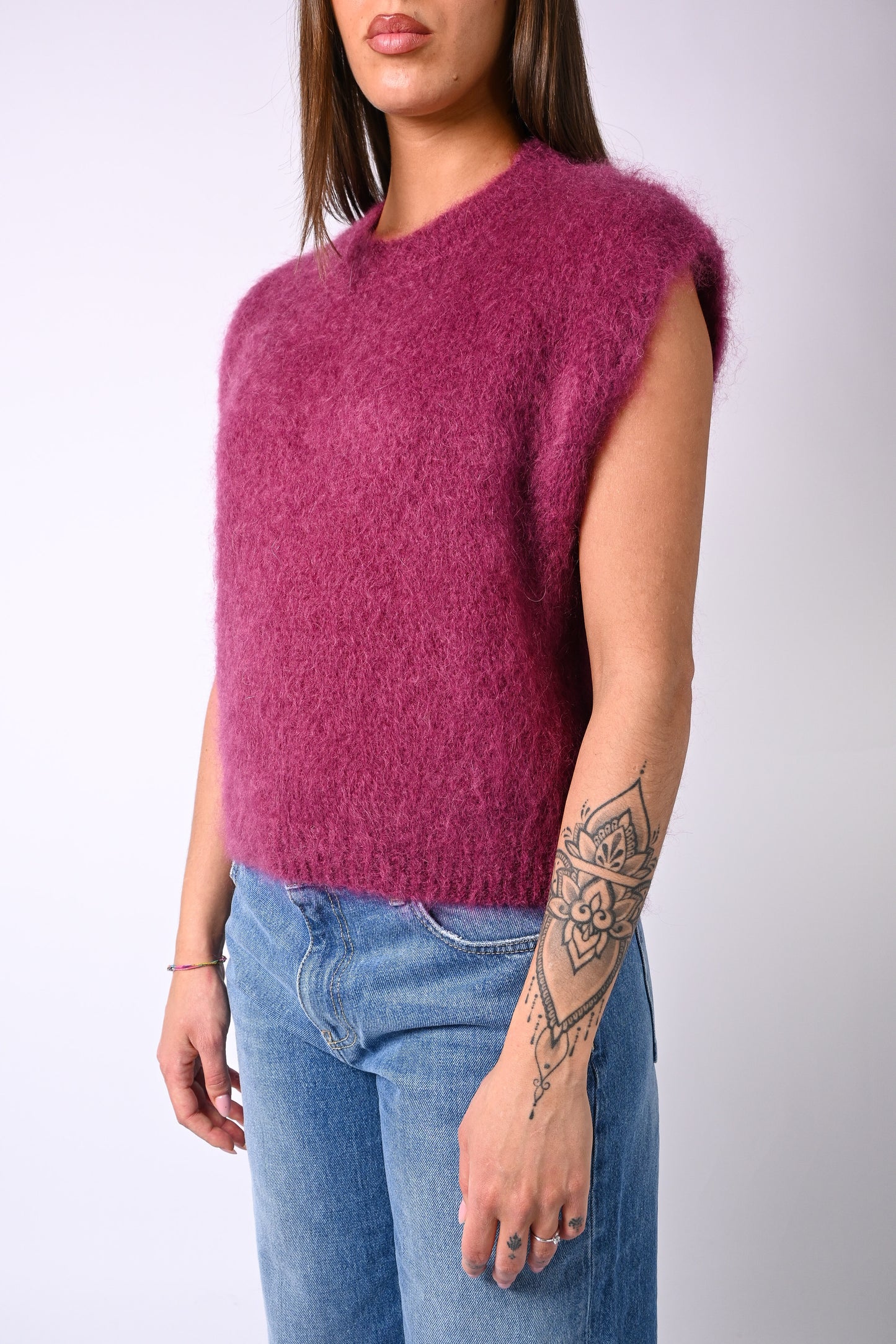Prezzo normale €34,95Gilet over modello Chanel in kid mohair, a scatola, girocollo, color ciclamino