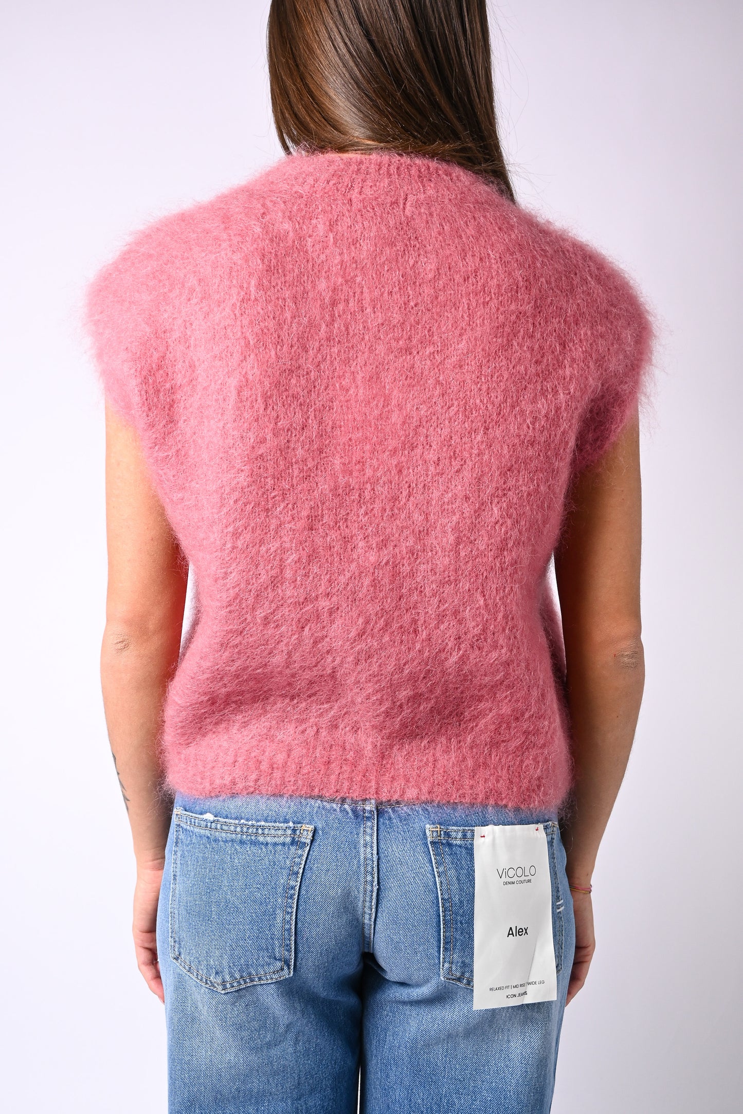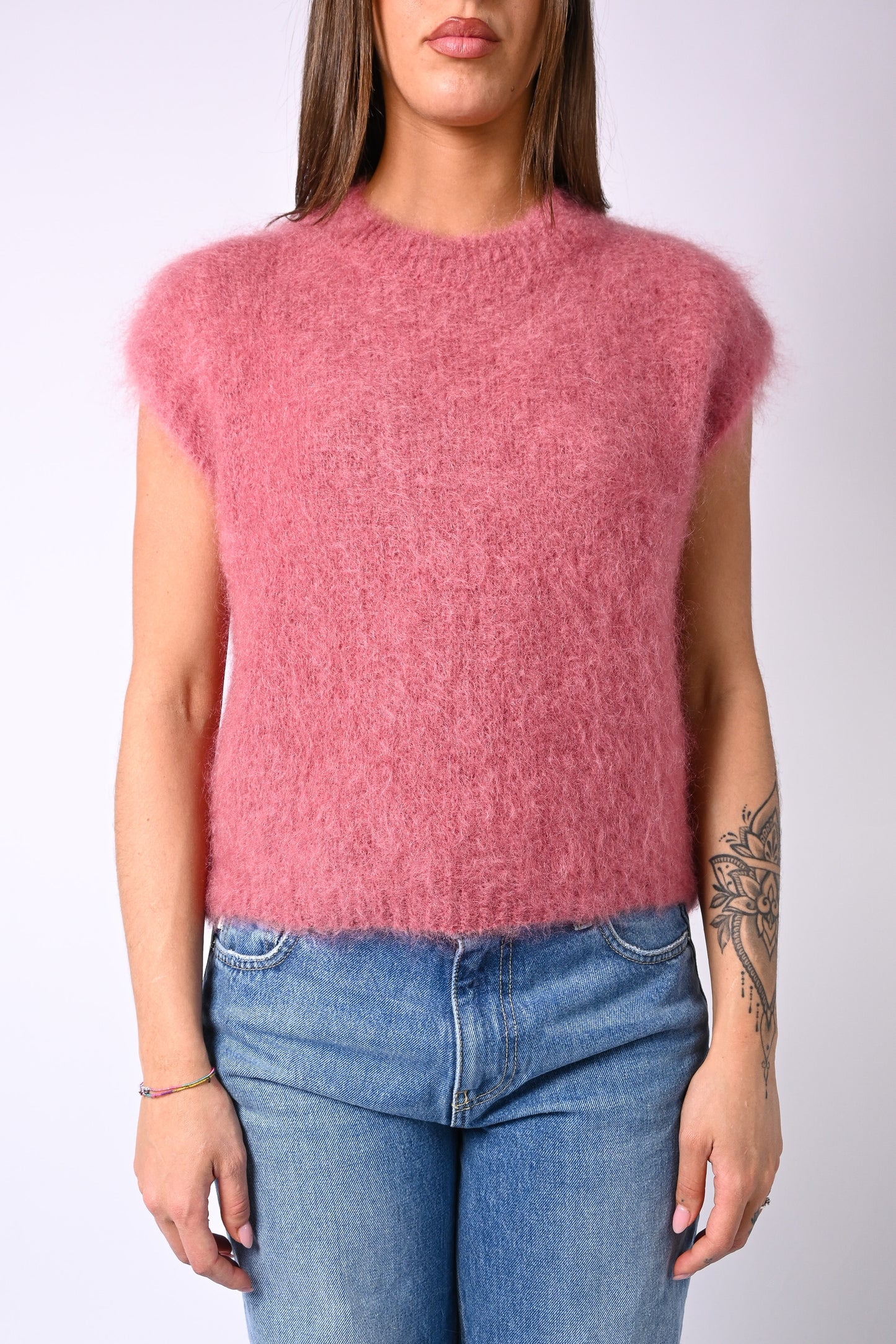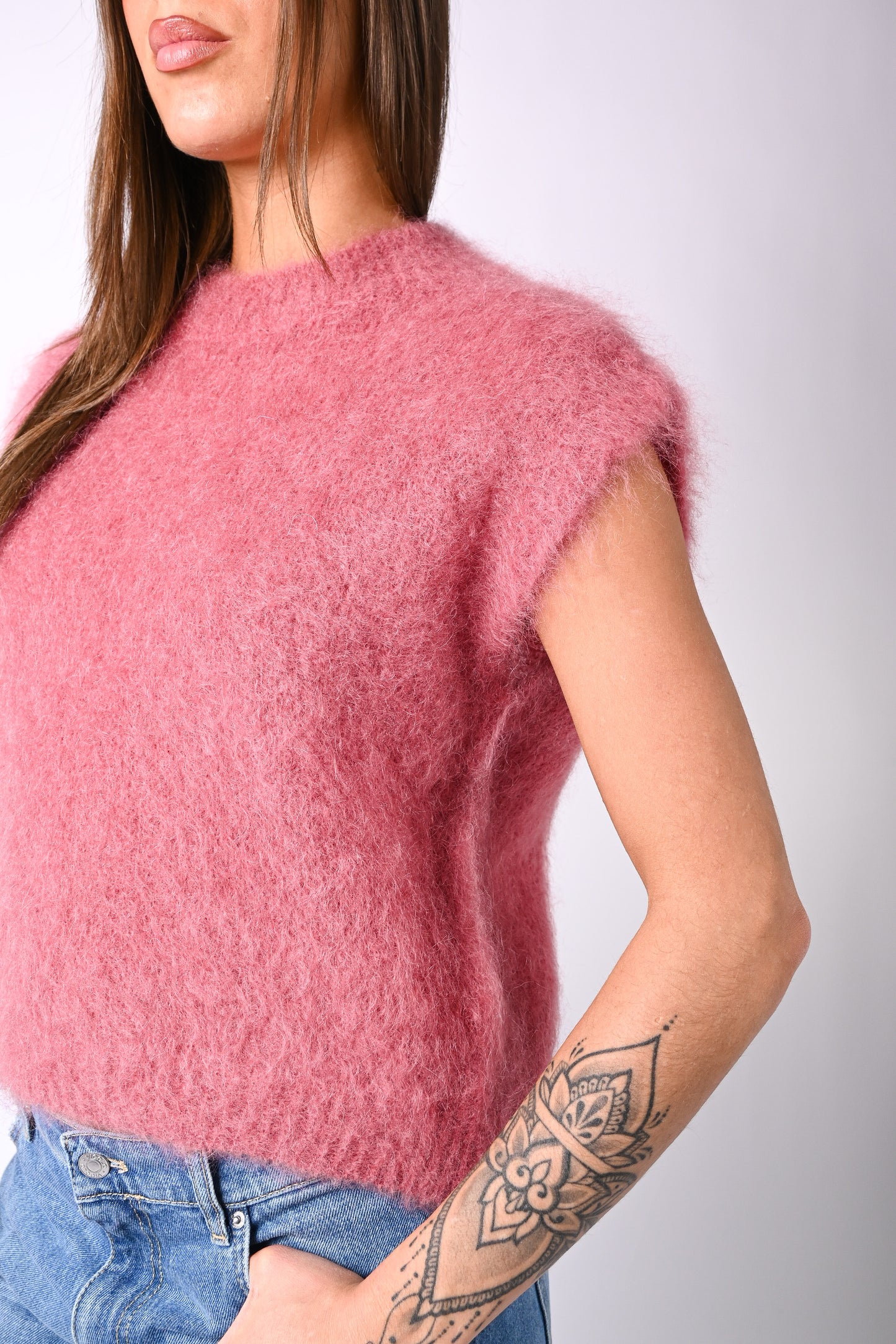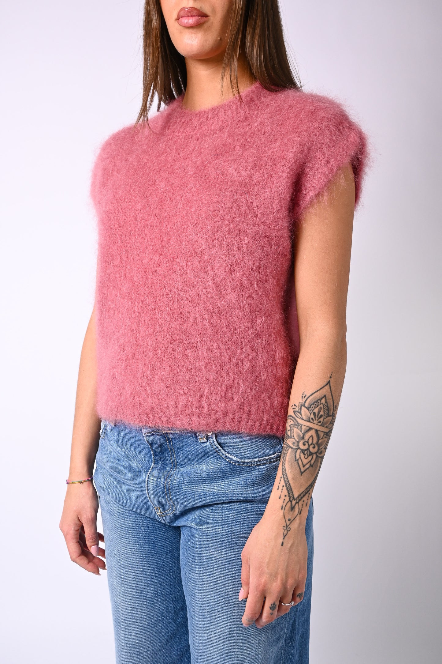 Prezzo normale €34,95Gilet over modello Chanel in kid mohair, a scatola, girocollo, color phard