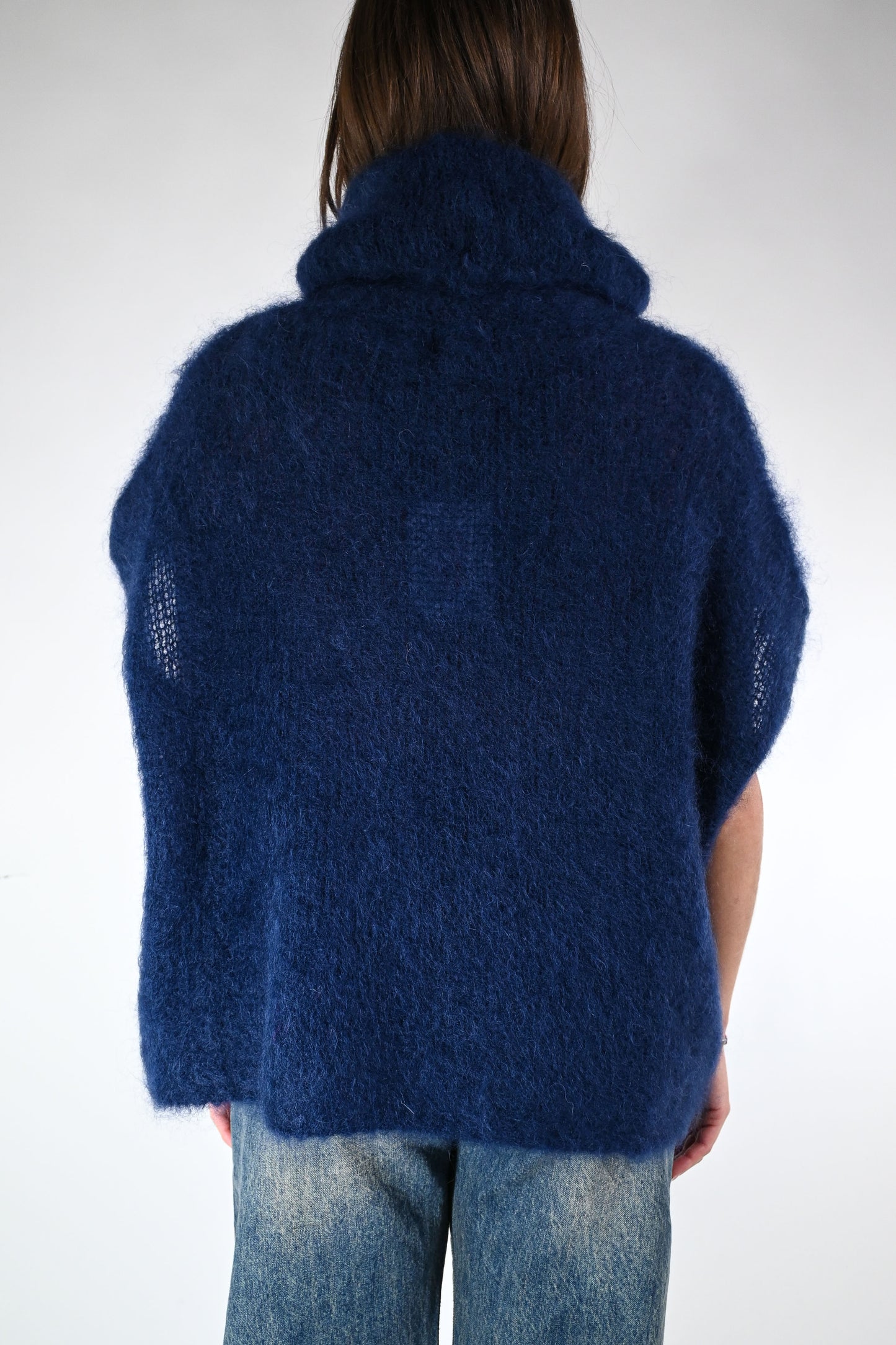 Gilet over con collo ciambella in kid mohair, colore Blu