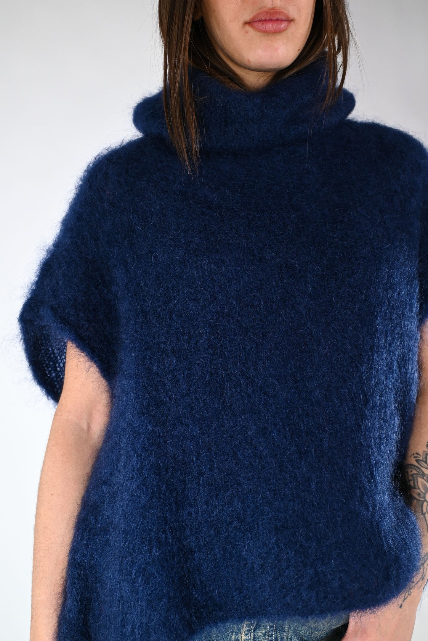 B LOVE - GILET OVER CIAMBELLA IN KID MOHAIR ART.28001 - BLU