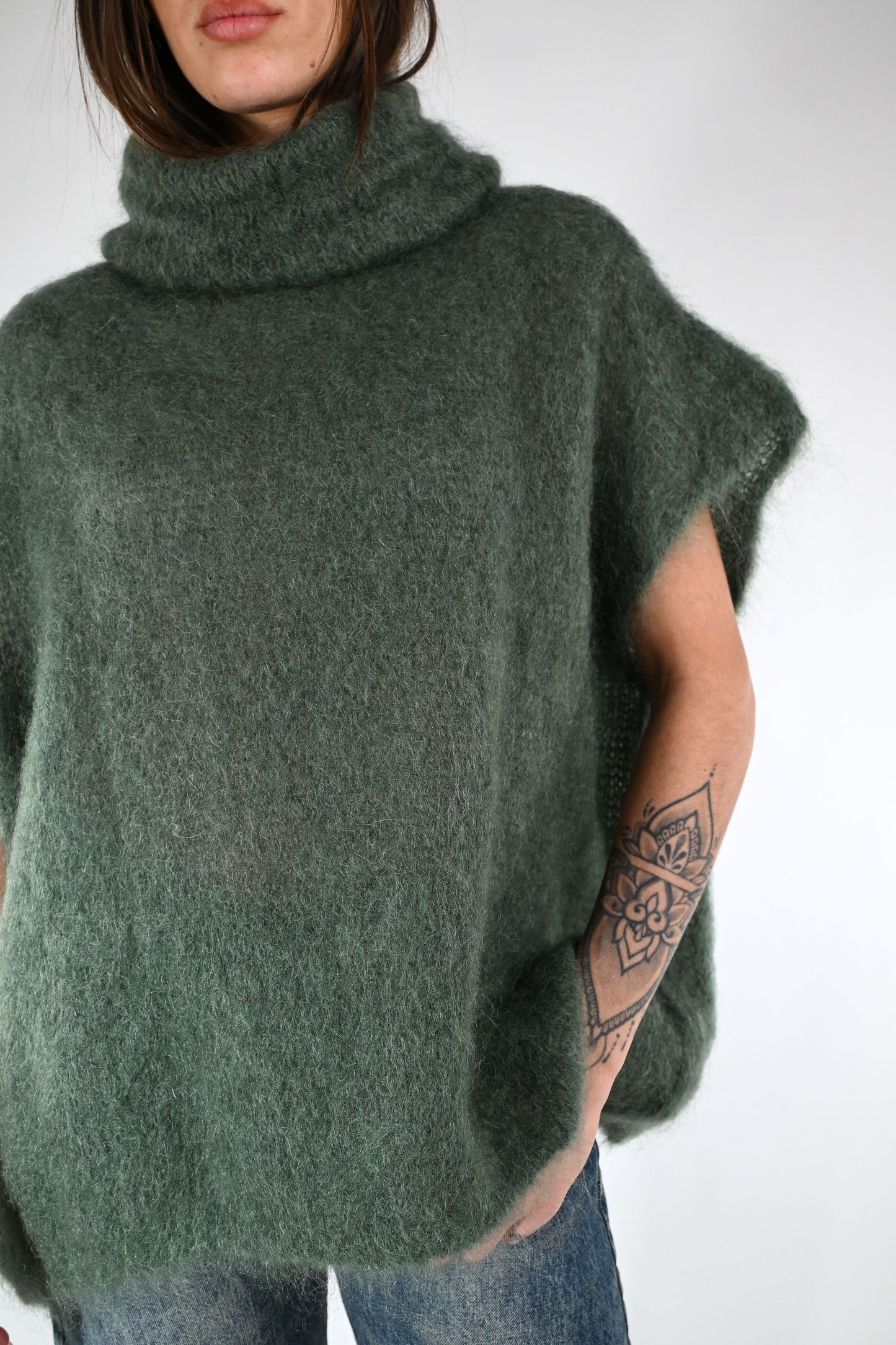 B LOVE - GILET OVER CIAMBELLA IN KID MOHAIR ART.28001 - MILITARE