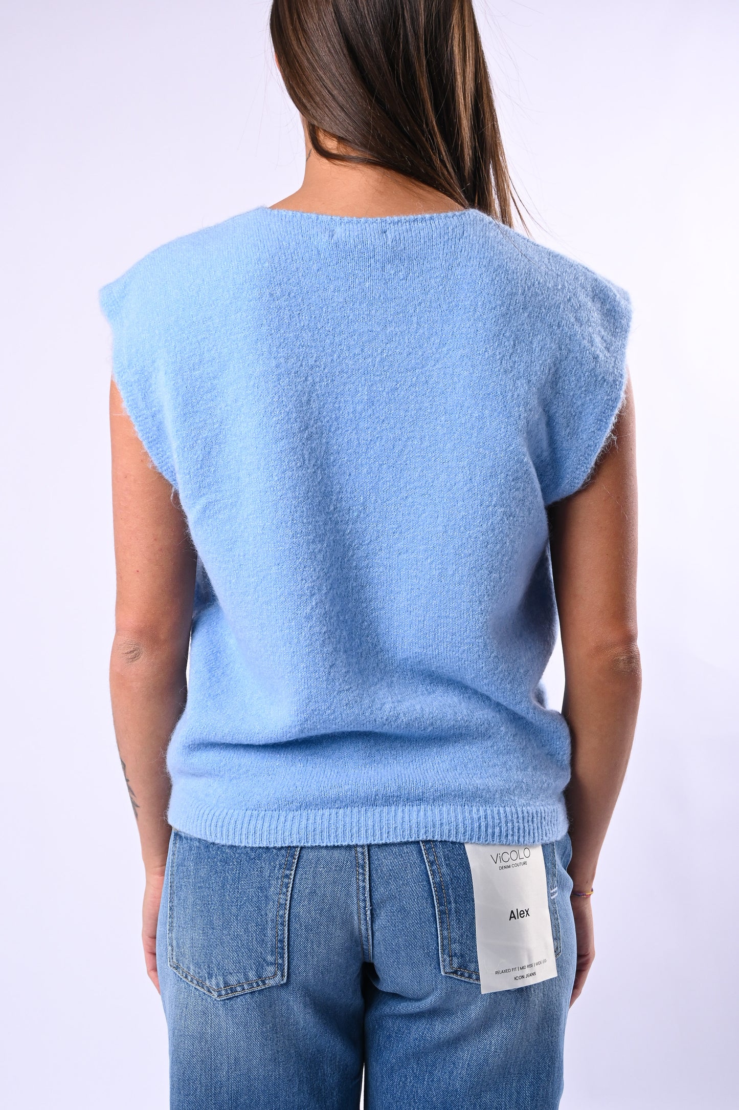 Prezzo normale €24,95Gilet over modello Spring scollo V, in soffice baby alpaca, colore celeste