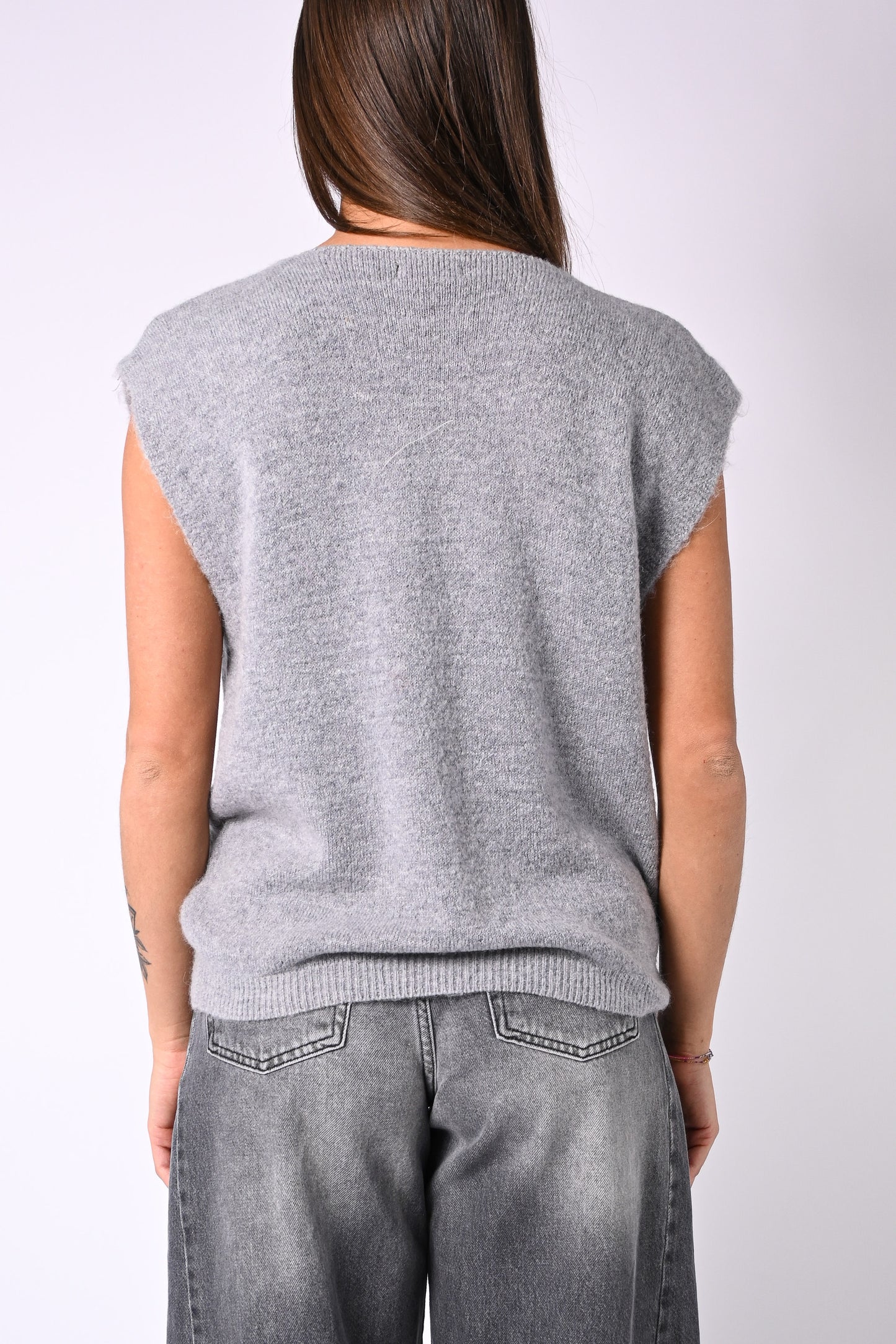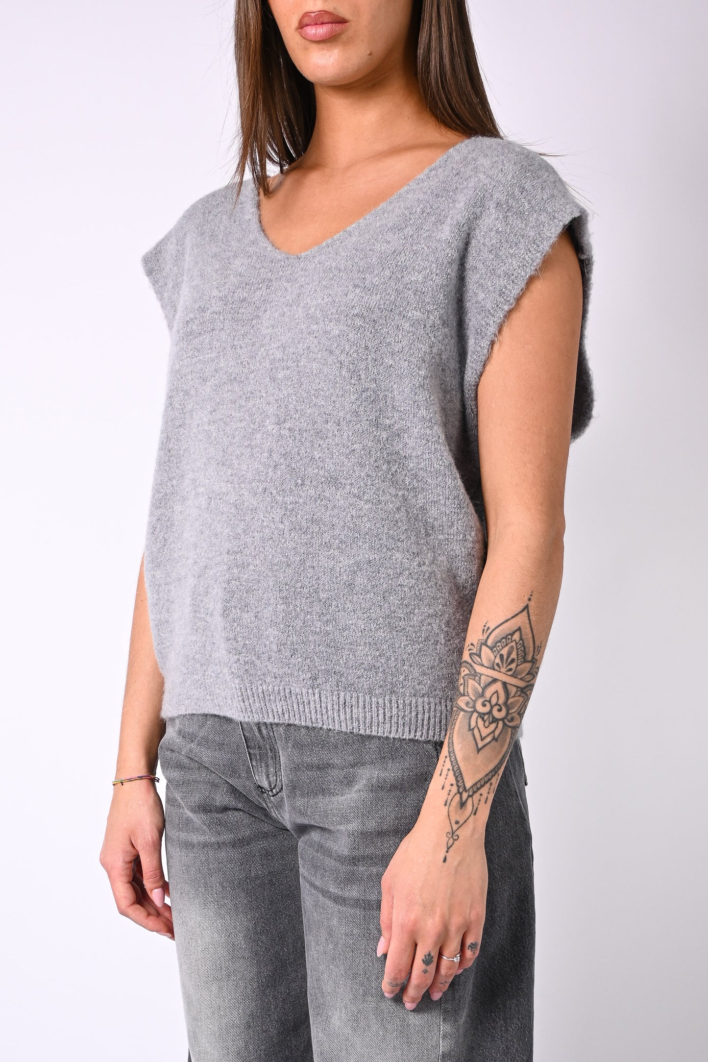 Prezzo normale €24,95Gilet over modello Spring scollo V, in soffice baby alpaca, colore grigio