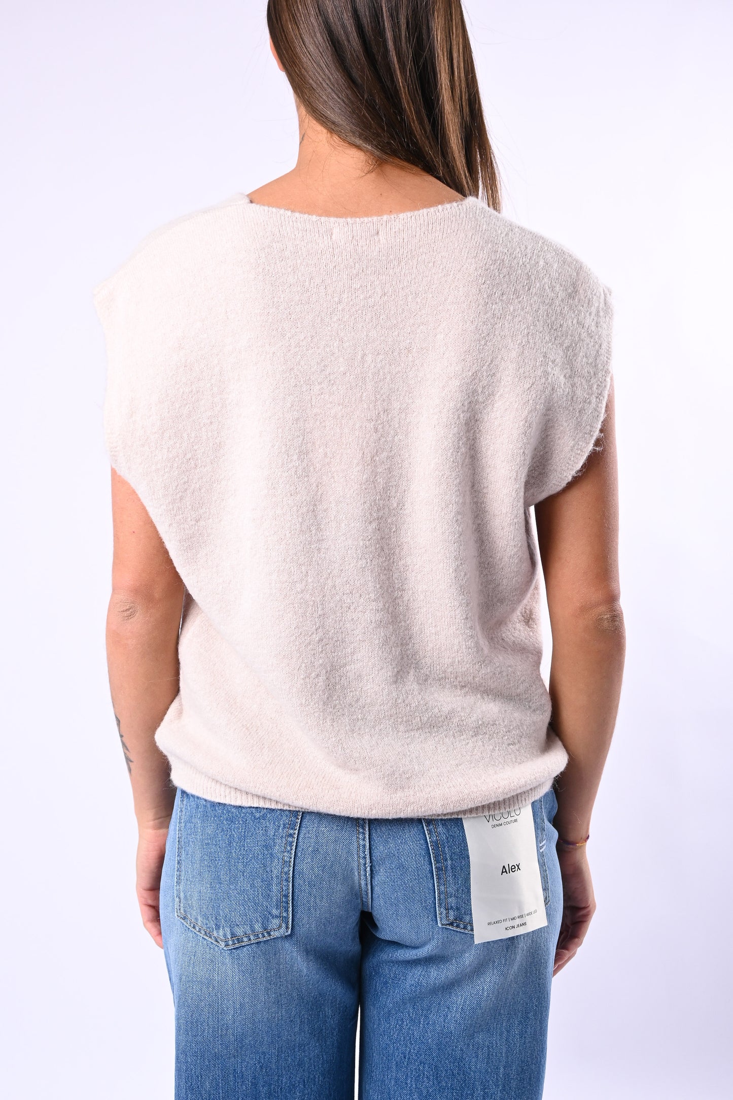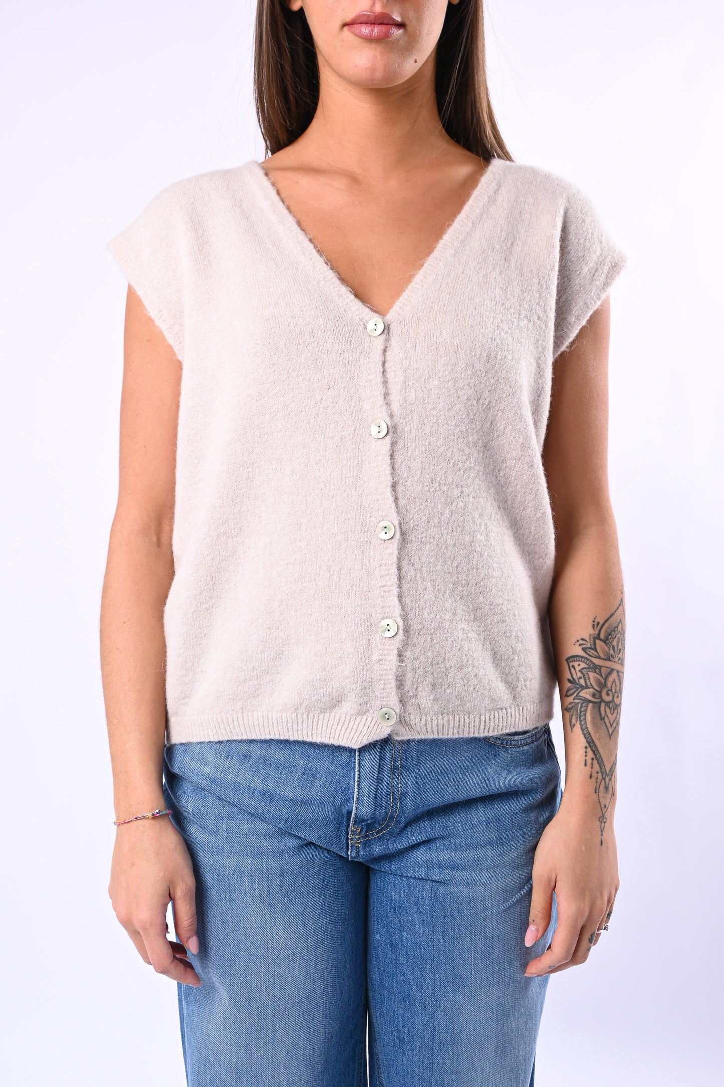 Prezzo normale €29,95Gilet over modello Sun con bottoni madreperla, in soffice baby alpaca, colore beige
