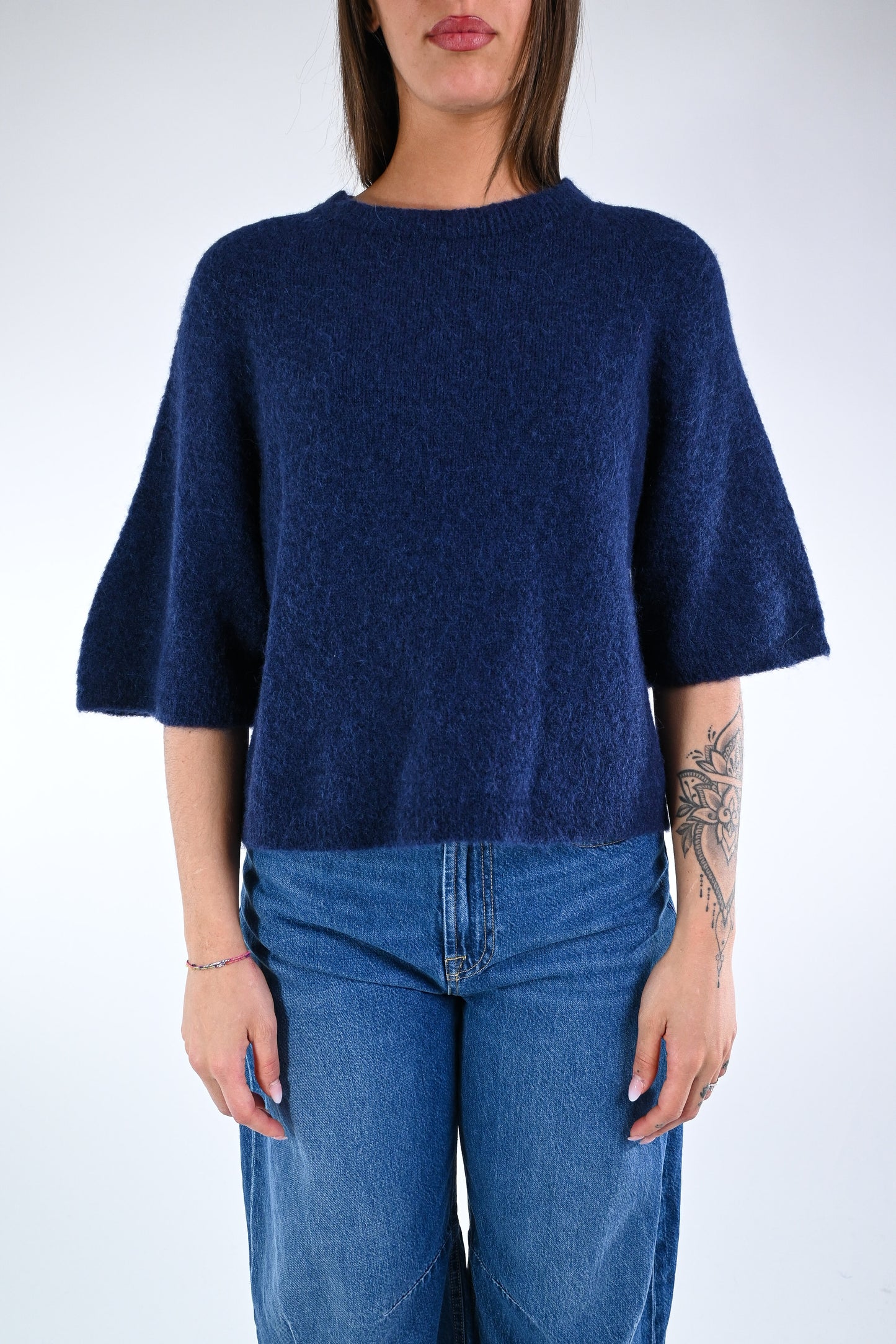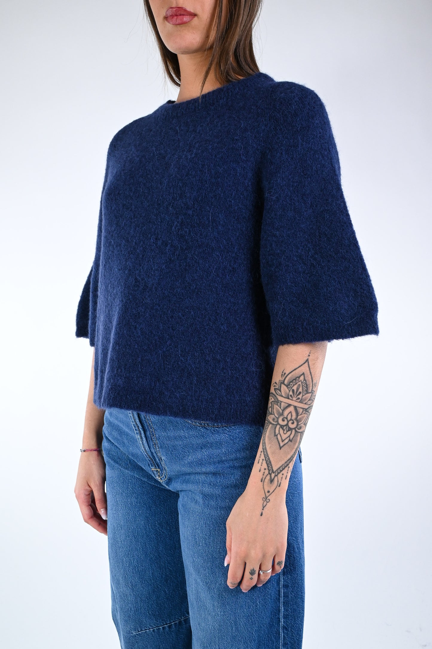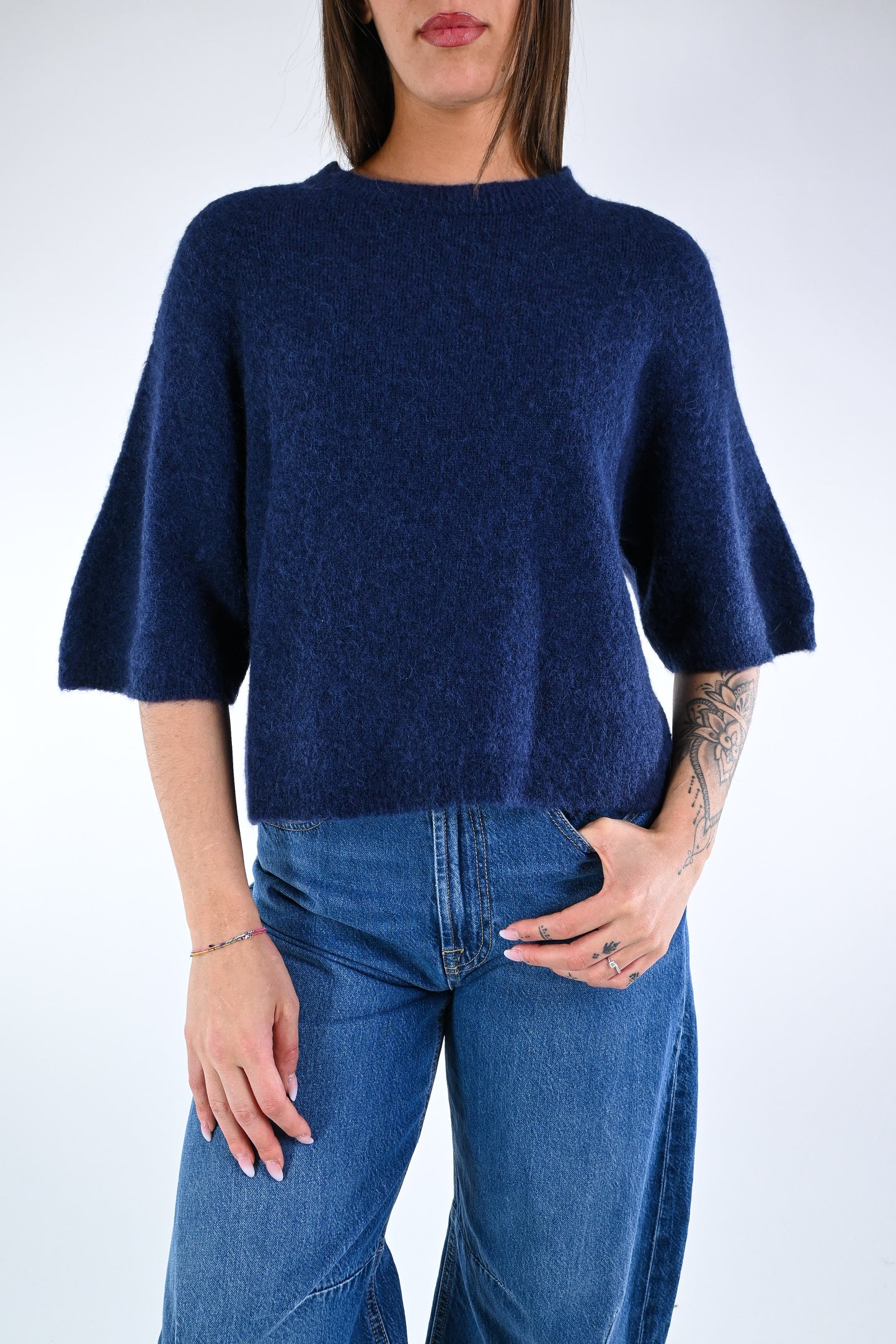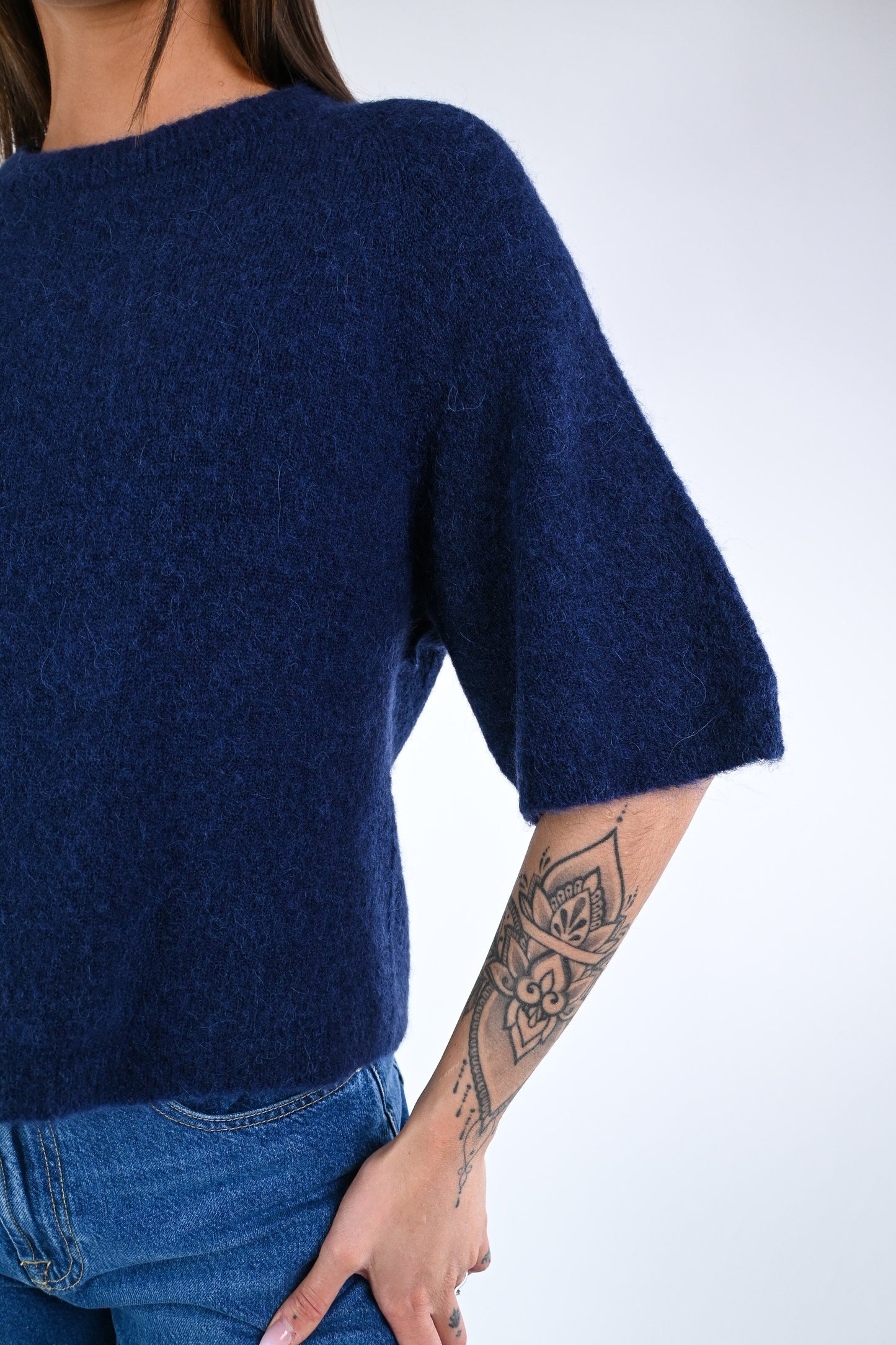 Prezzo normale €24,95Maglia over baby alpaca, manica ampia 3/4, girocollo, colore Blu.