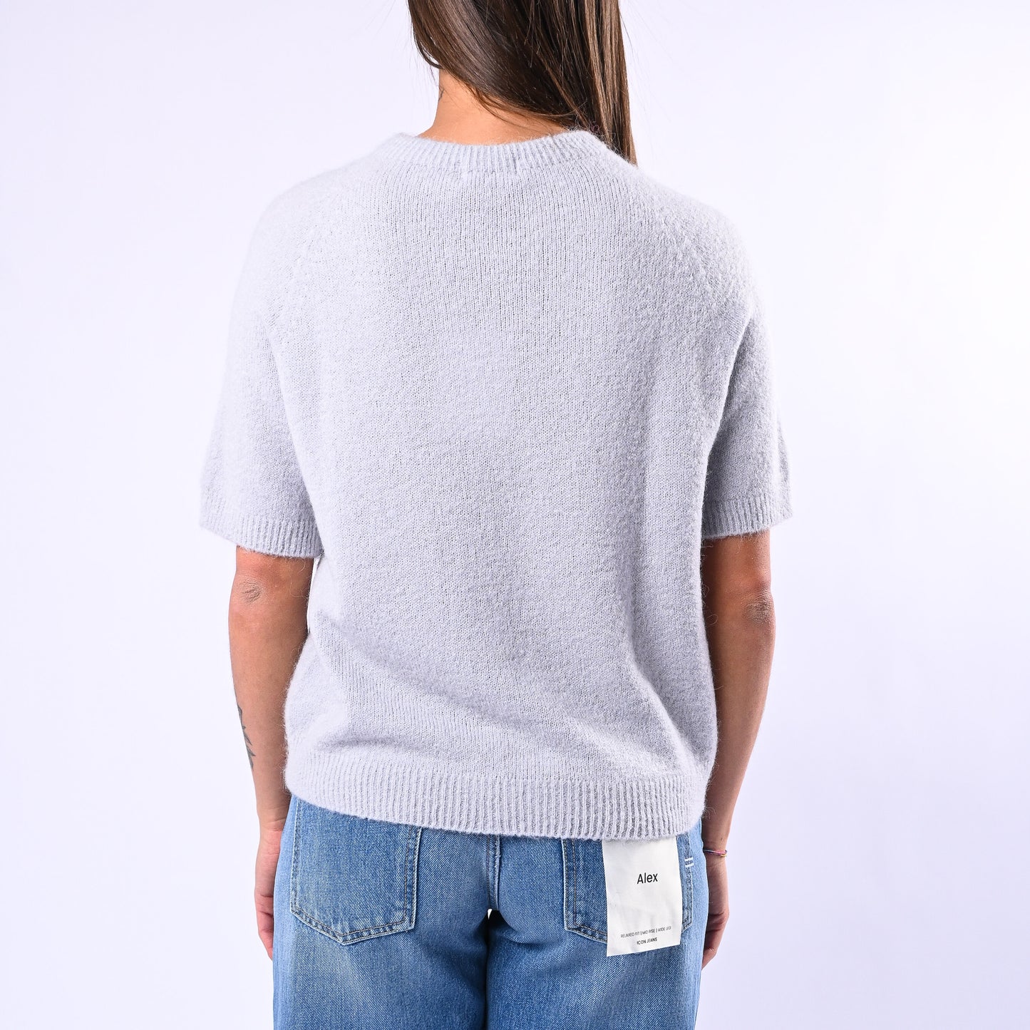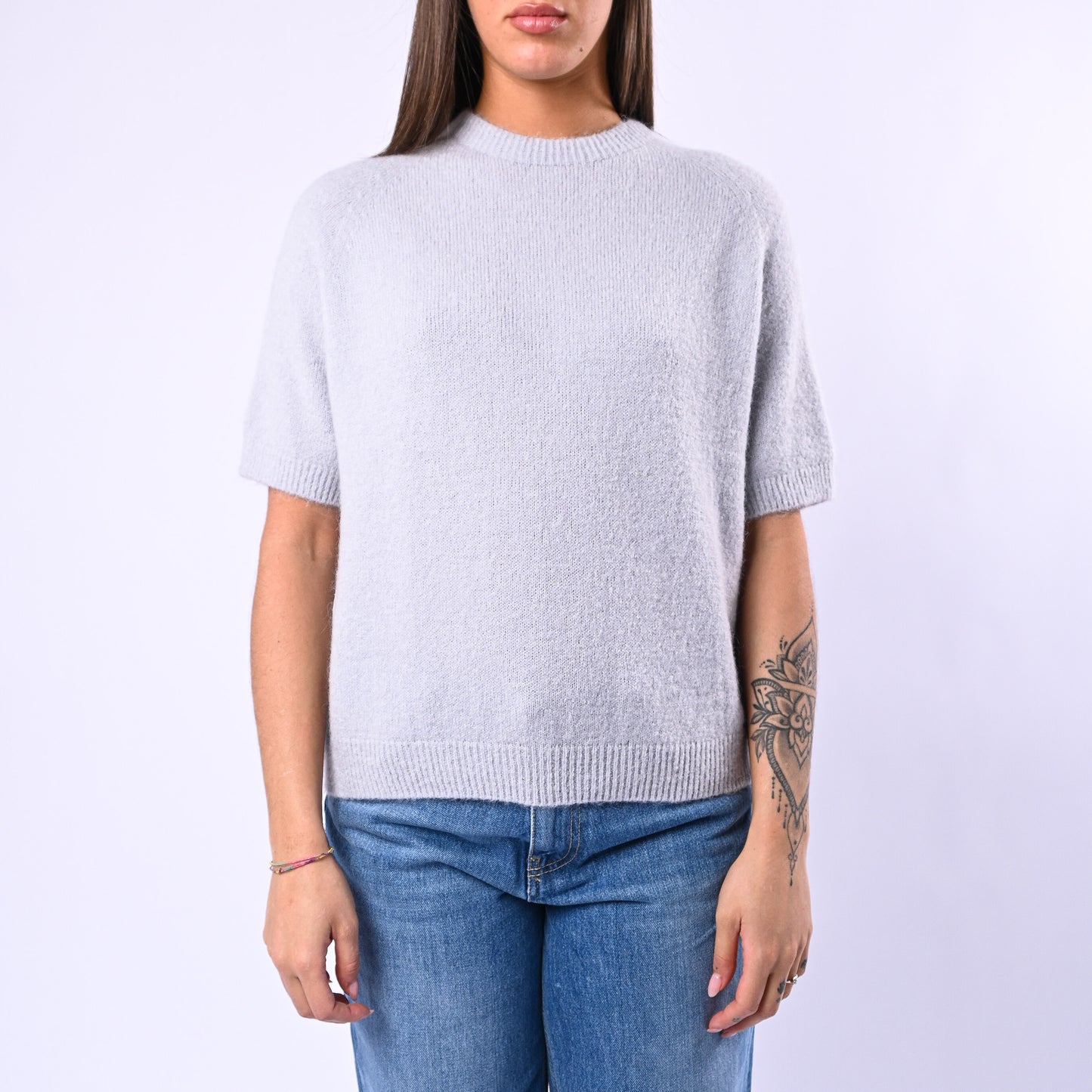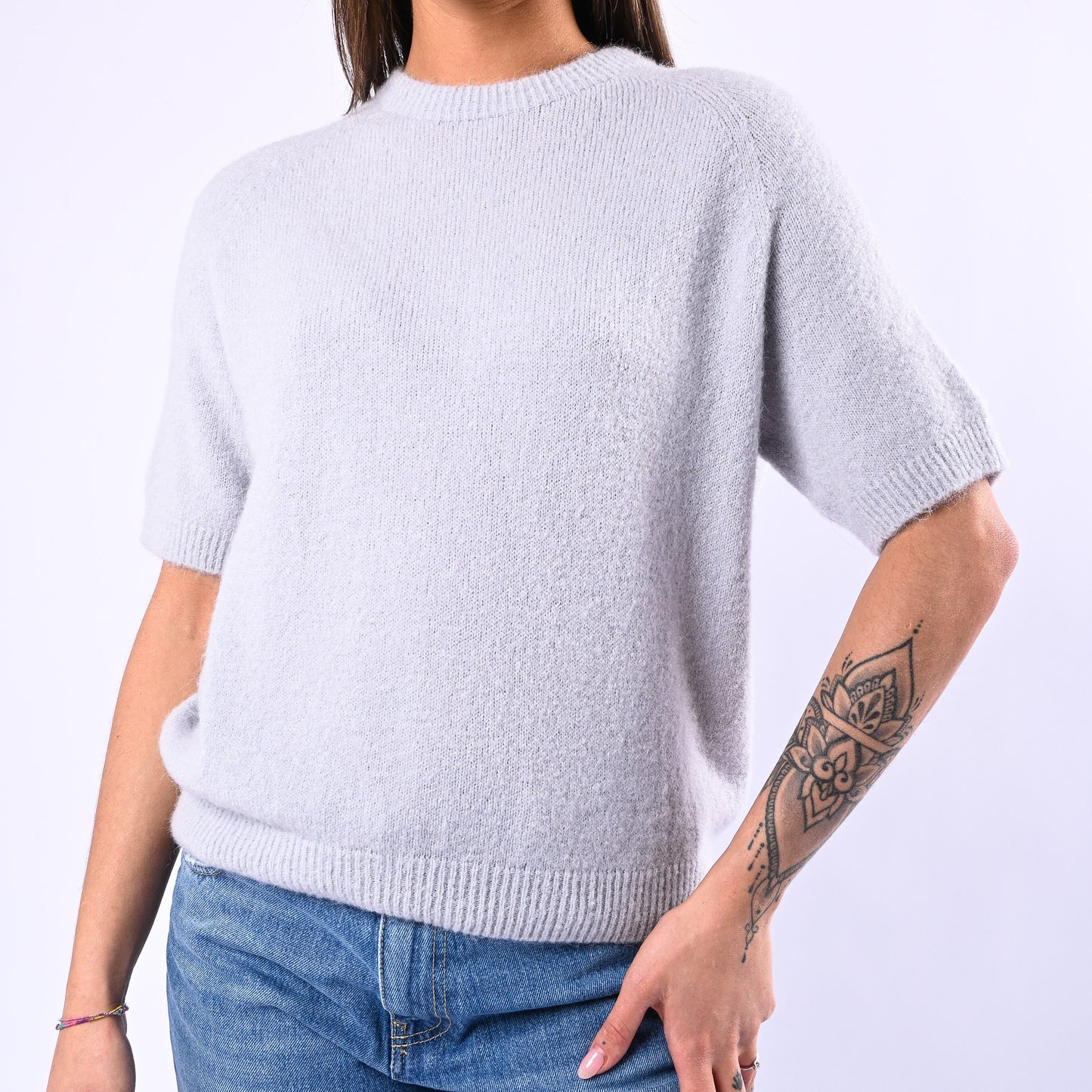 Prezzo normale €22,50Maglia girocollo baby alpaca, manica corta, colore Perla
