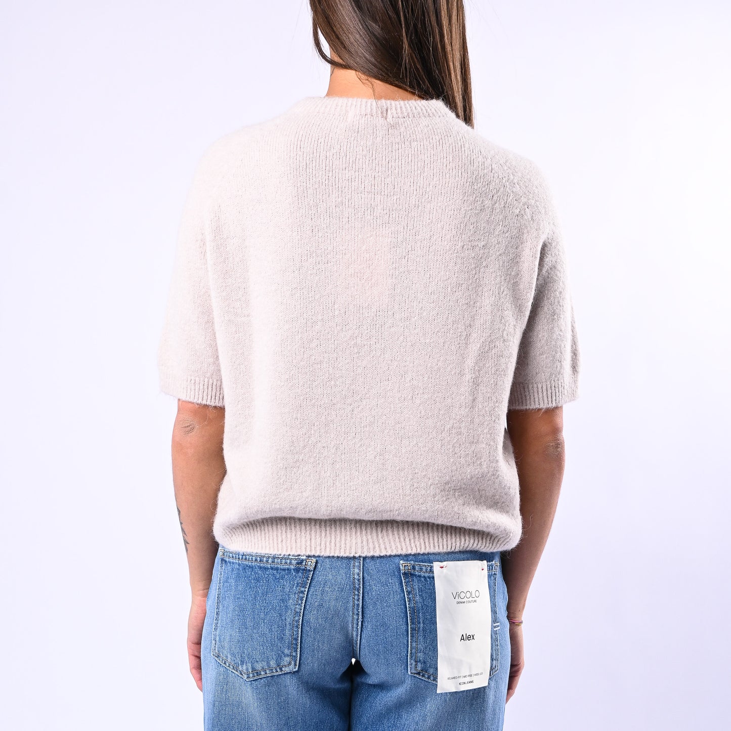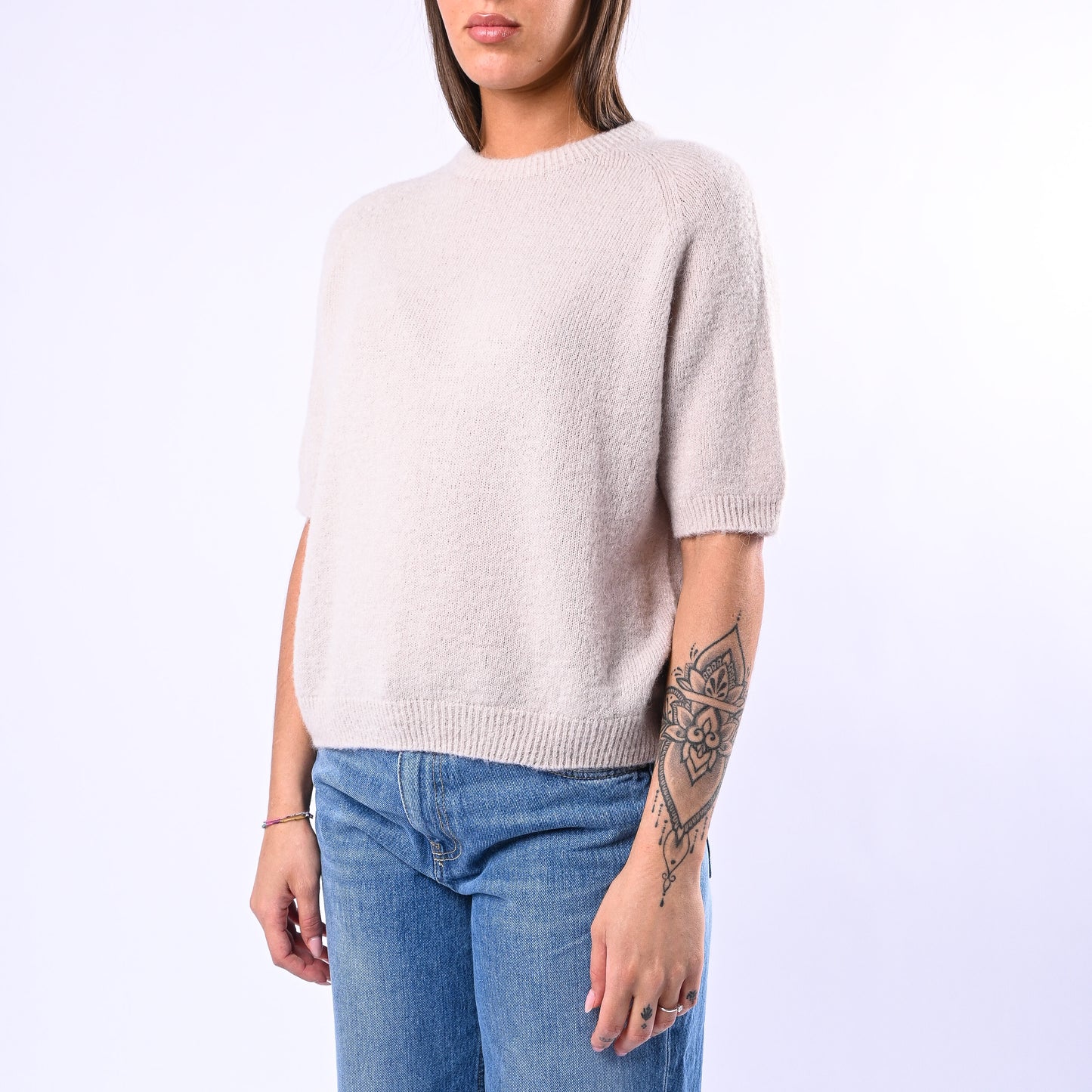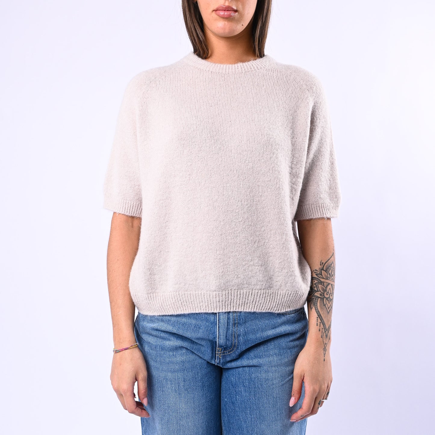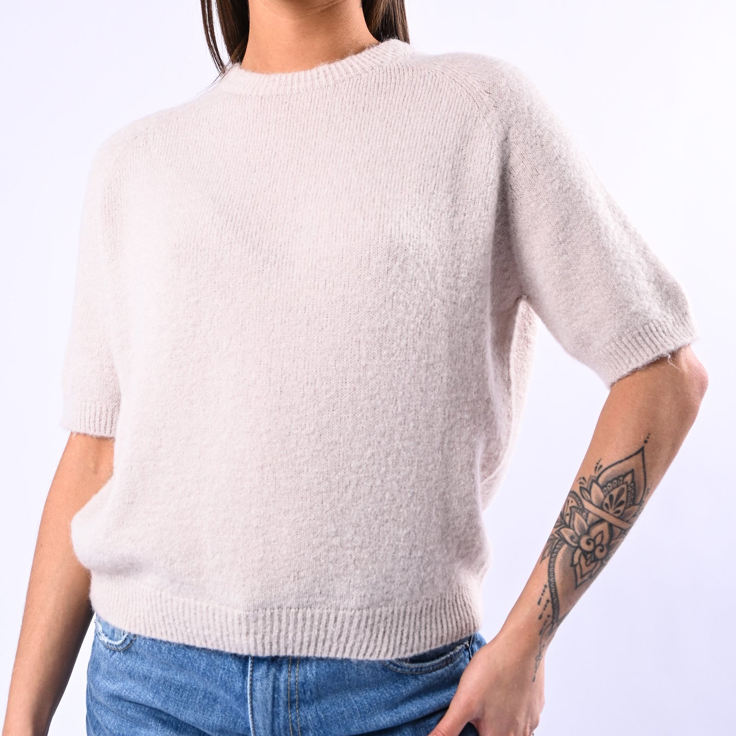 Prezzo normale €22,50Maglia girocollo baby alpaca, manica corta, colore Sabbia