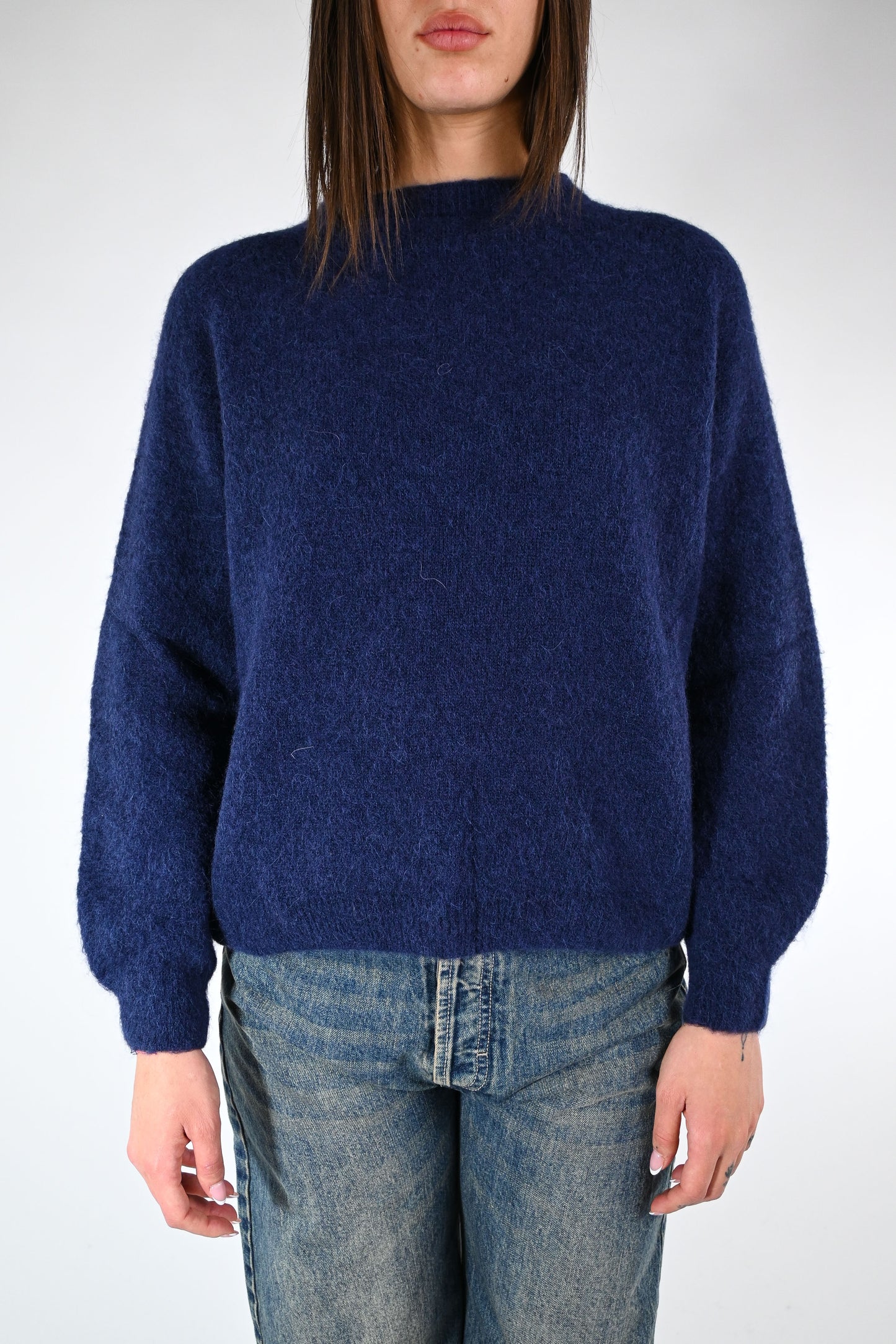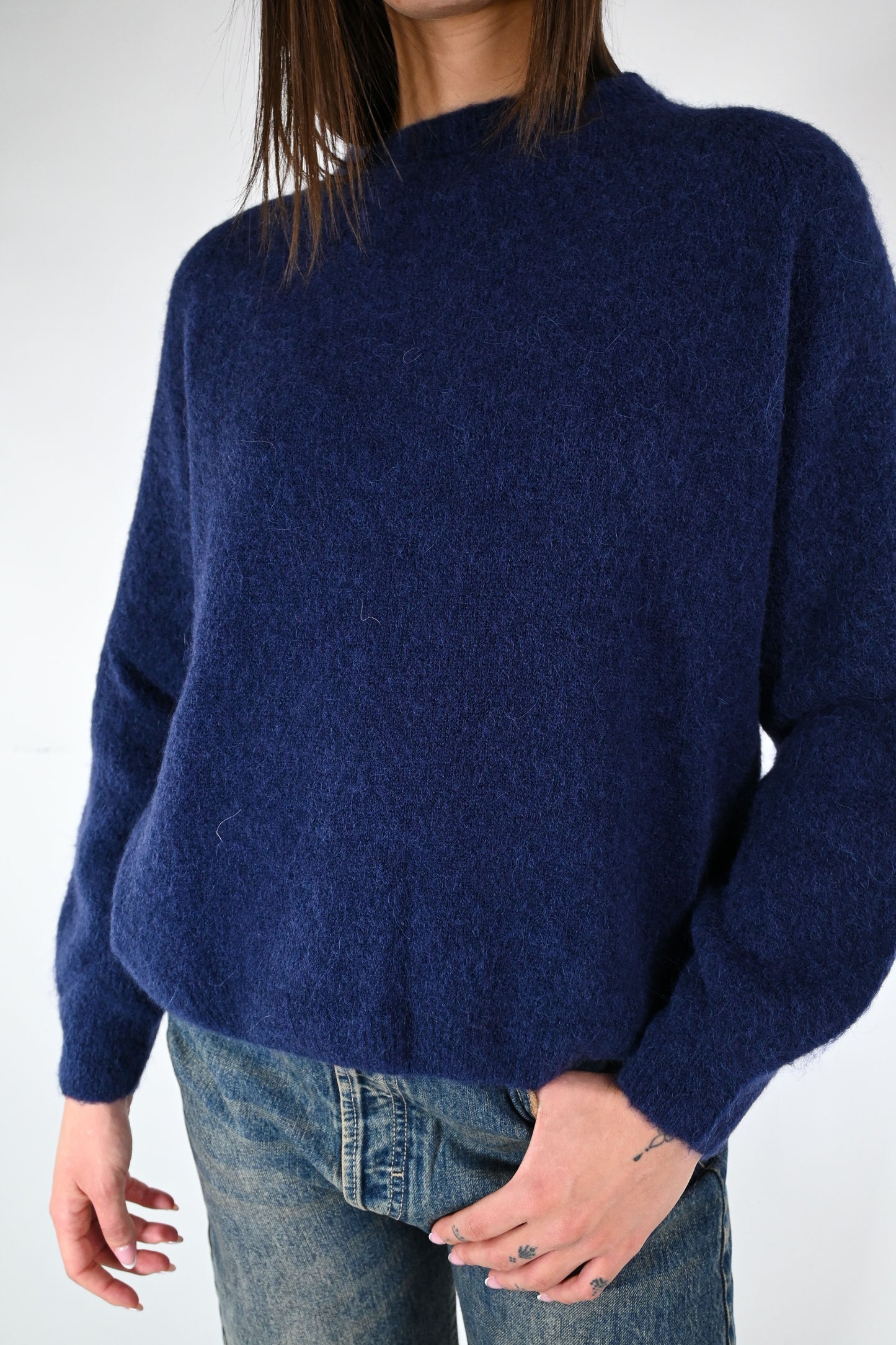 Maglia girocollo baby alpaca, manica lunga, colore Blu