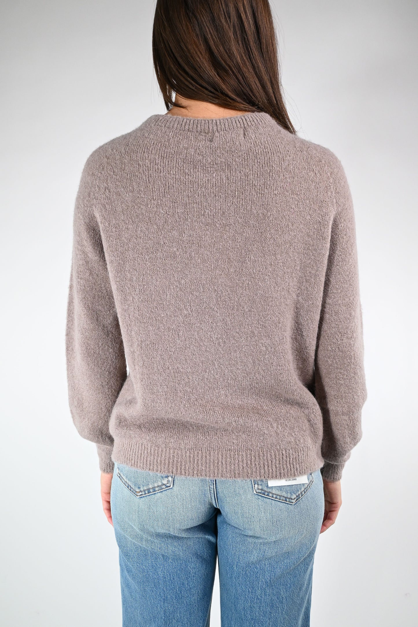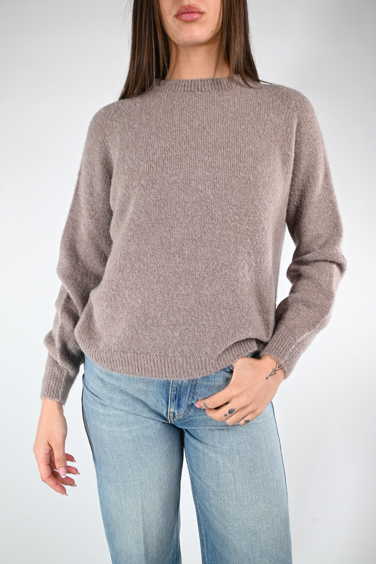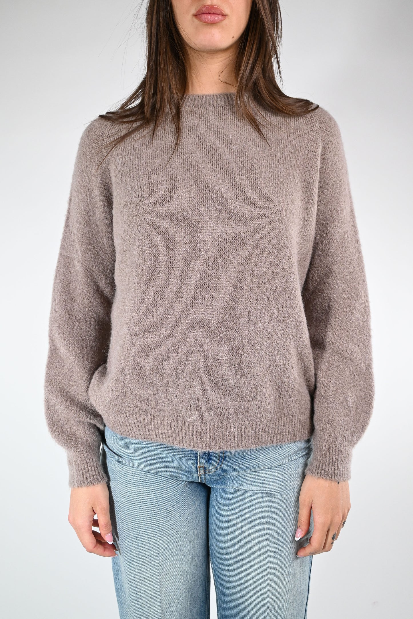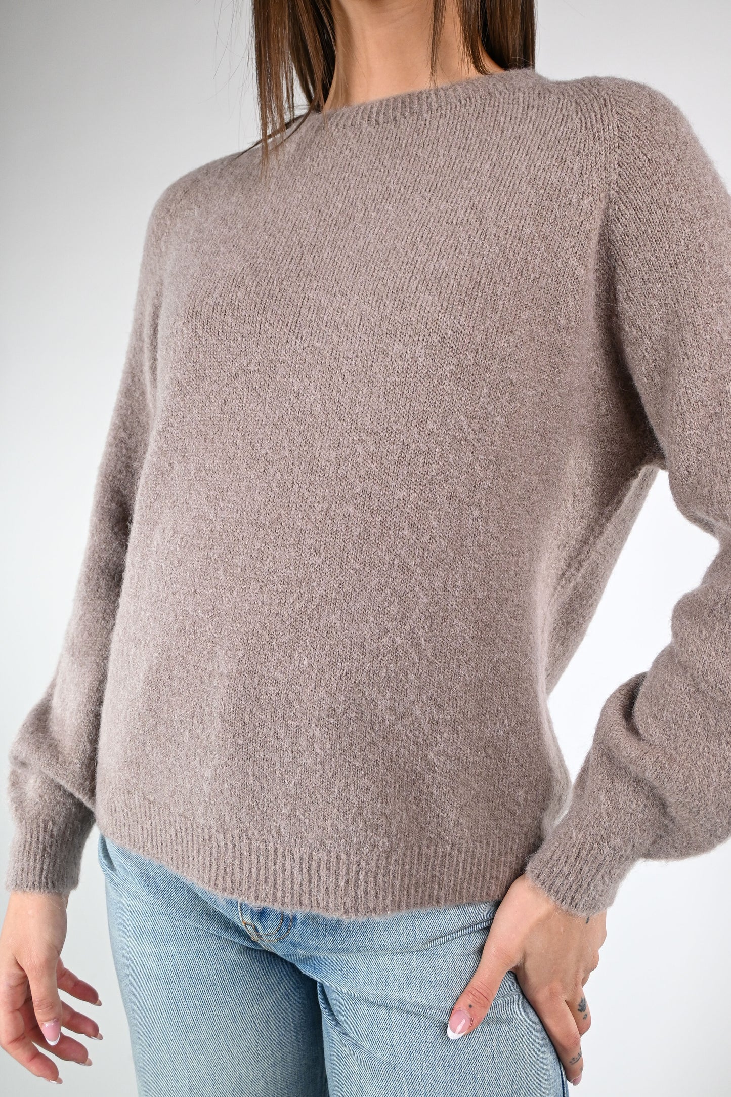 Maglia girocollo baby alpaca, manica lunga, colore Fango