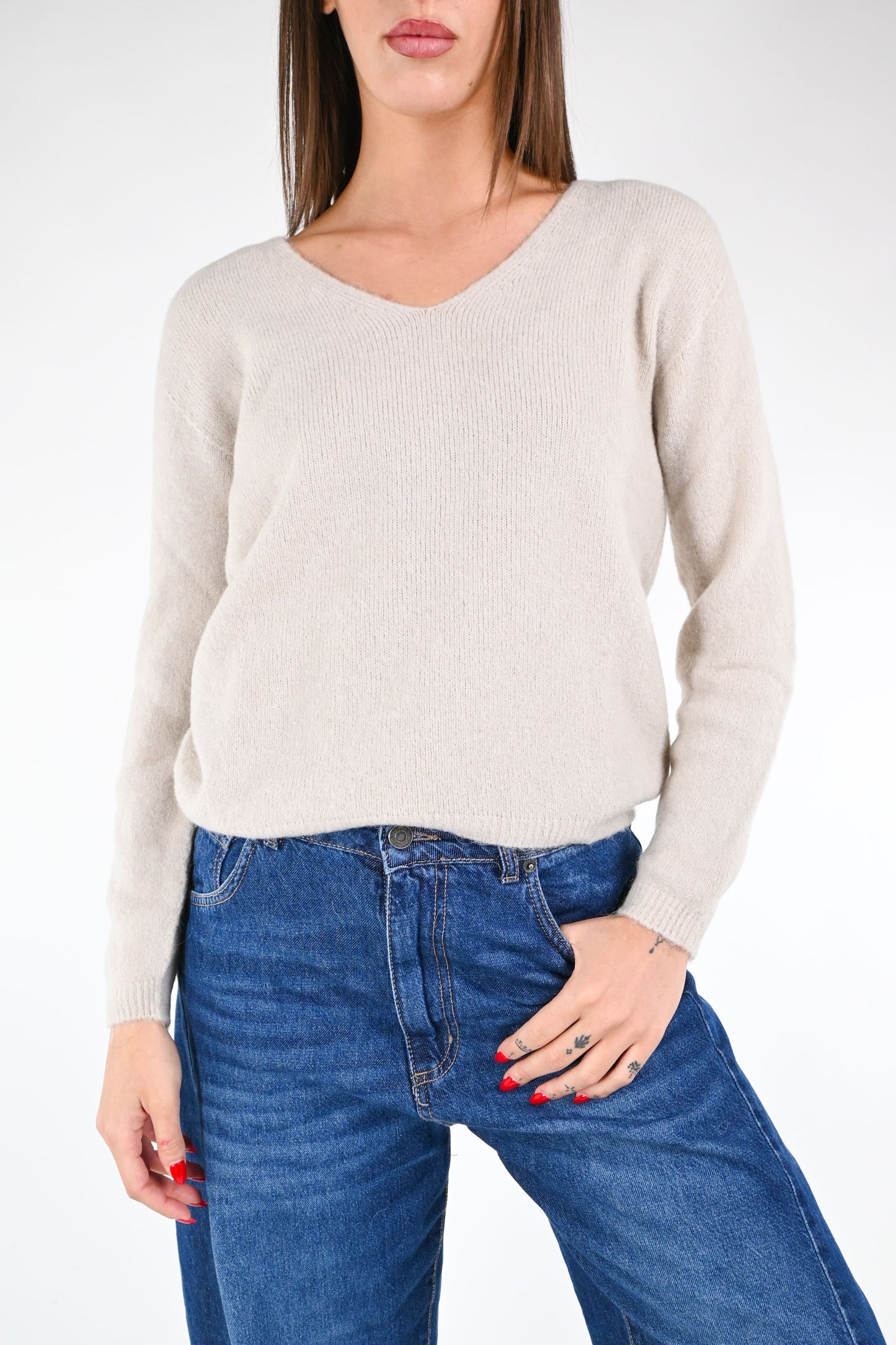 B LOVE - MAGLIA BABY ALPACA SCOLLO V ART.SOFT/7106 - BEIGE