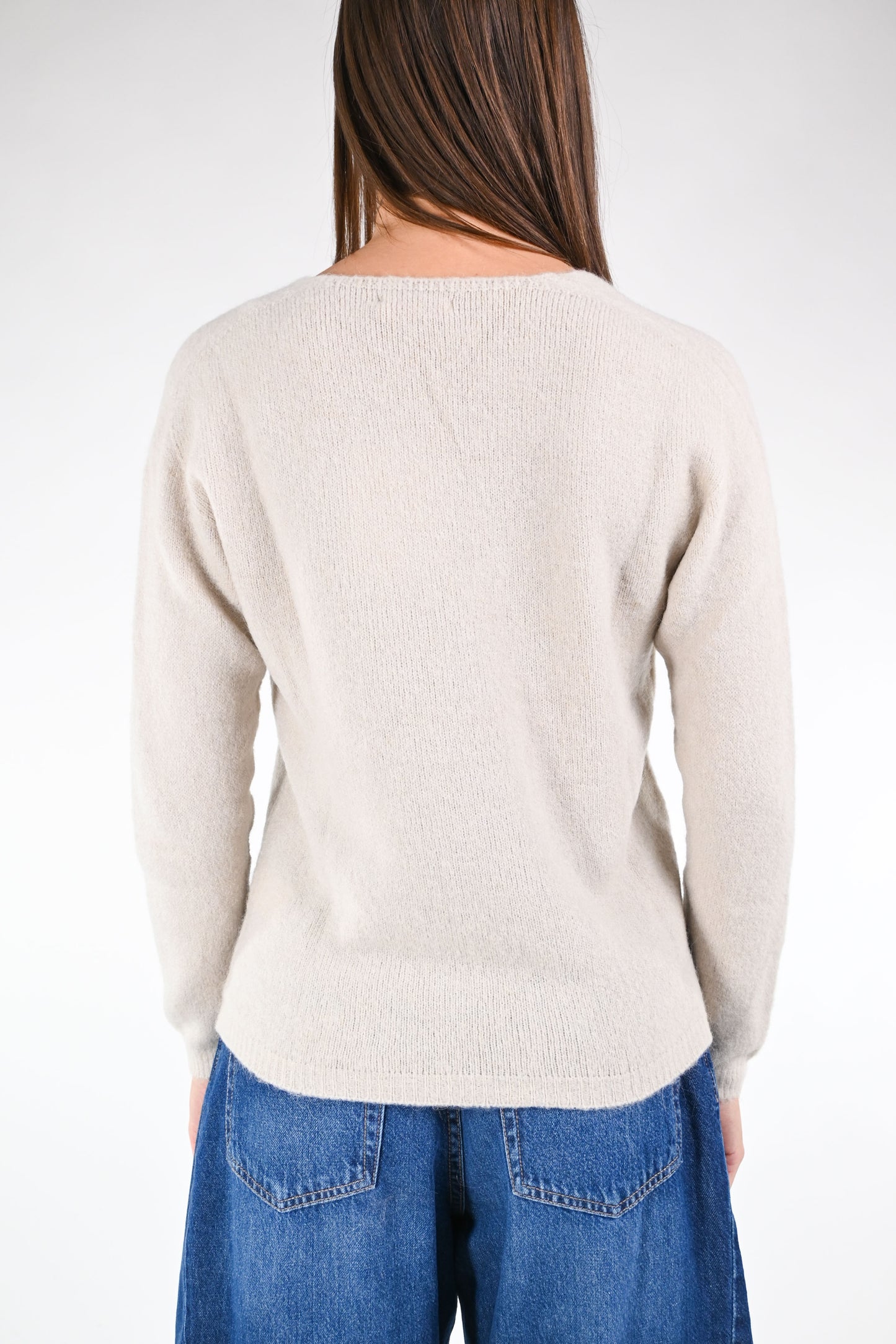 Maglia scollo V baby alpaca, manica lunga, colore beige
