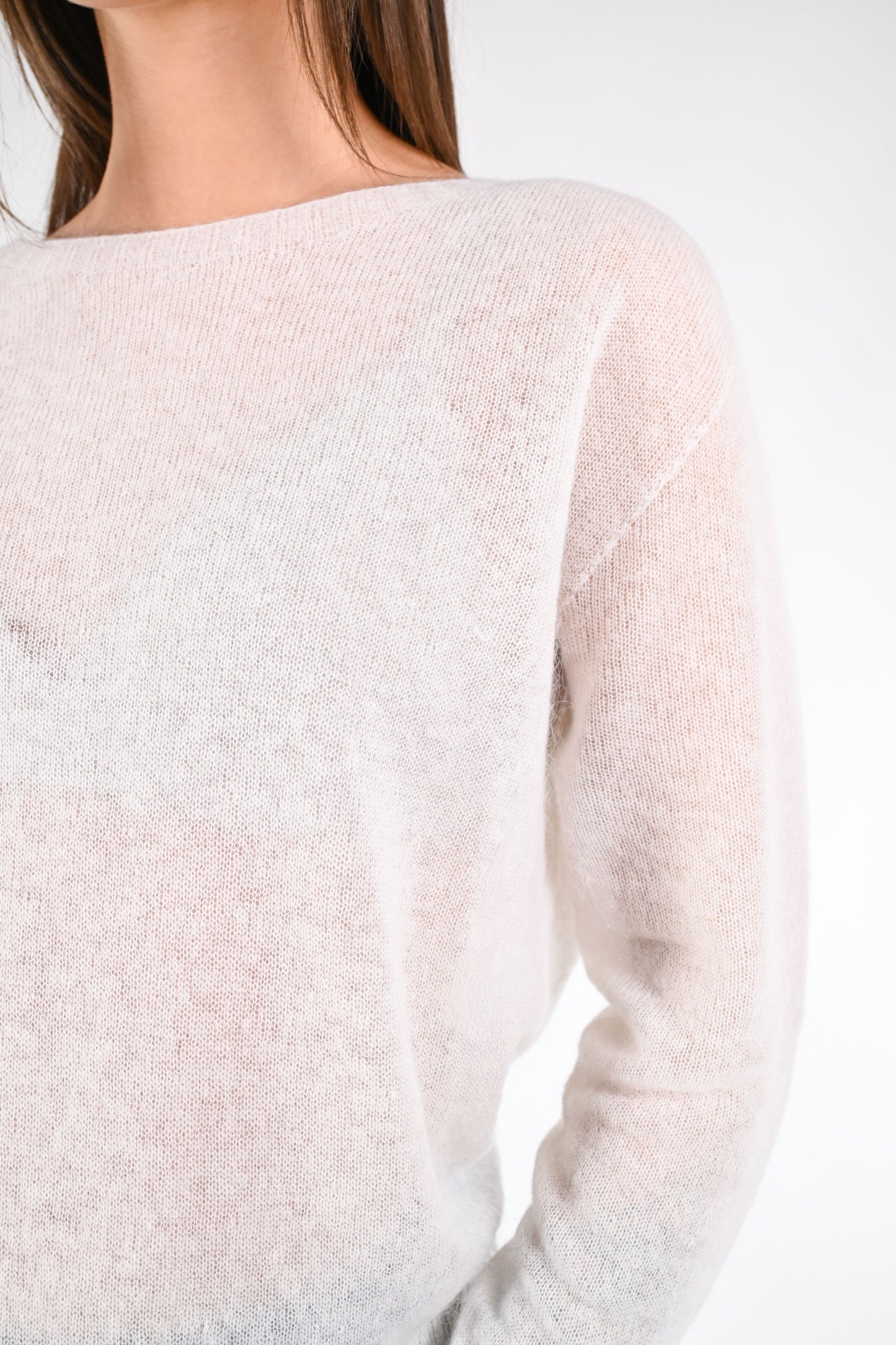 Maglia scollo barchetta in baby alpaca superfine, colore panna