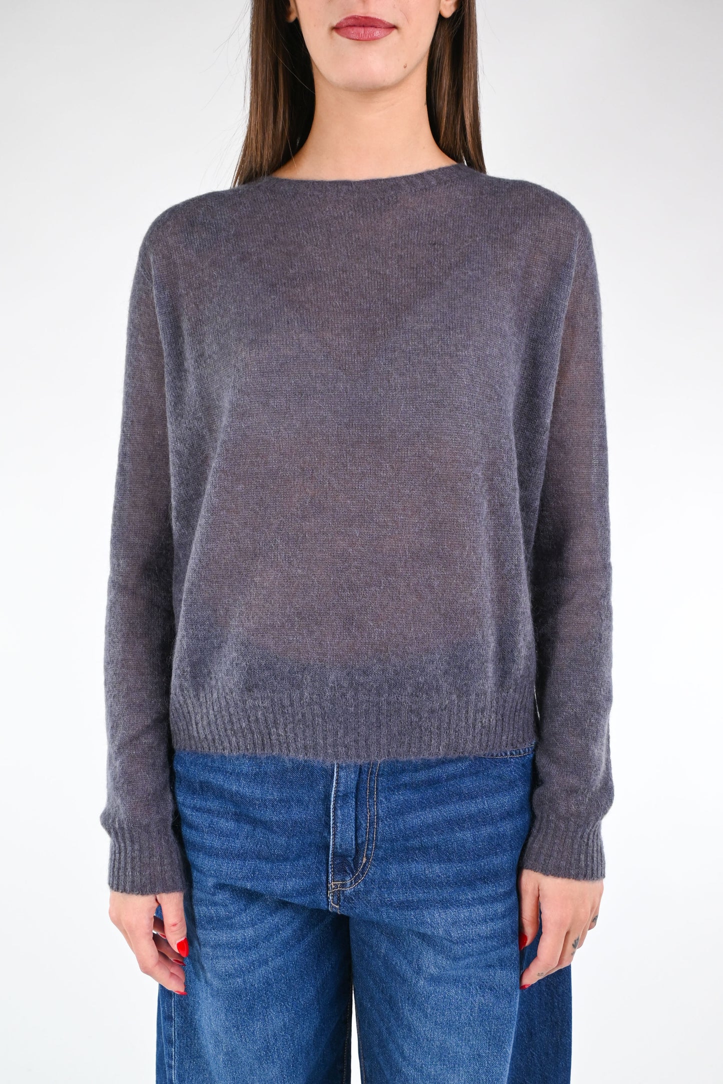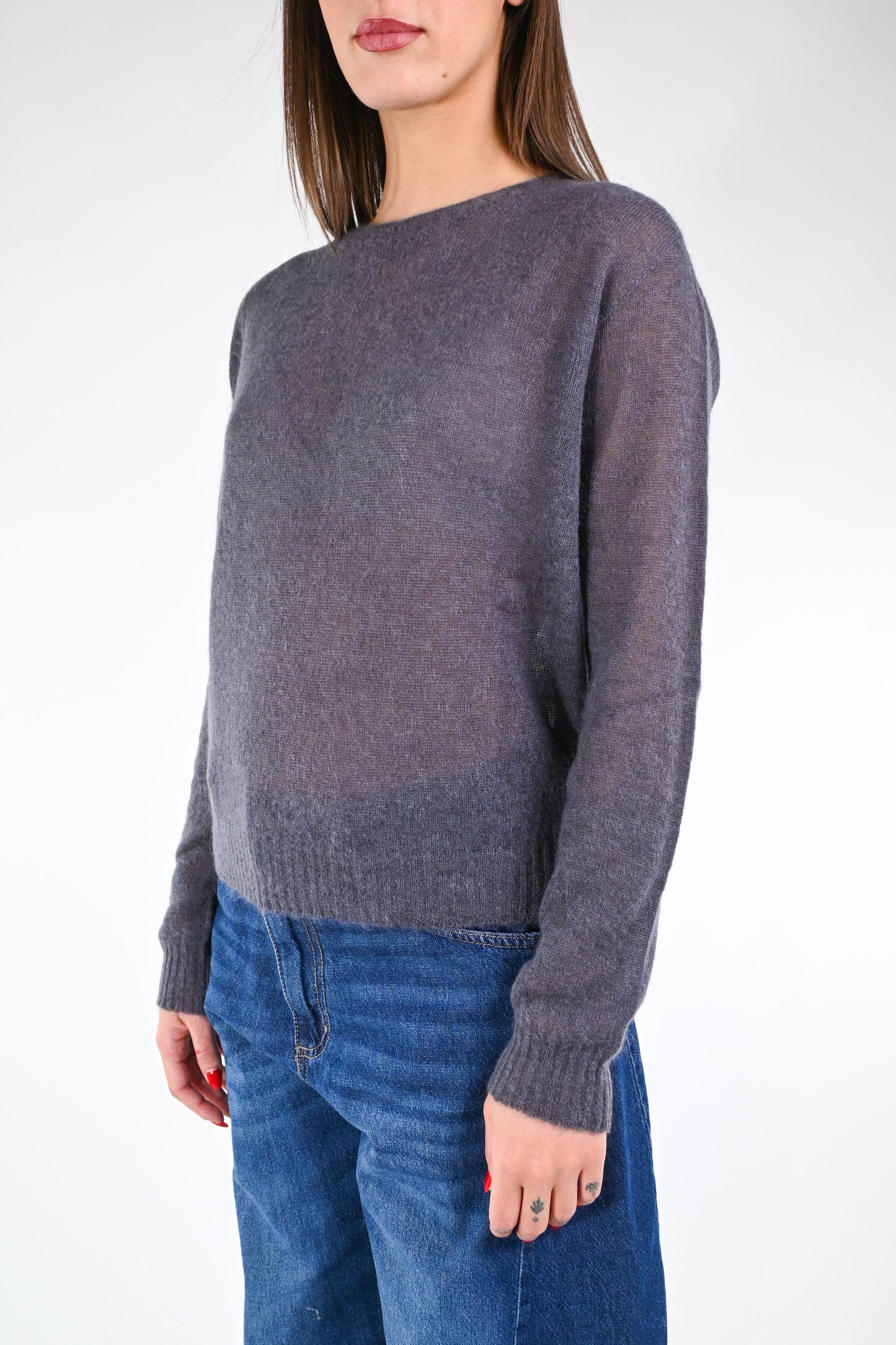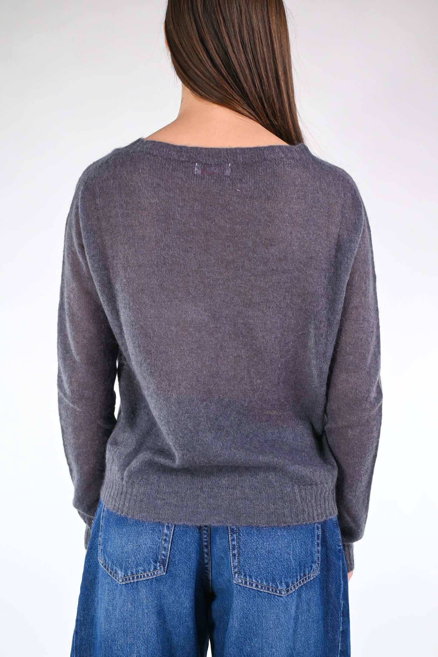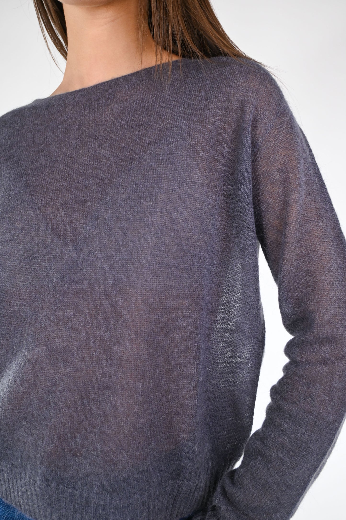 Maglia scollo barchetta in baby alpaca superfine, colore piombo
