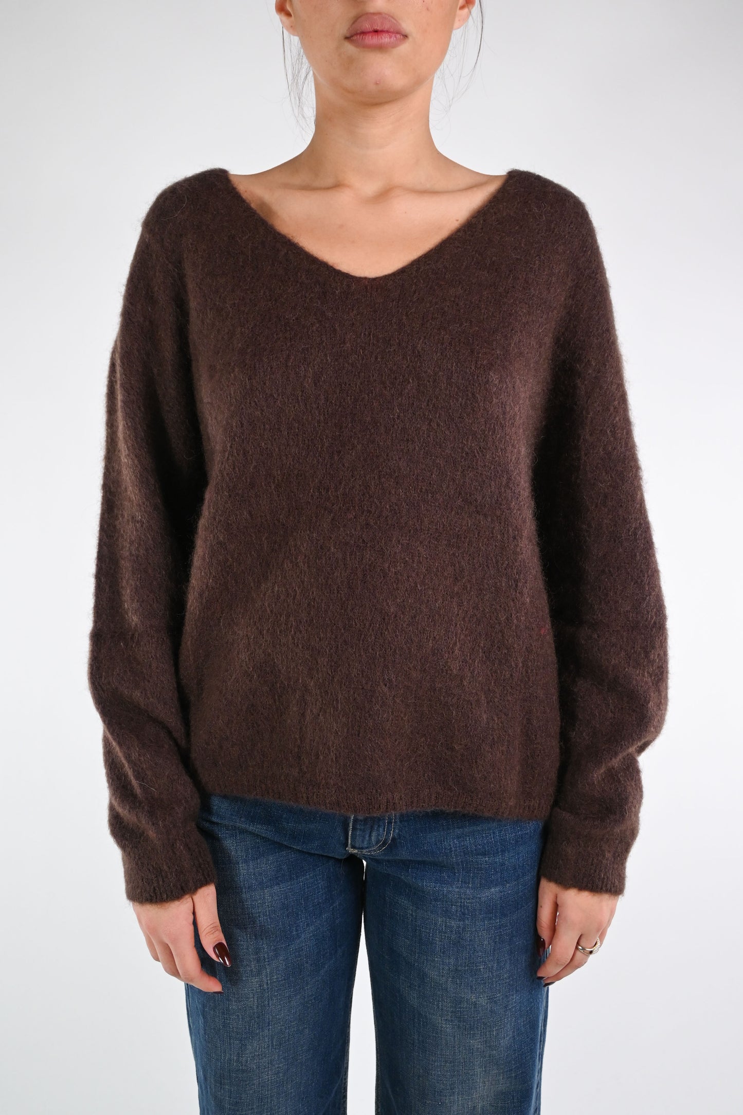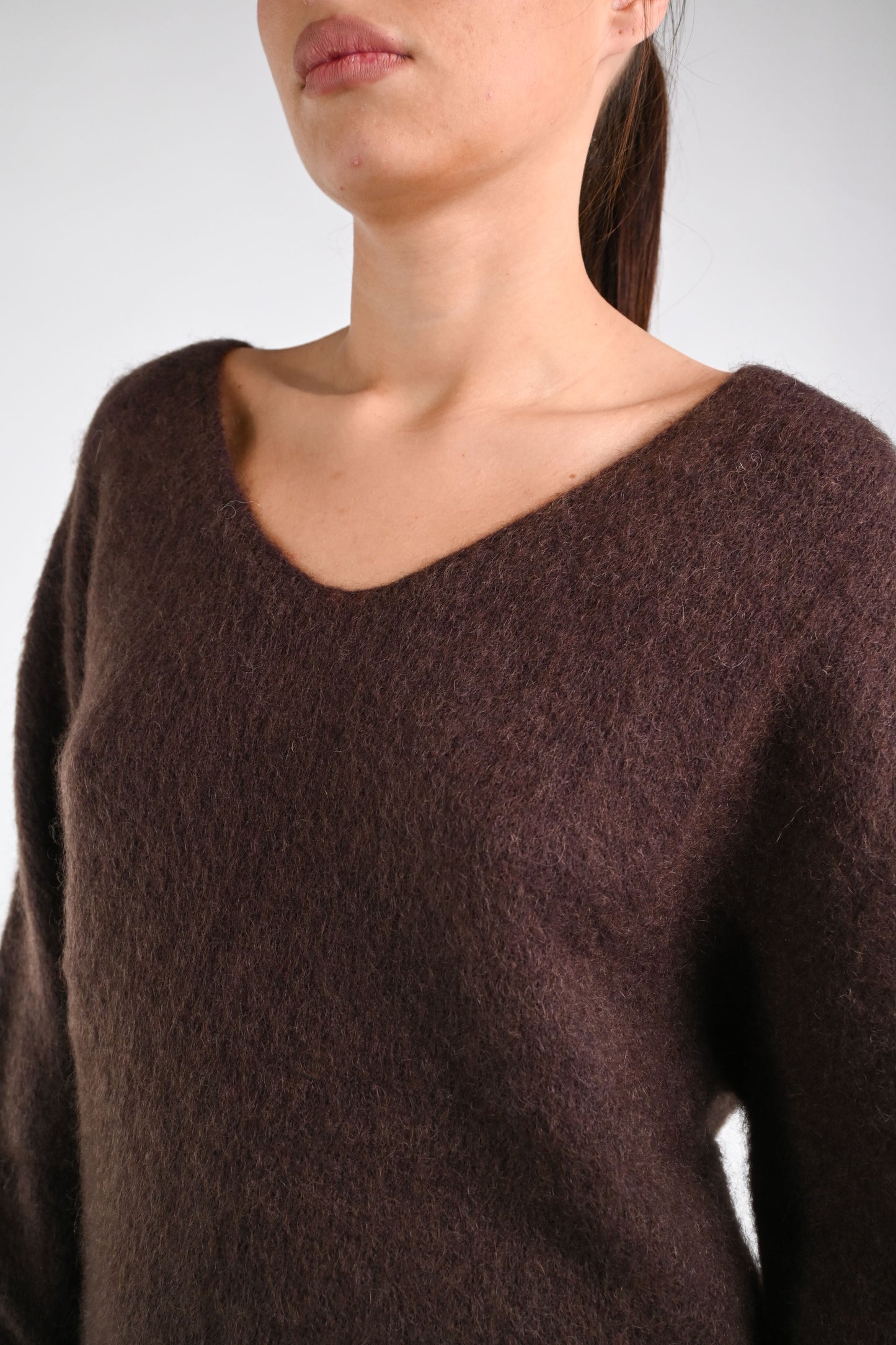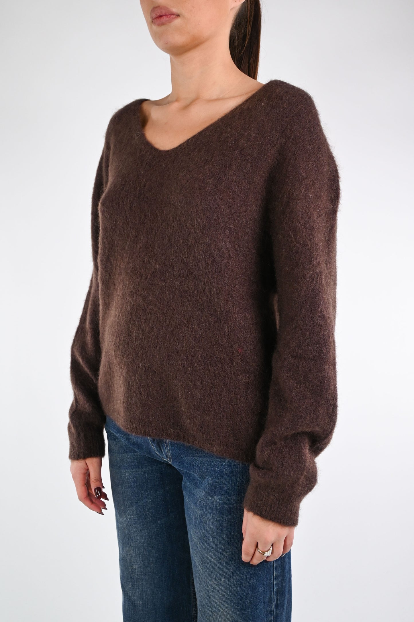 B LOVE - MAGLIA OVER SCOLLO V KID MOHAIR ART.Z24266 - MORO