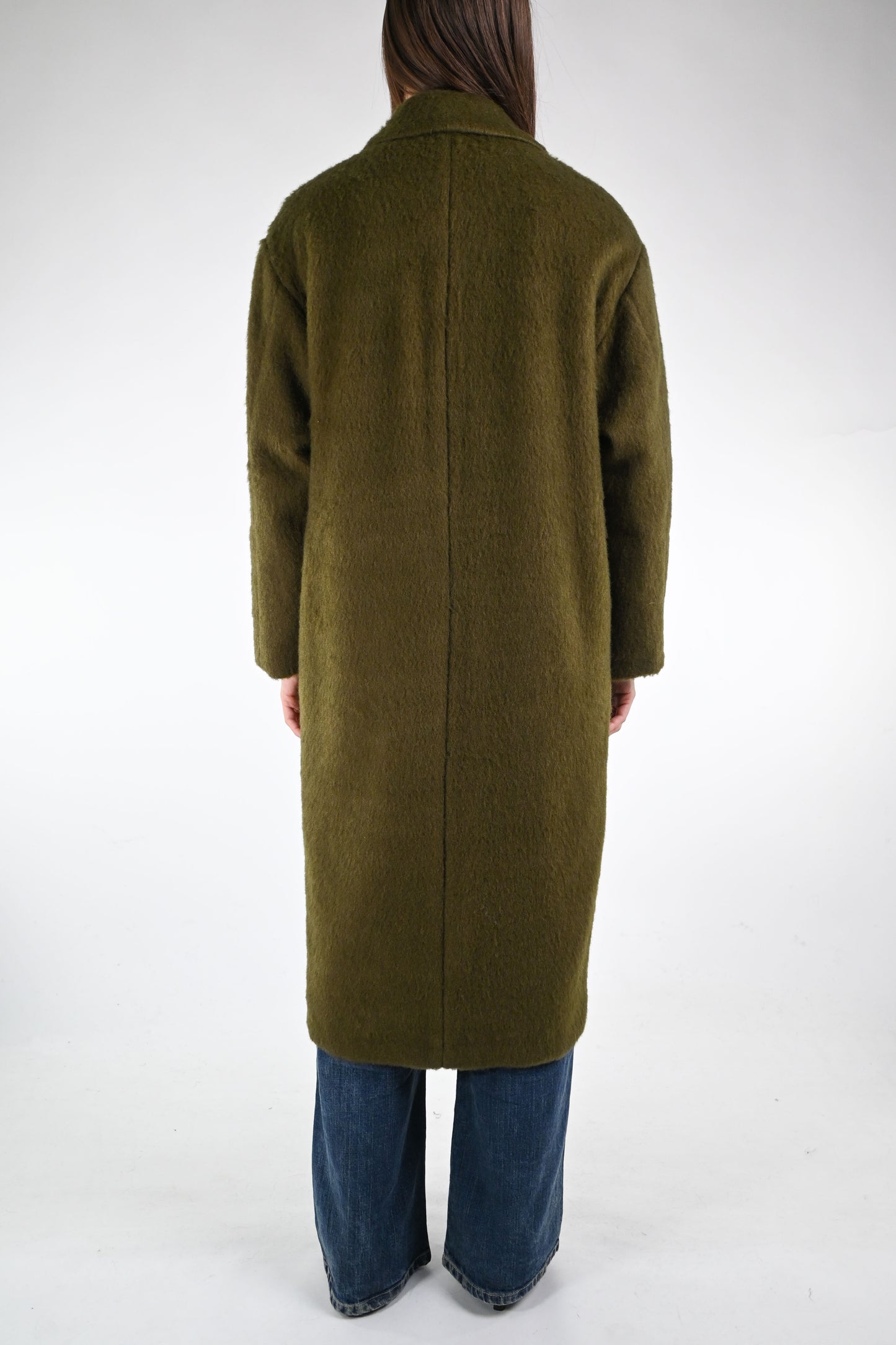 Cappotto effetto pelliccia, doppiopetto, spalla scesa, foderato, con tasche, colore verde