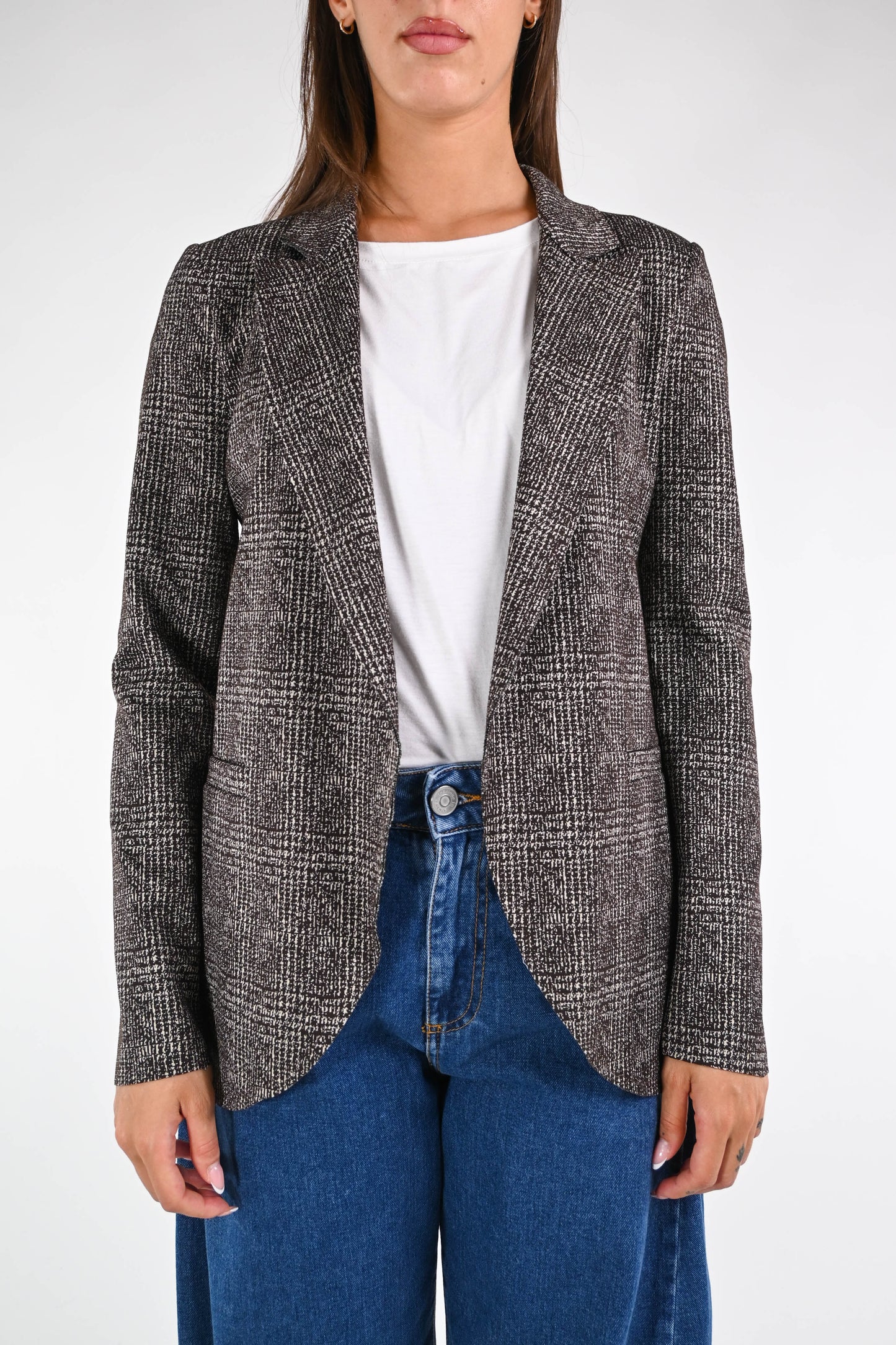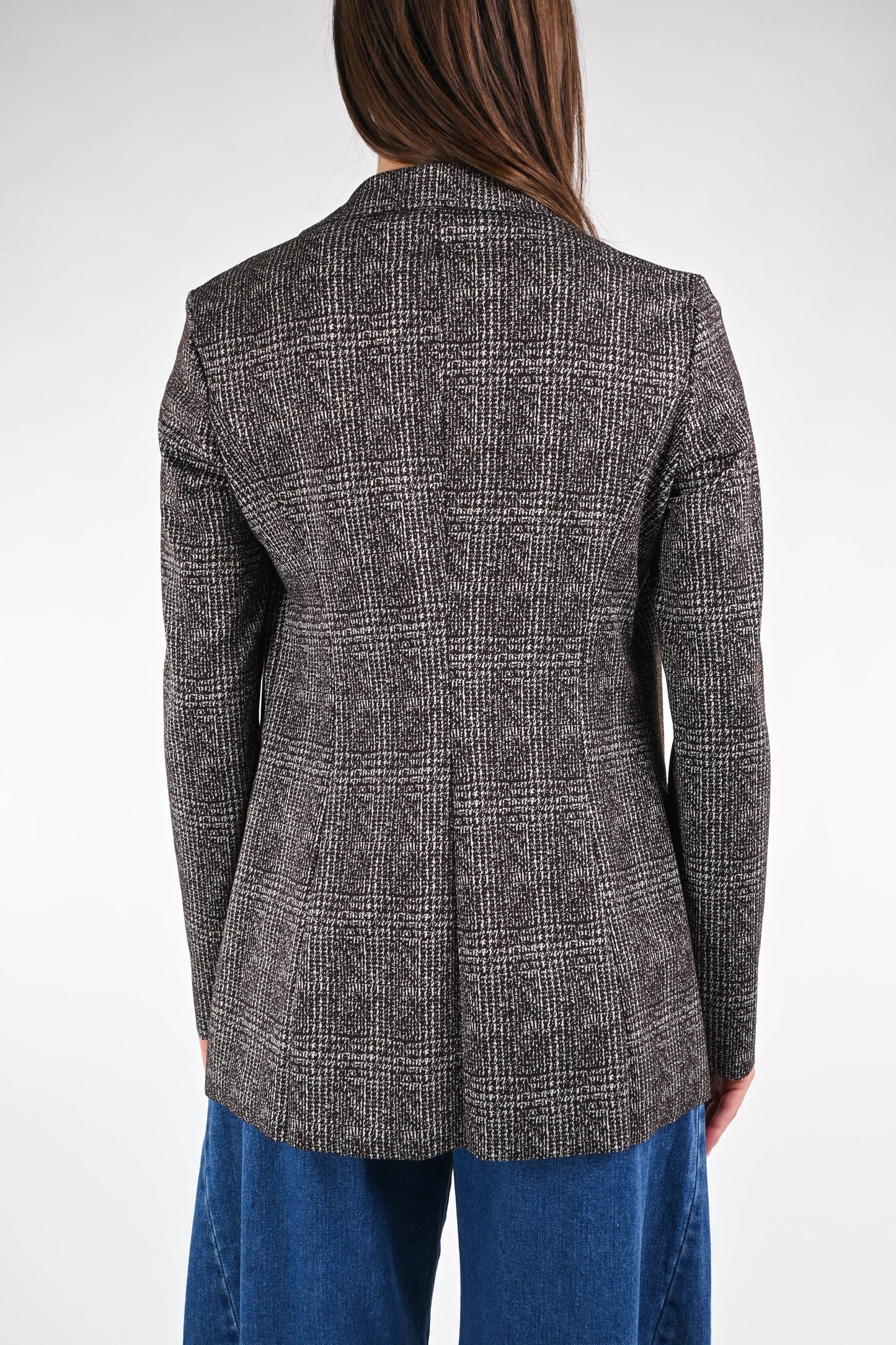 Giacca modello Easy, taglio vivo, elasticizzata, fantasia check, color Moro