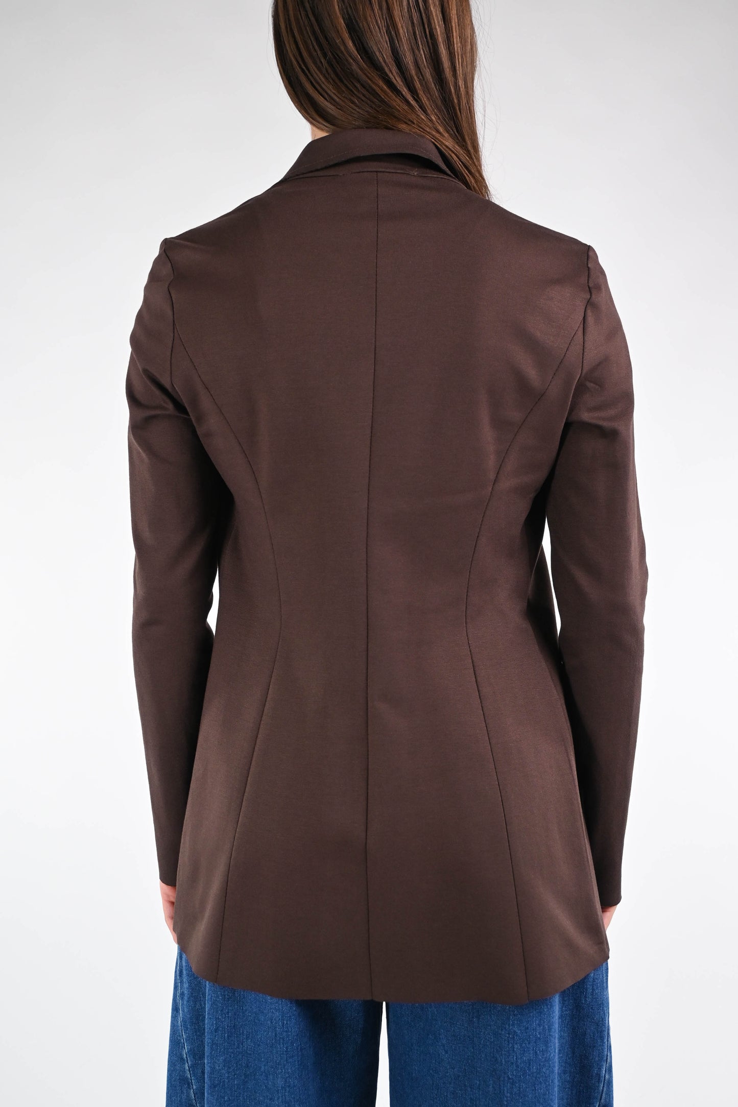 Giacca modello Easy, taglio vivo, punto milano, elasticizzata, color Moro