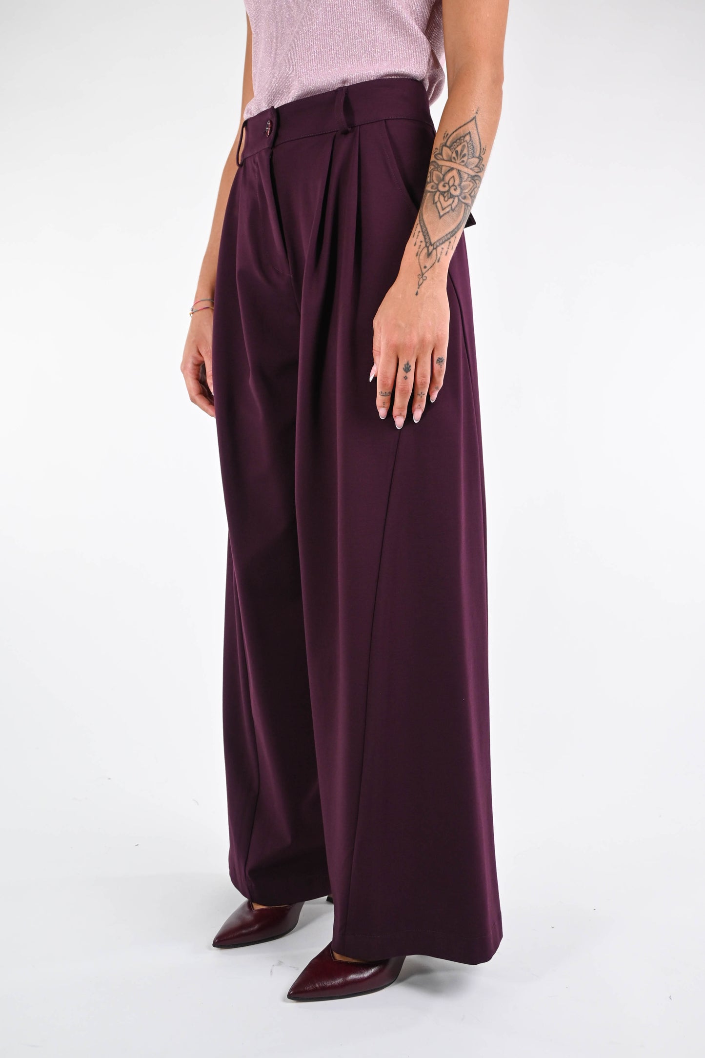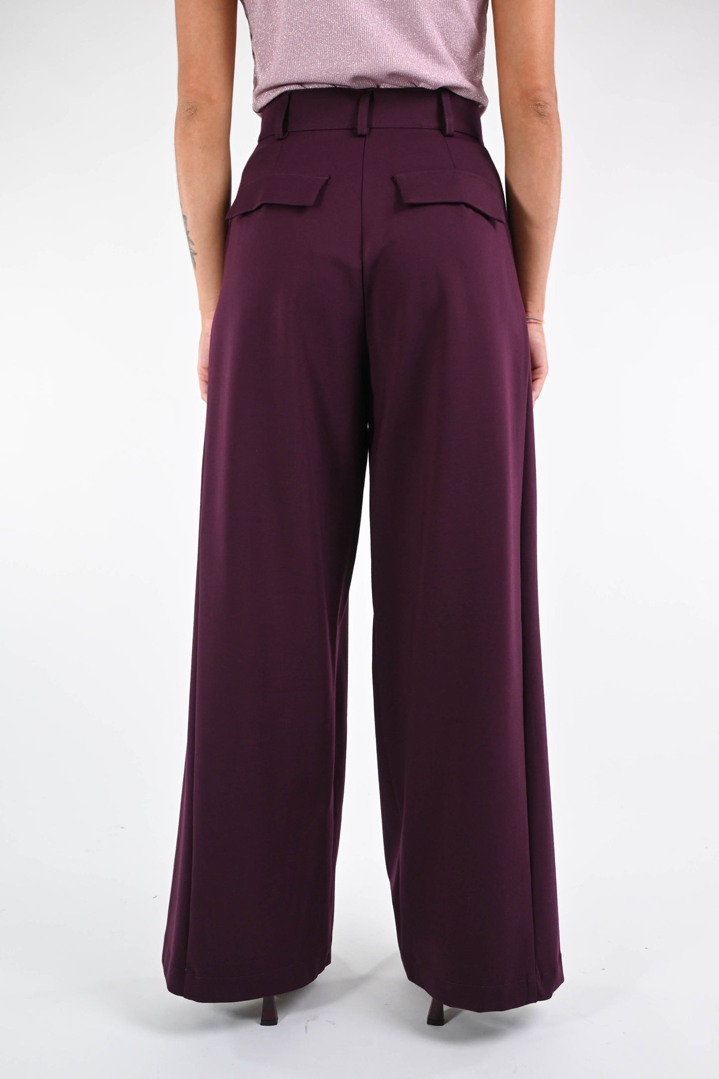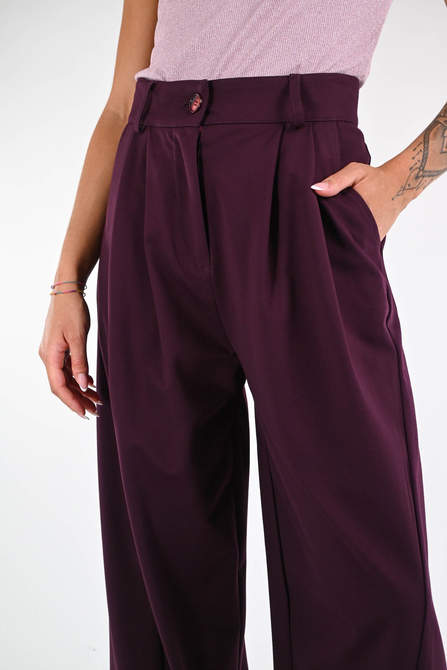 Pantalone baloon in punto milano elasticizzato, con doppia pinces, tasca francese, color amarone.