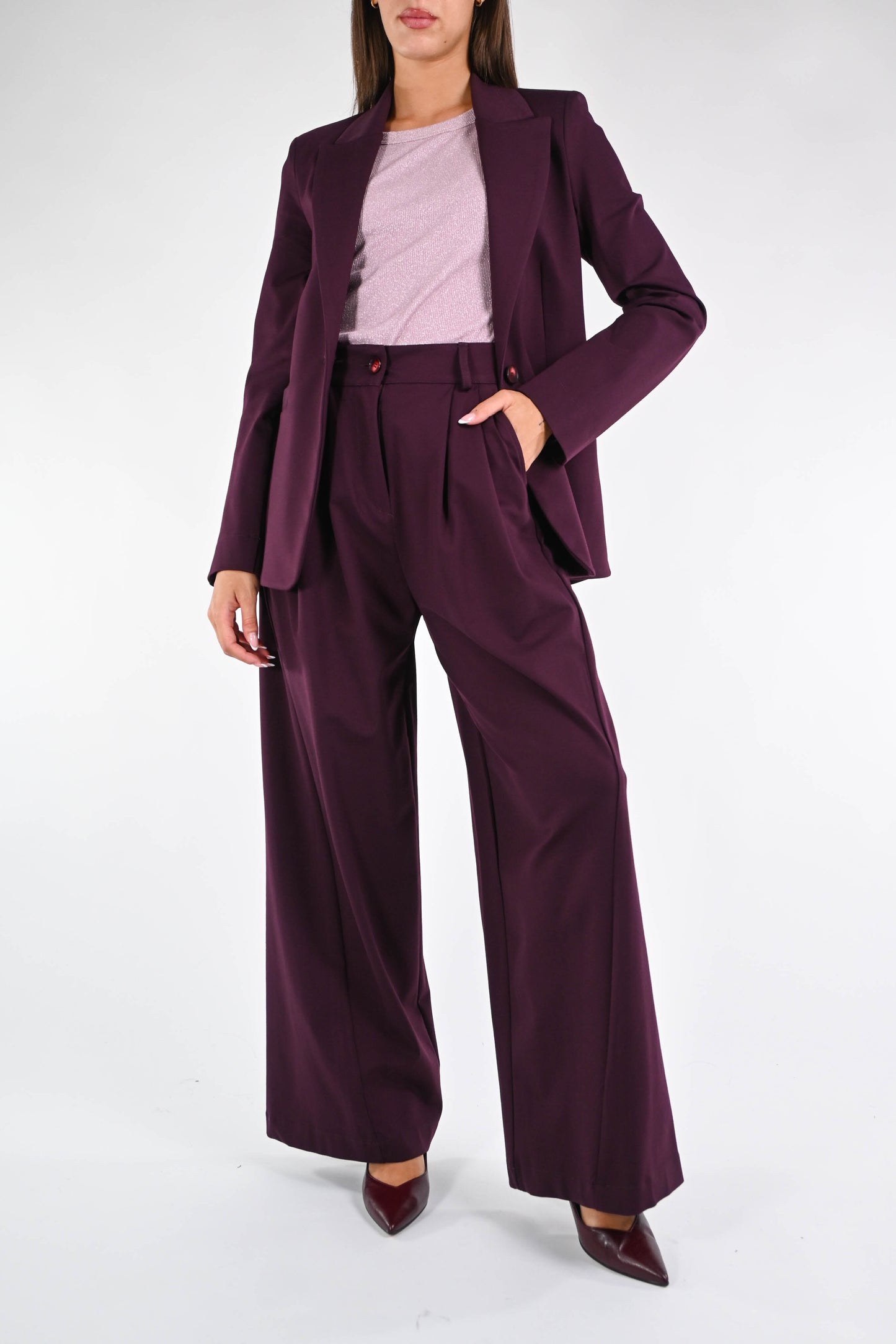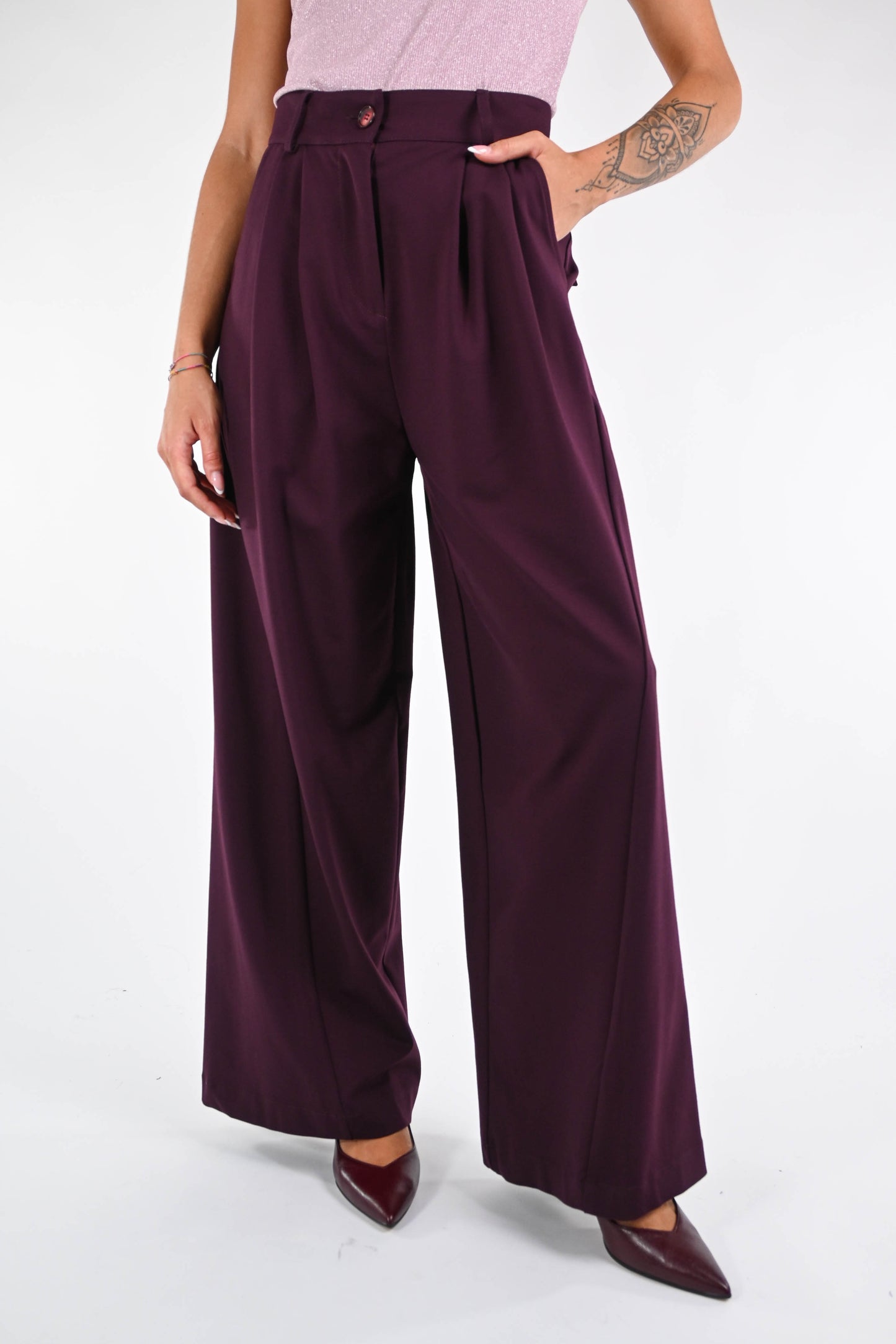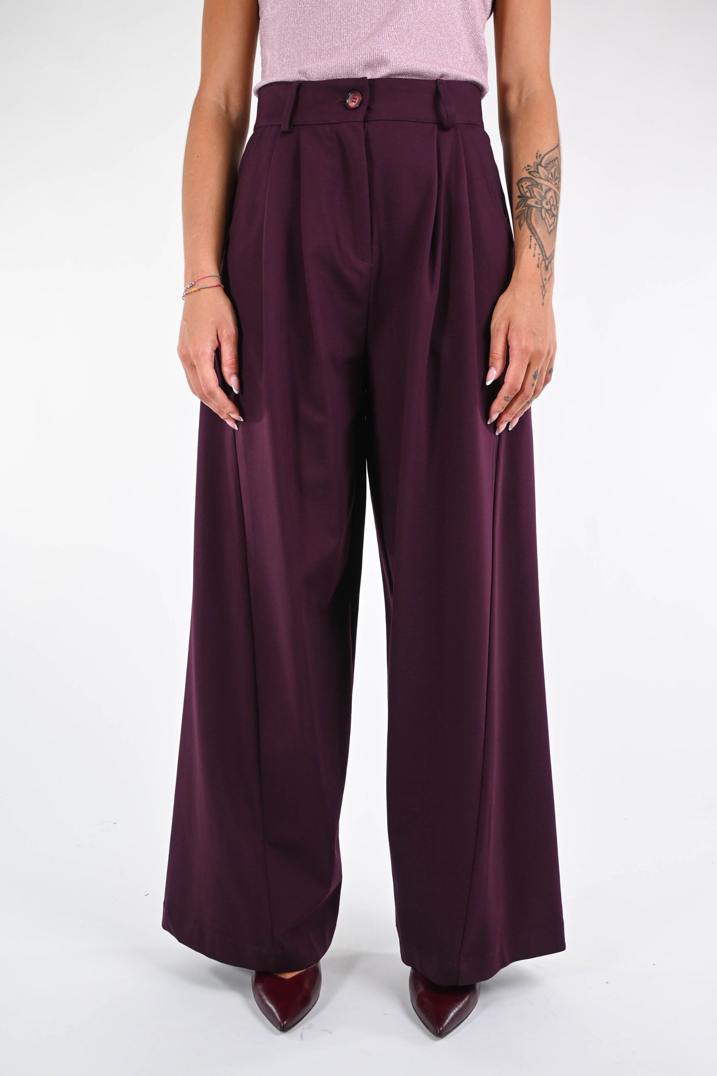 Pantalone baloon in punto milano elasticizzato, con doppia pinces, tasca francese, color amarone.