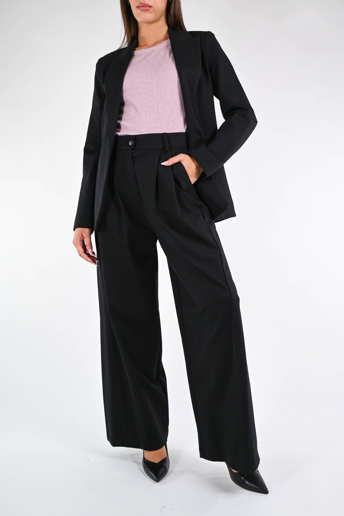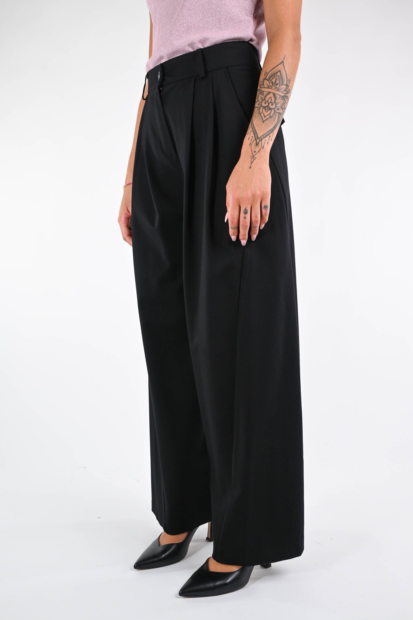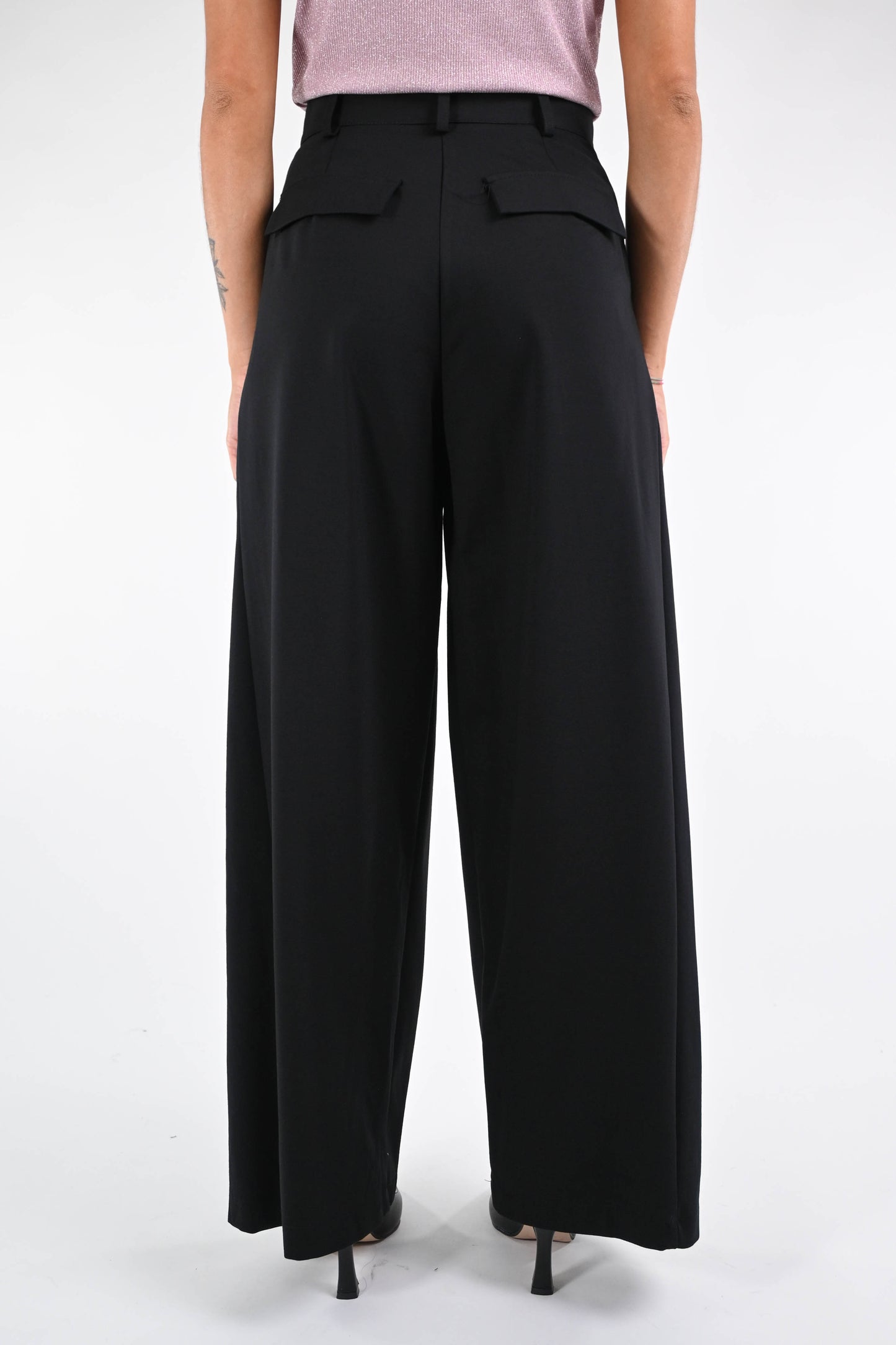 Pantalone baloon in punto milano elasticizzato, con doppia pinces, tasca francese, color nero
