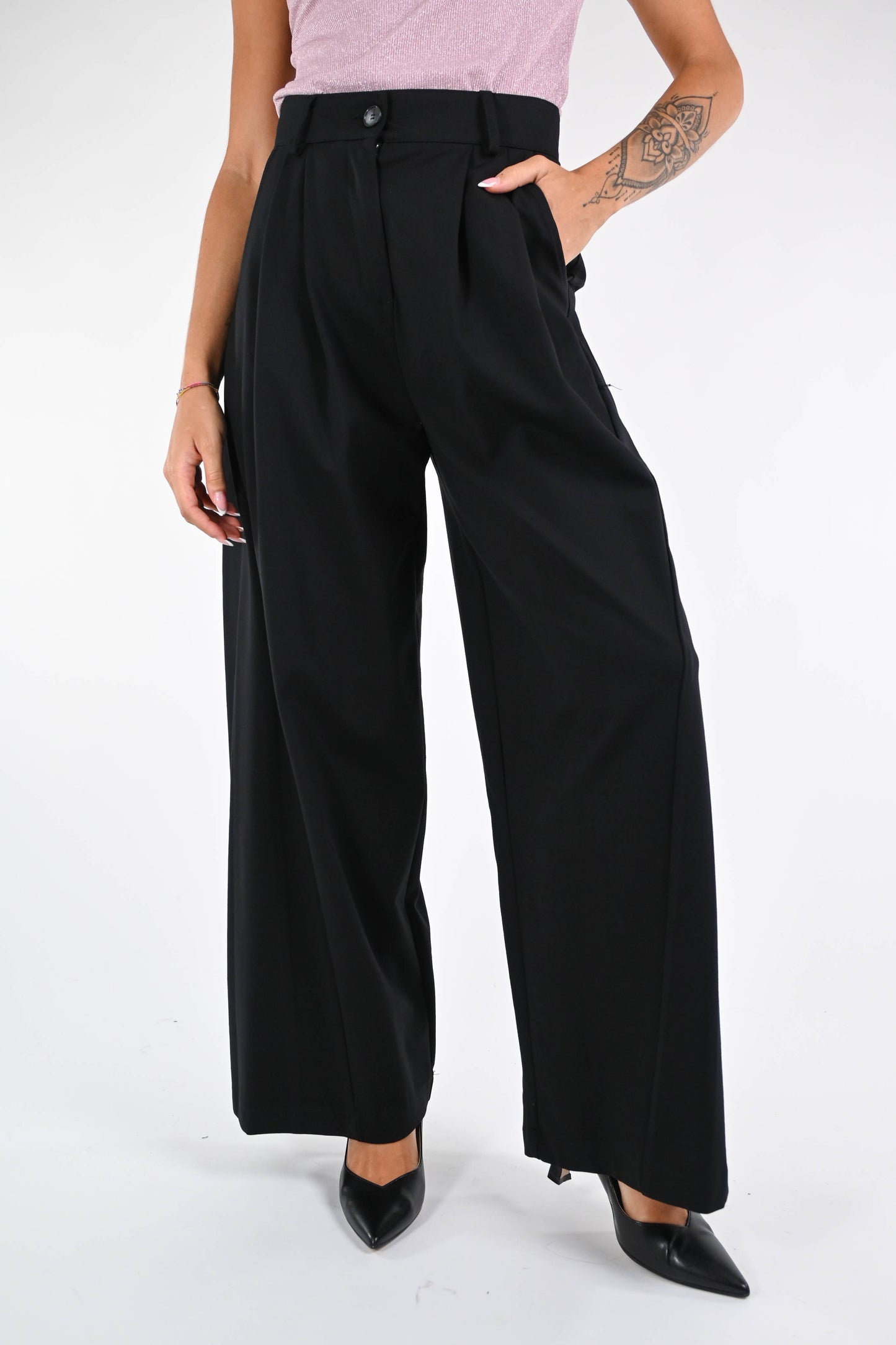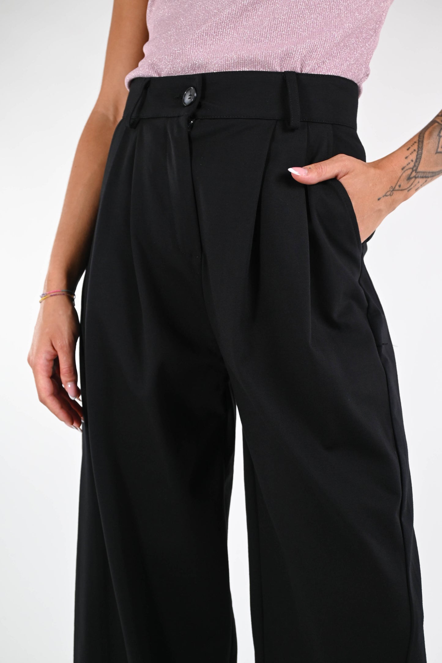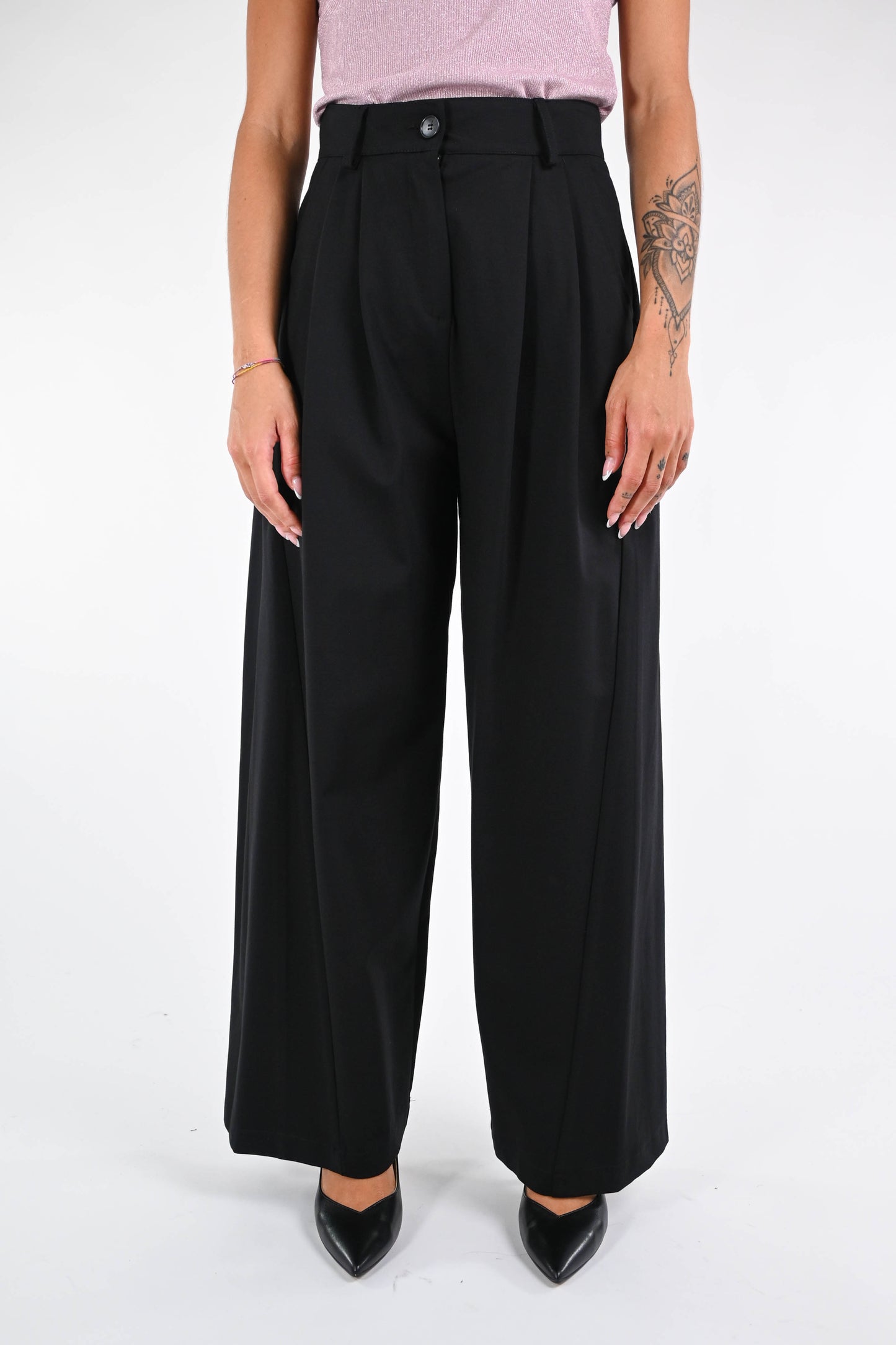 Pantalone baloon in punto milano elasticizzato, con doppia pinces, tasca francese, color nero