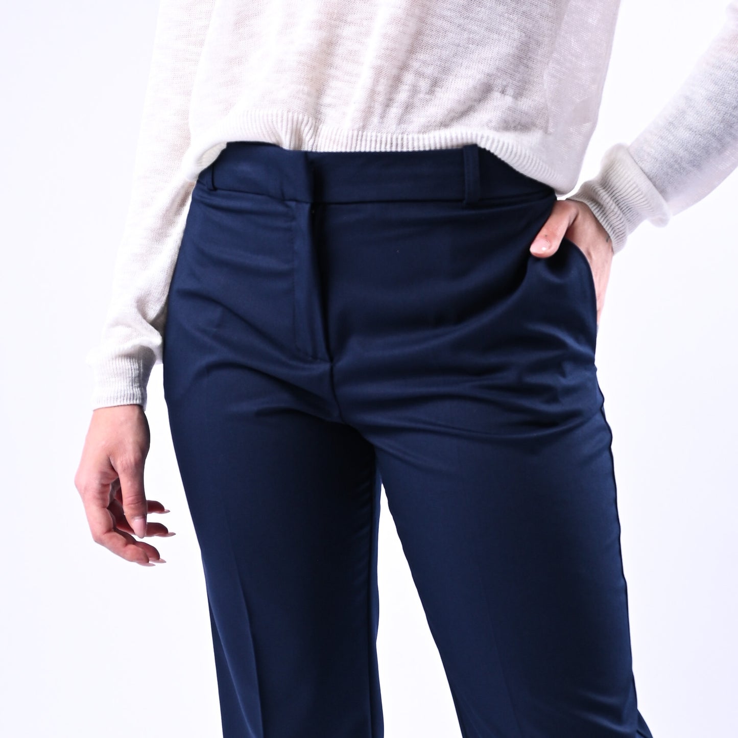 Pantalone sigaretta in poliviscosa melange con tasche a filo, perfetto per uno stile sofisticato e versatile. Abbinalo alla giacca coordinata della collezione per un look elegante e coordinato.