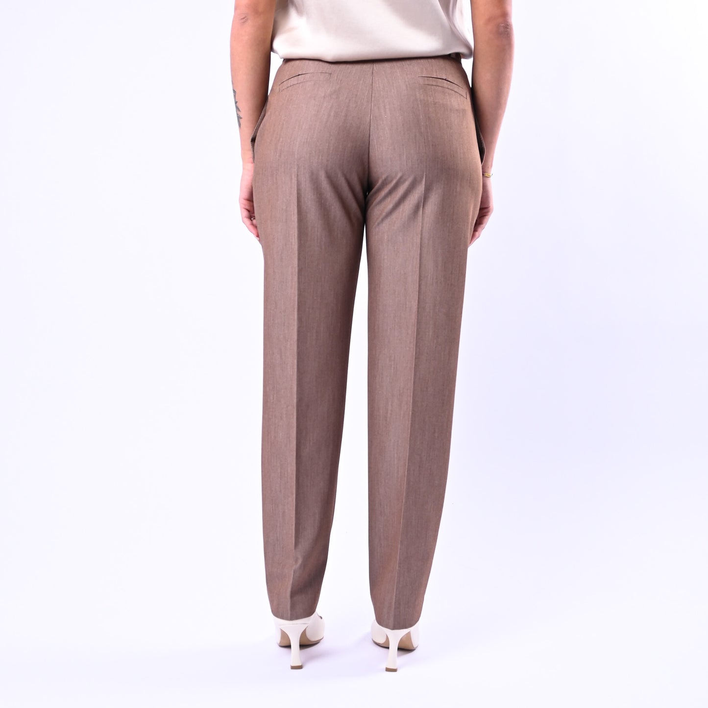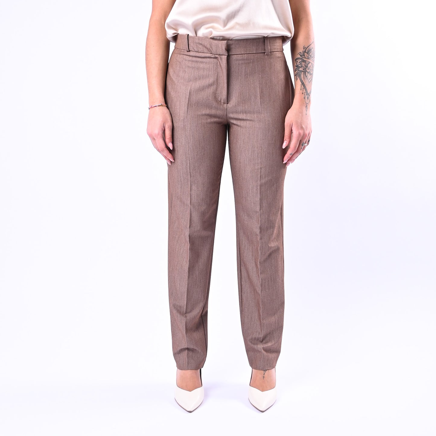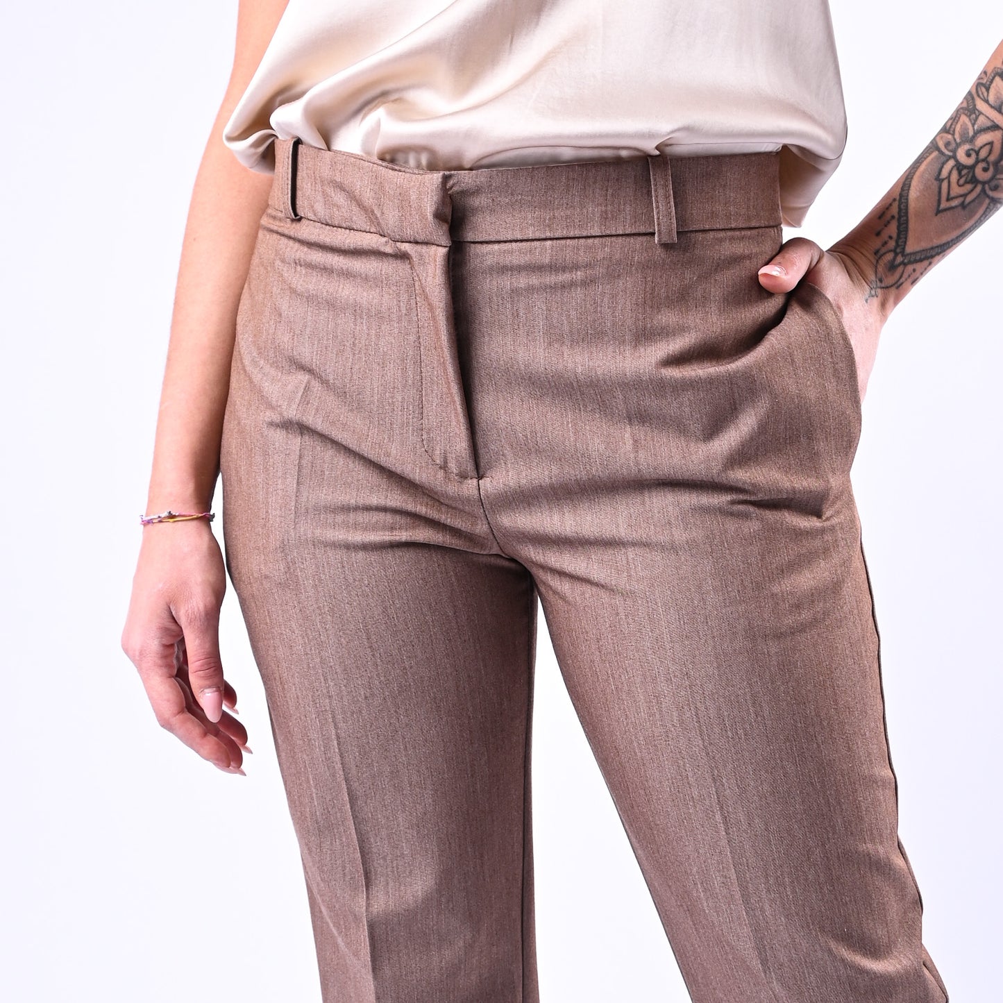 Pantalone sigaretta in poliviscosa melange con tasche a filo, perfetto per uno stile sofisticato e versatile. Abbinalo alla giacca coordinata della collezione per un look elegante e coordinato.